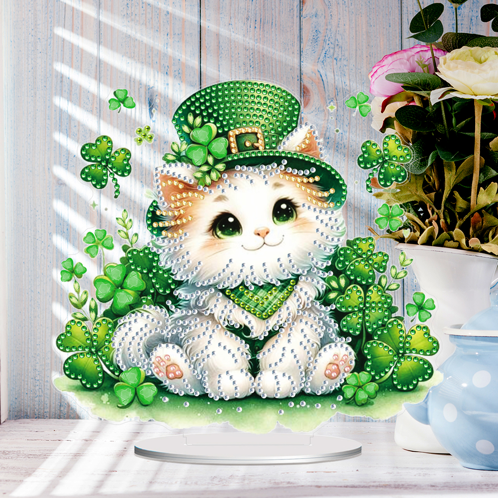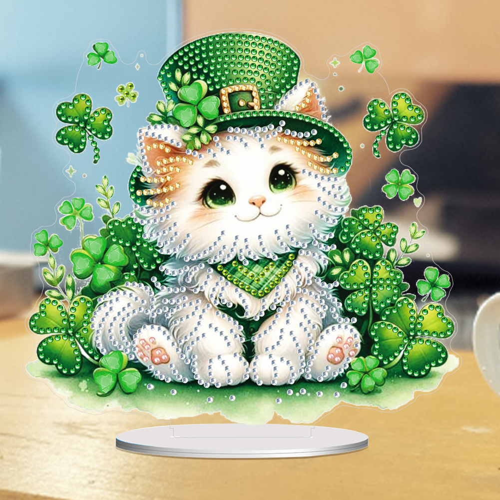DIY St. Patricks Day Cat Diamond Painting Tabletop Ornaments Bedroom Table Decor