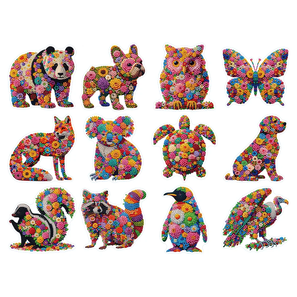 12 Pcs Flower Animals 5D Diamond Painting Sticker Kit Diamond Art Stickers