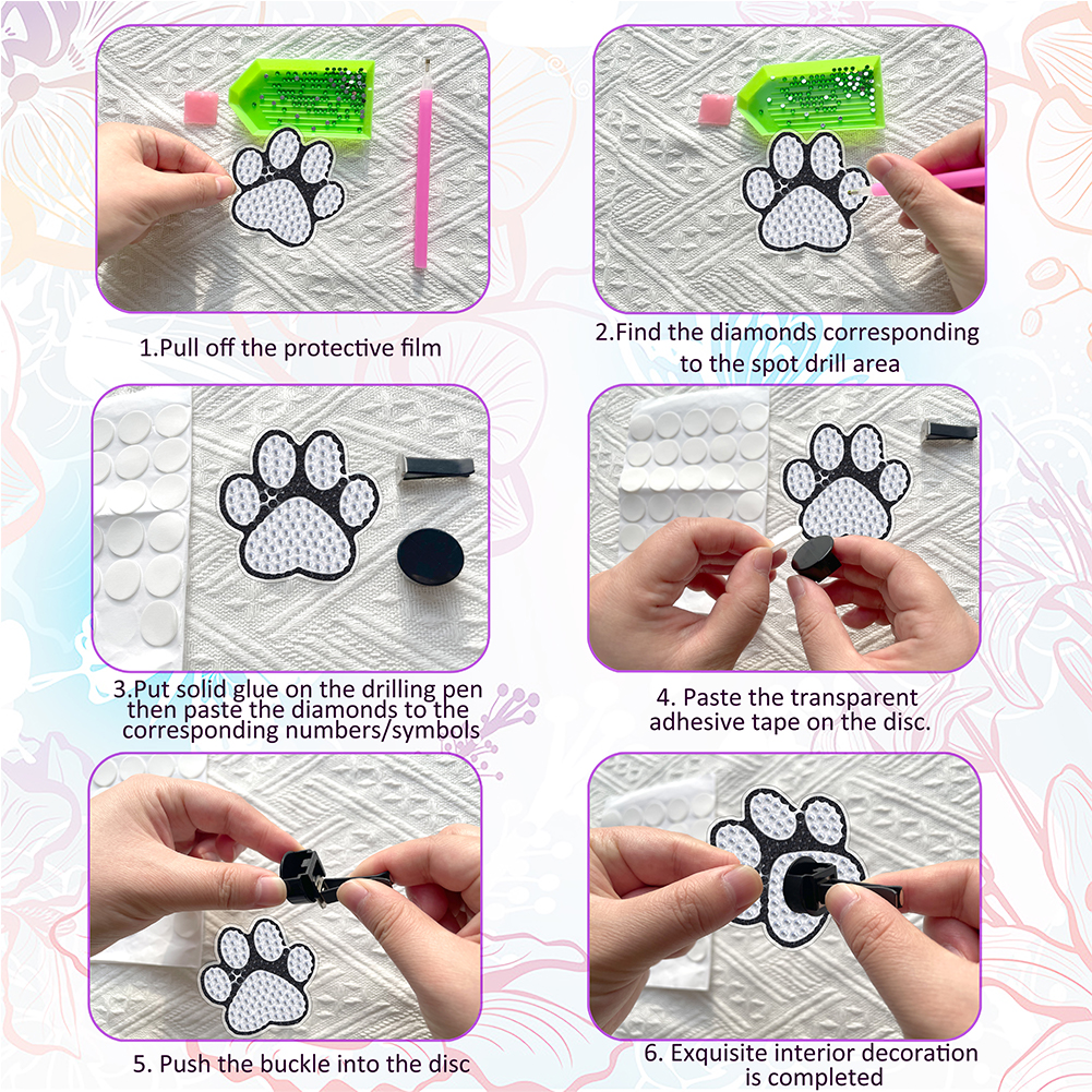 6Pcs Dog Paw Diamond Painting Car Air Vent Clips Car Decor for Women Girls