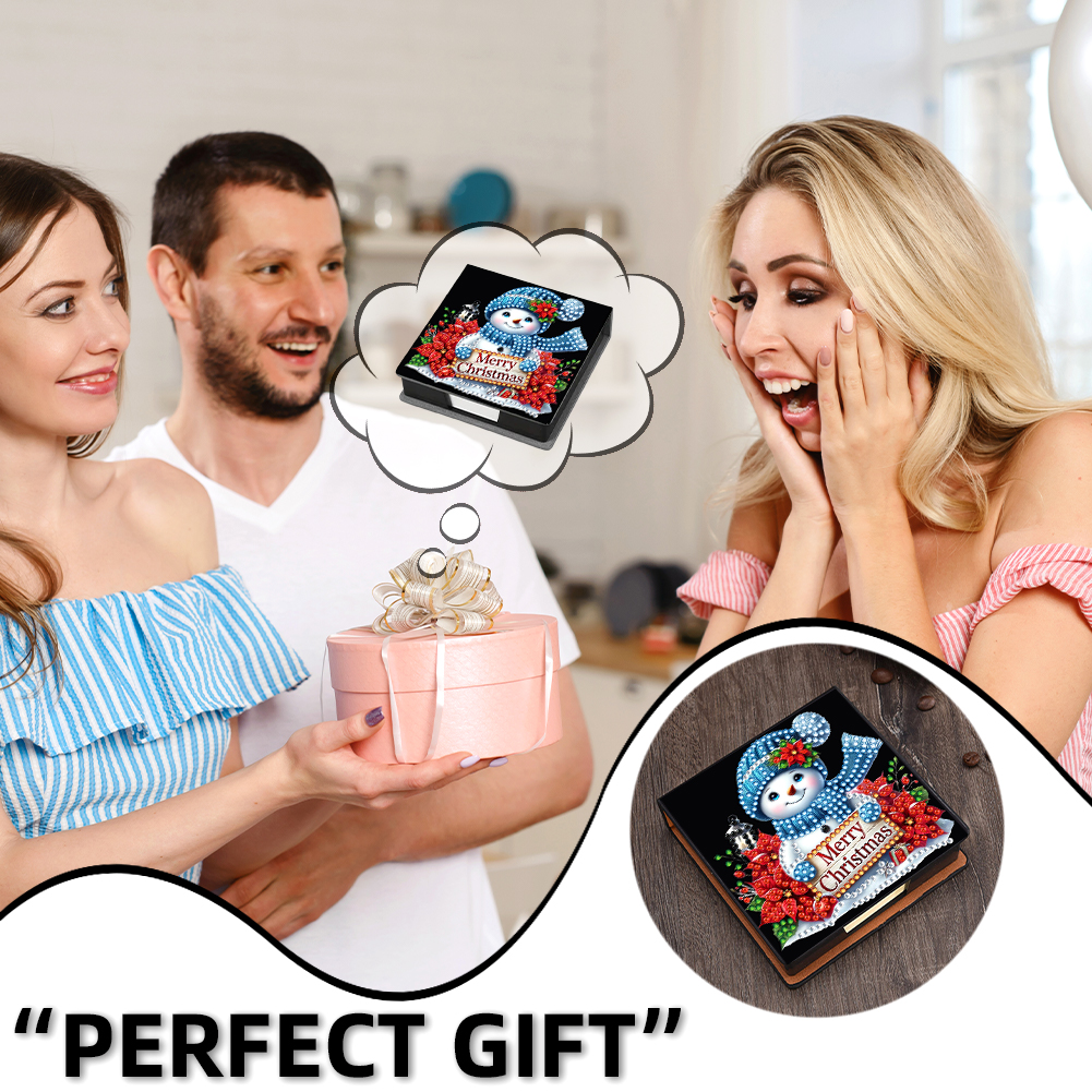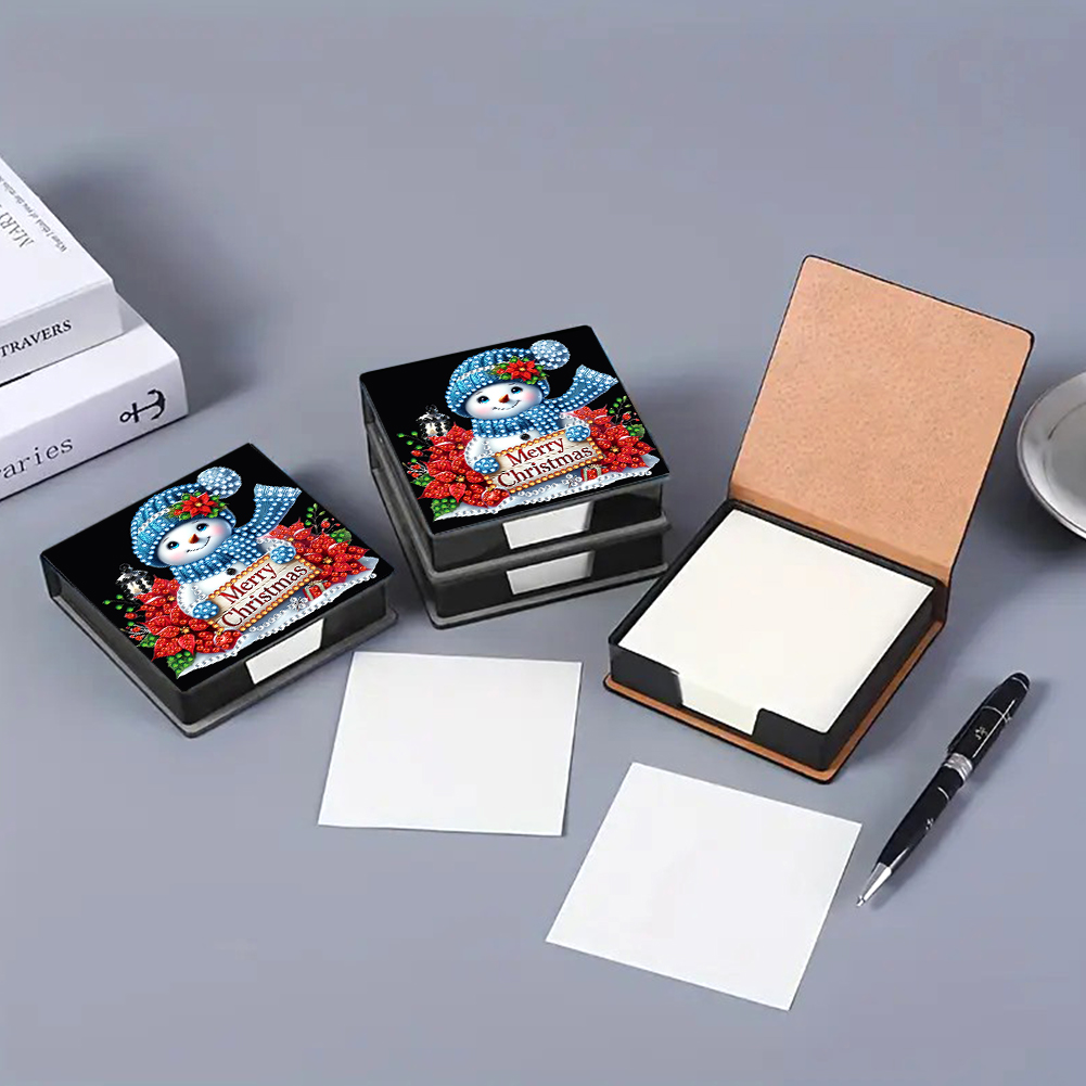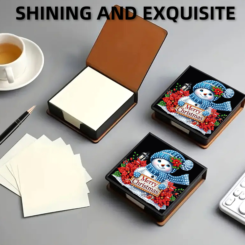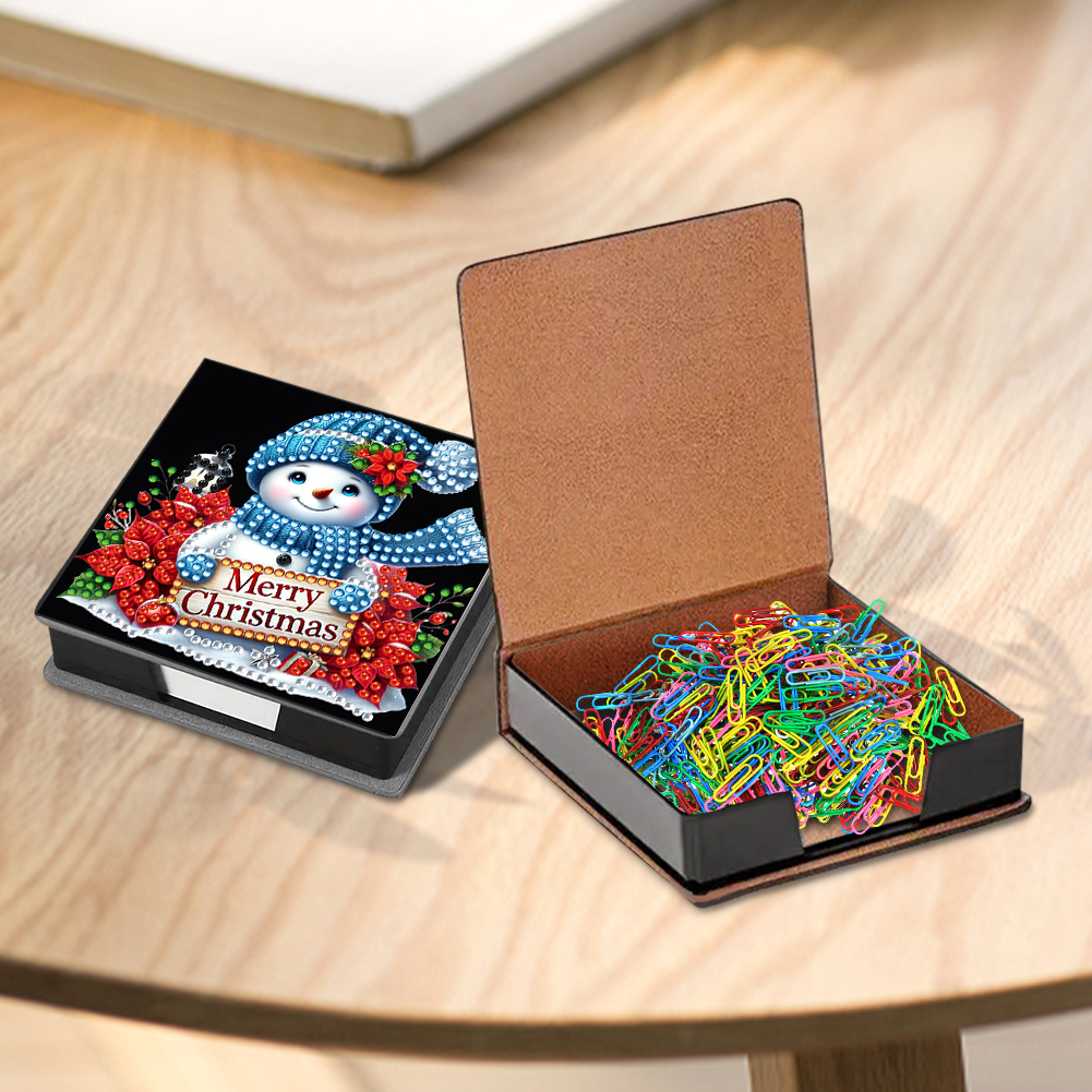 5D DIY PU Snowman Diamond Painting Notecard Box Gem Art Sticky Note Holder