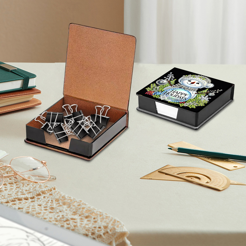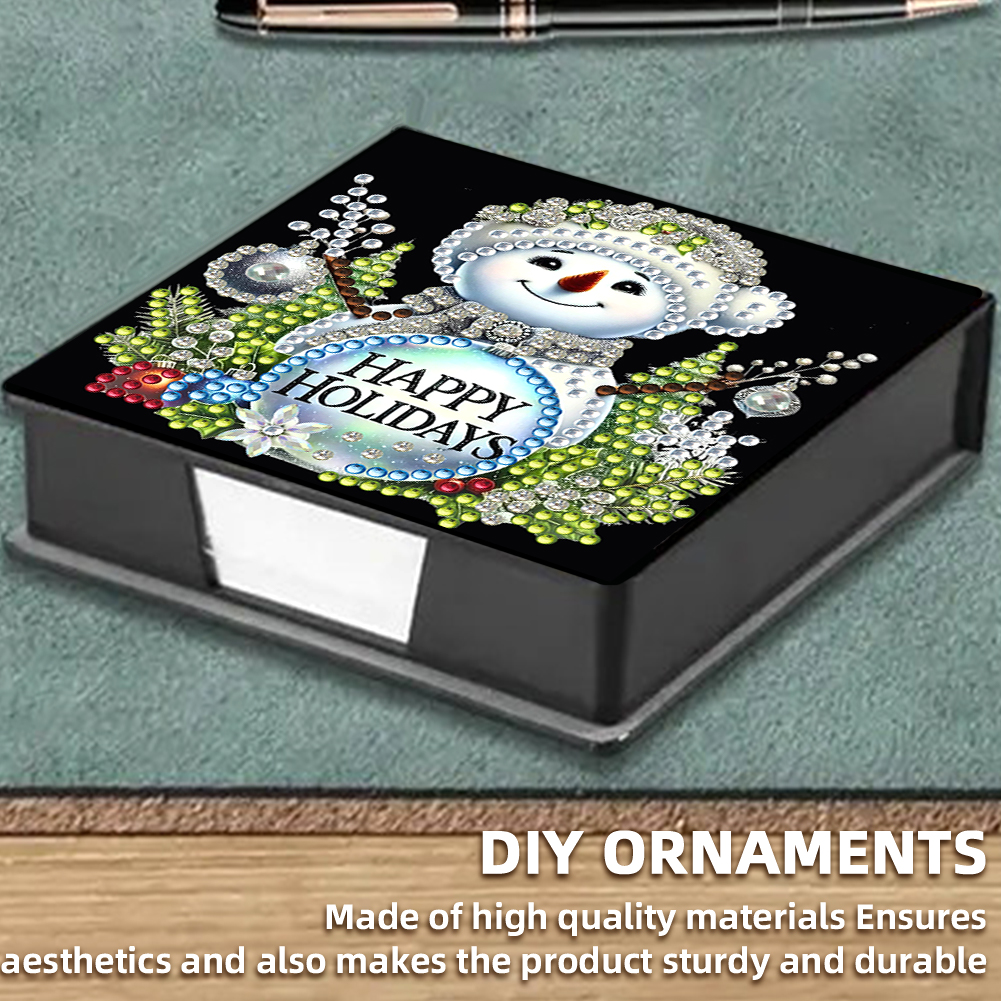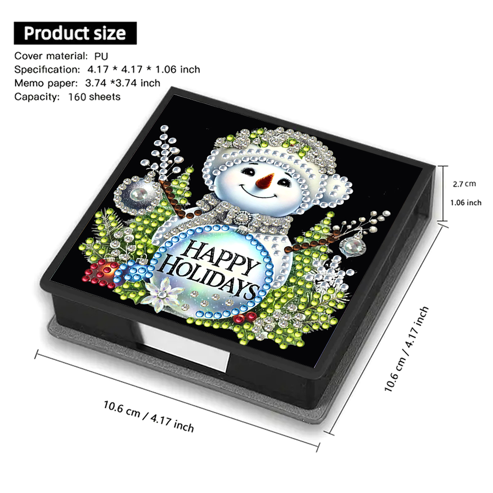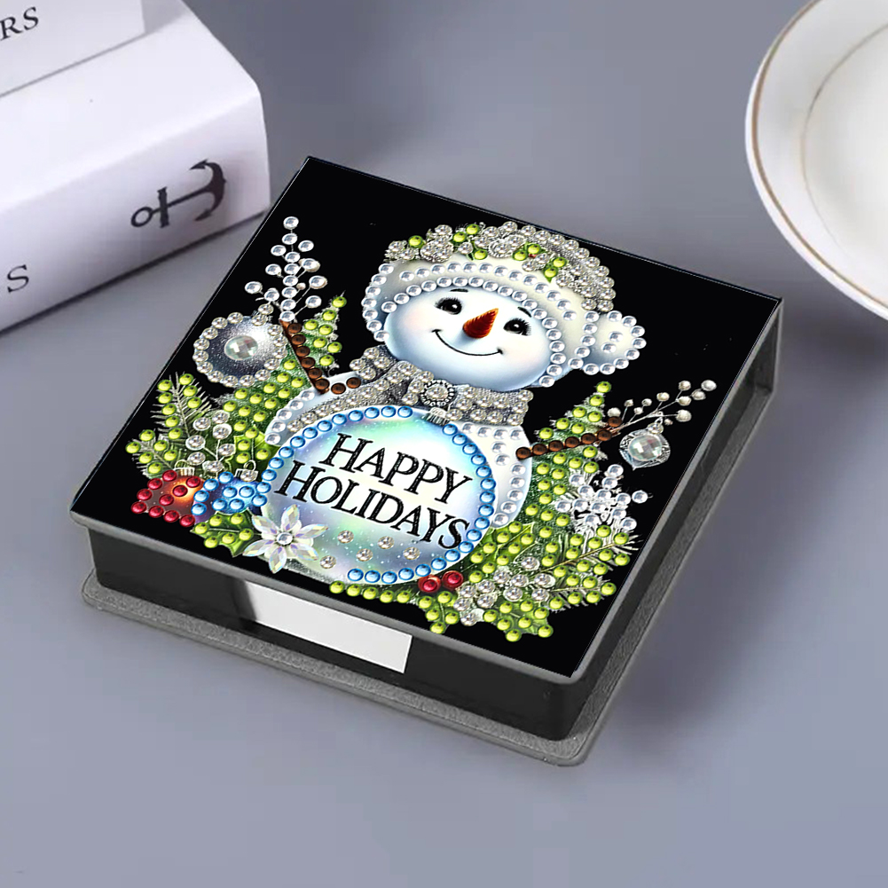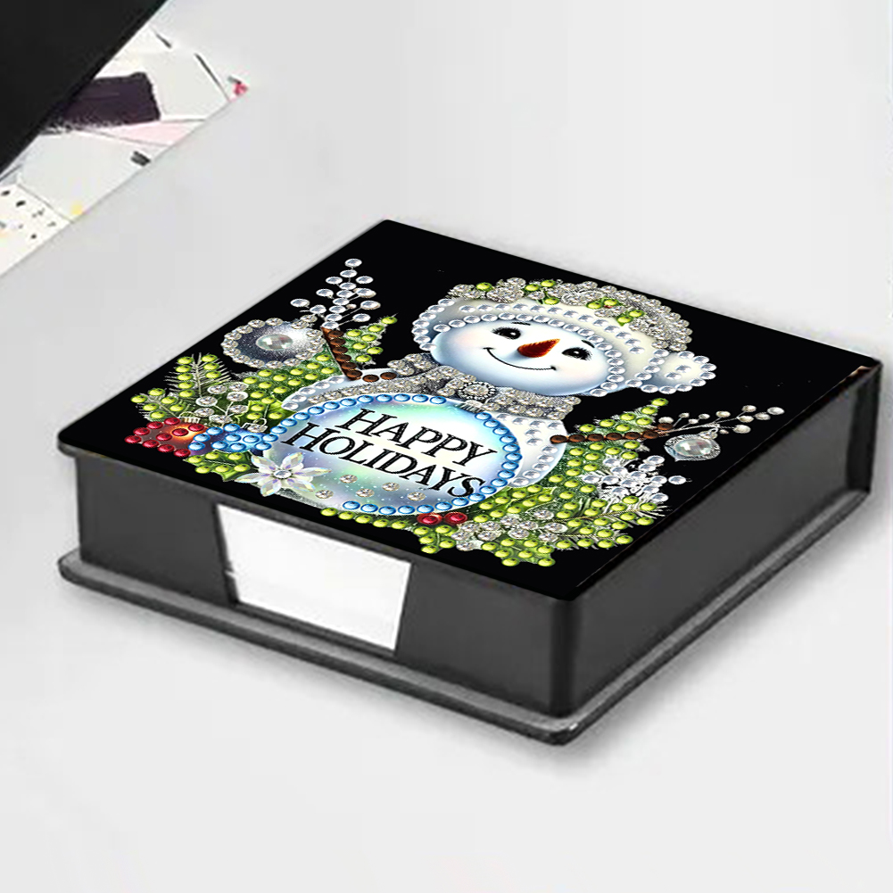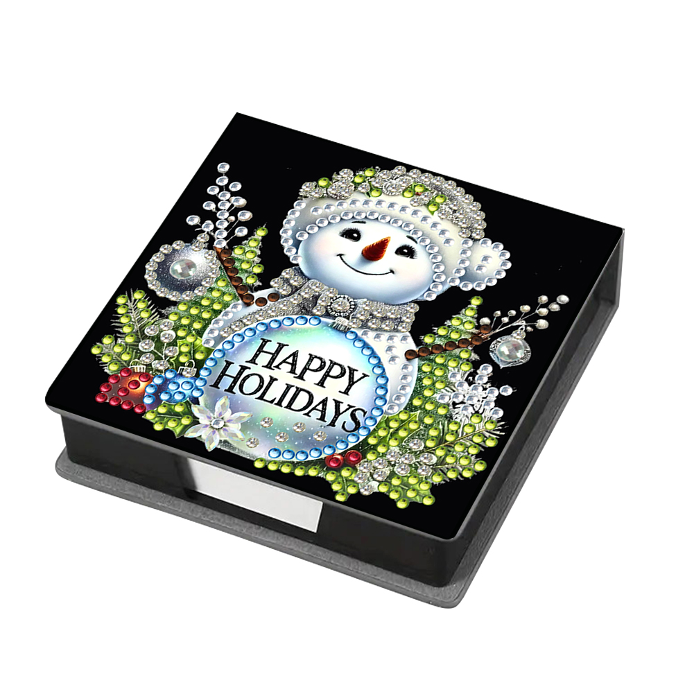 5D DIY PU Snowman Diamond Painting Notecard Box Gem Art Sticky Note Holder