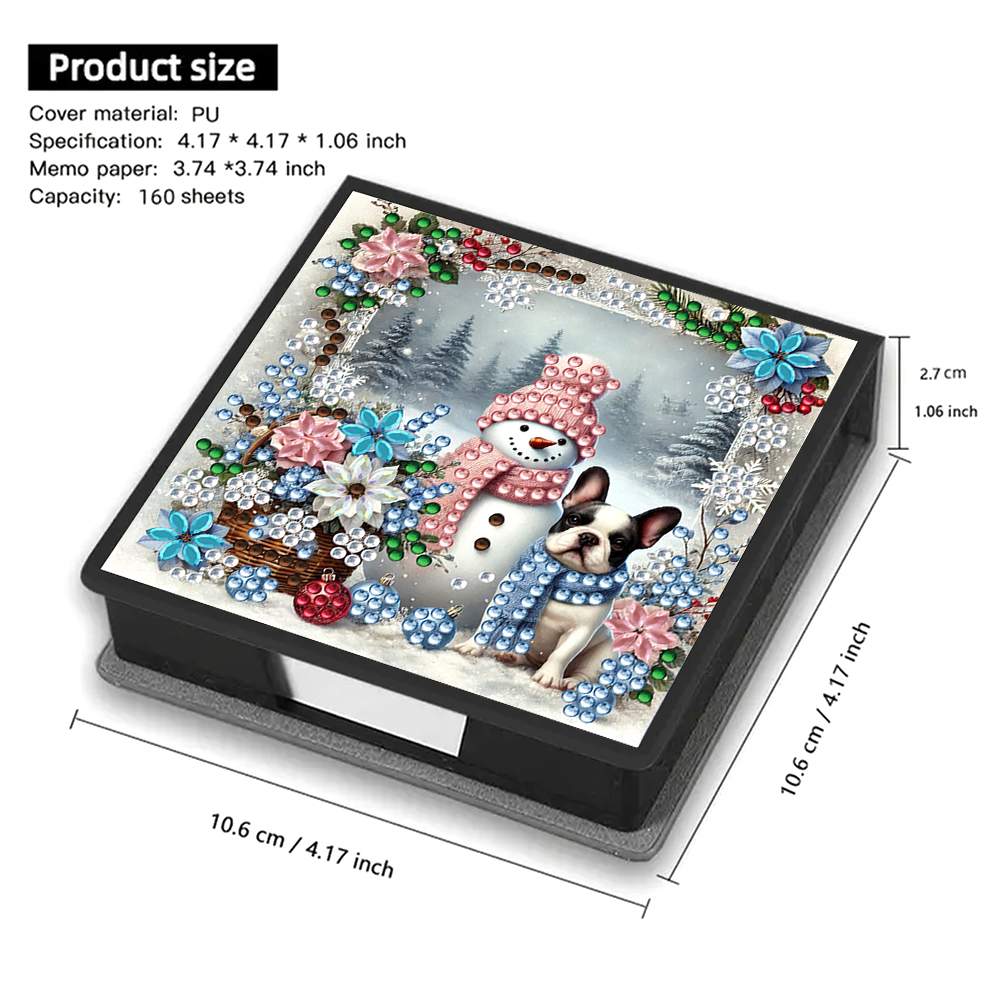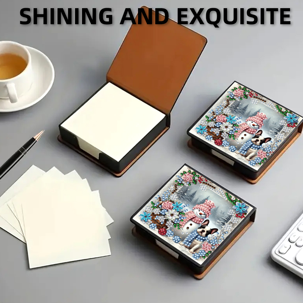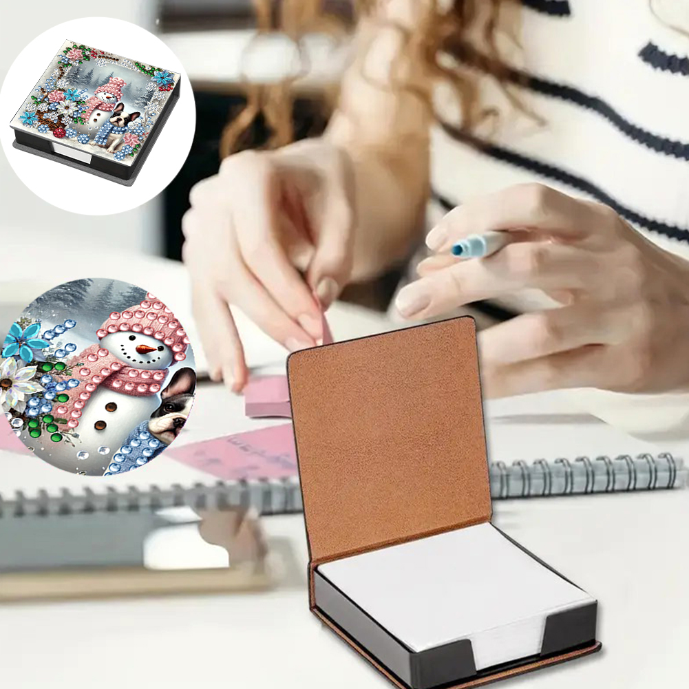 5D DIY PU Snowman Dog Diamond Painting Notecard Box Gem Art Note Holder