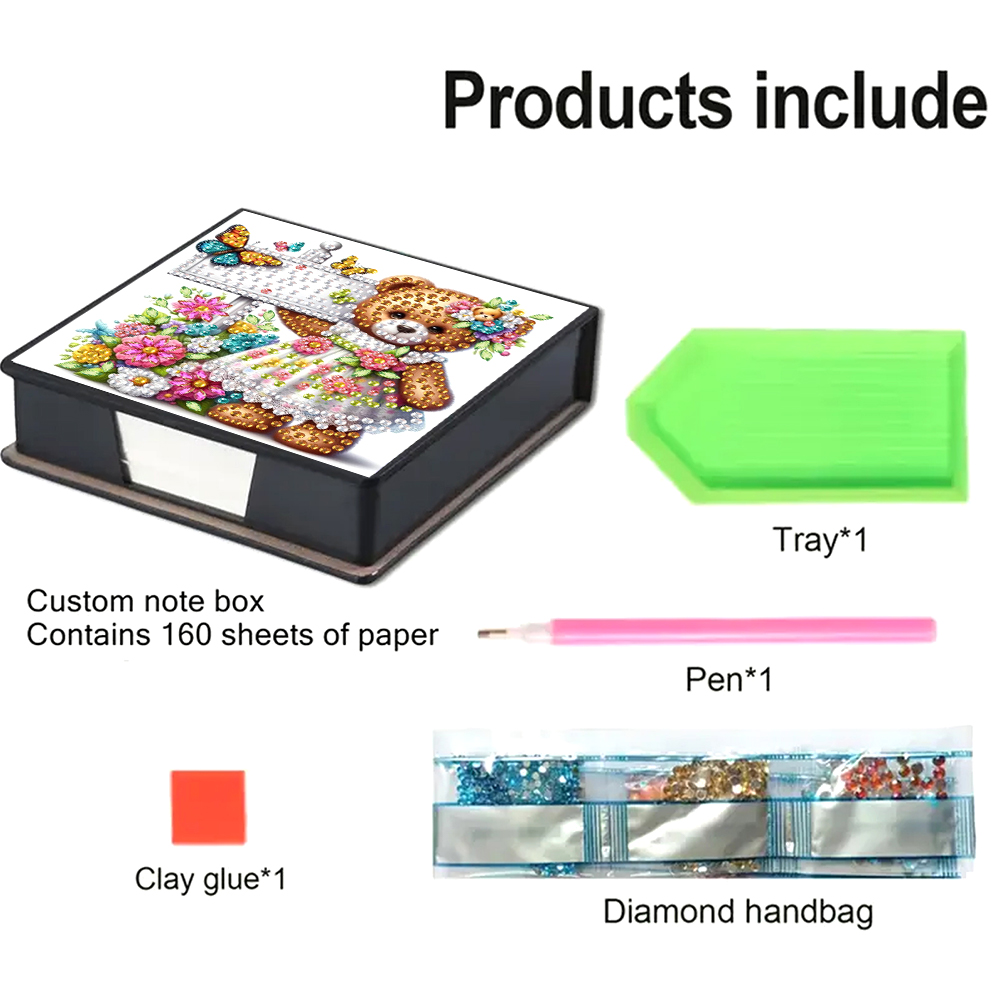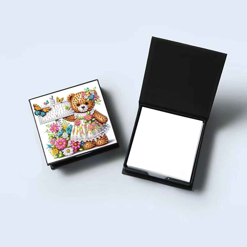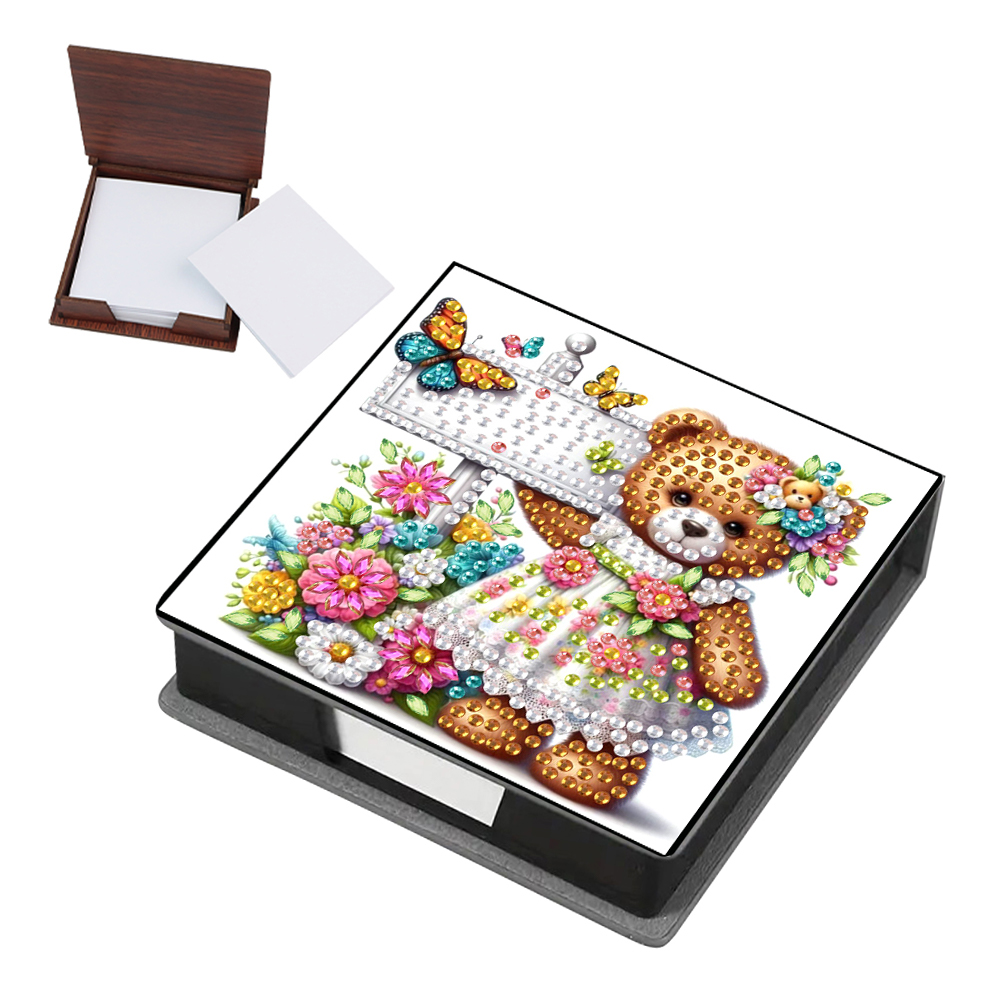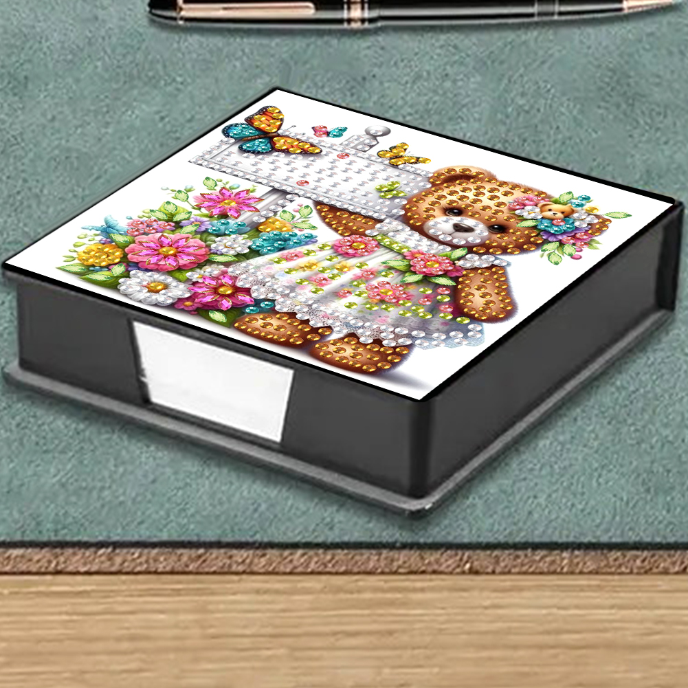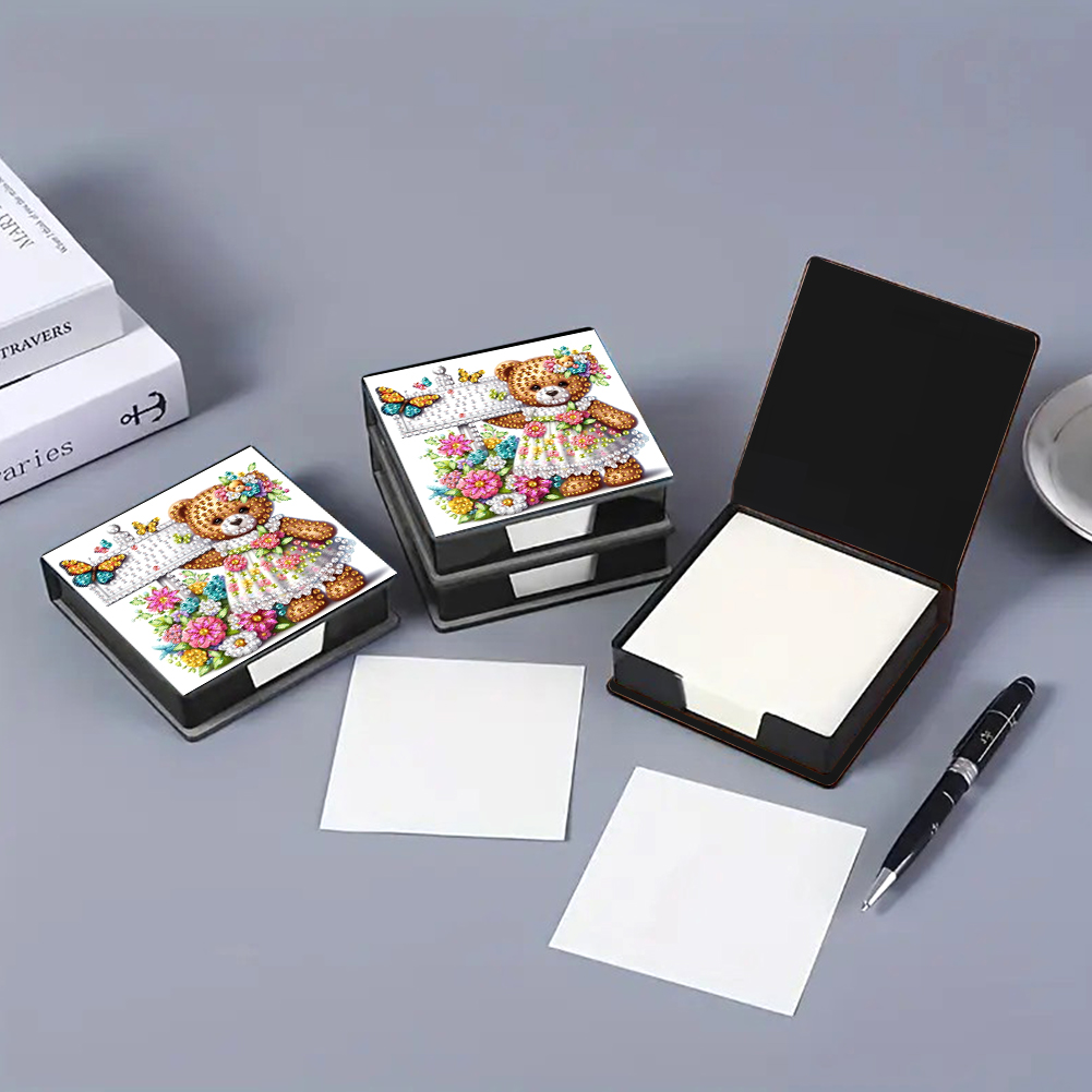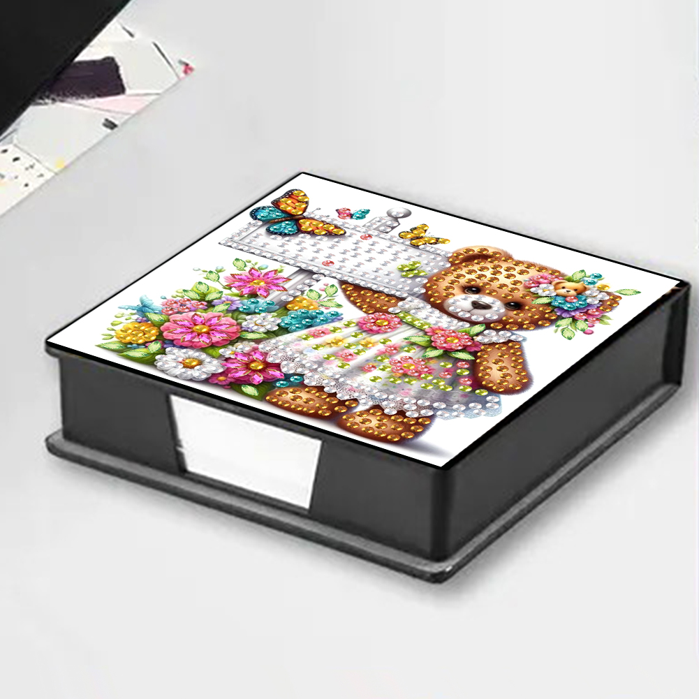 PU Bear Diamond Painting Notecard Box with 160 Sheets of Paper for Adults
