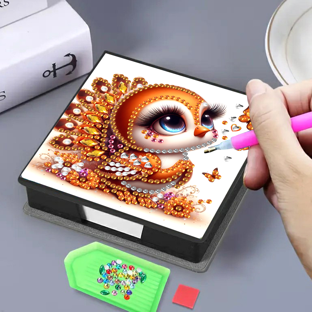 PU Bird Diamond Painting Notecard Box with Papers for DIY Art Craft