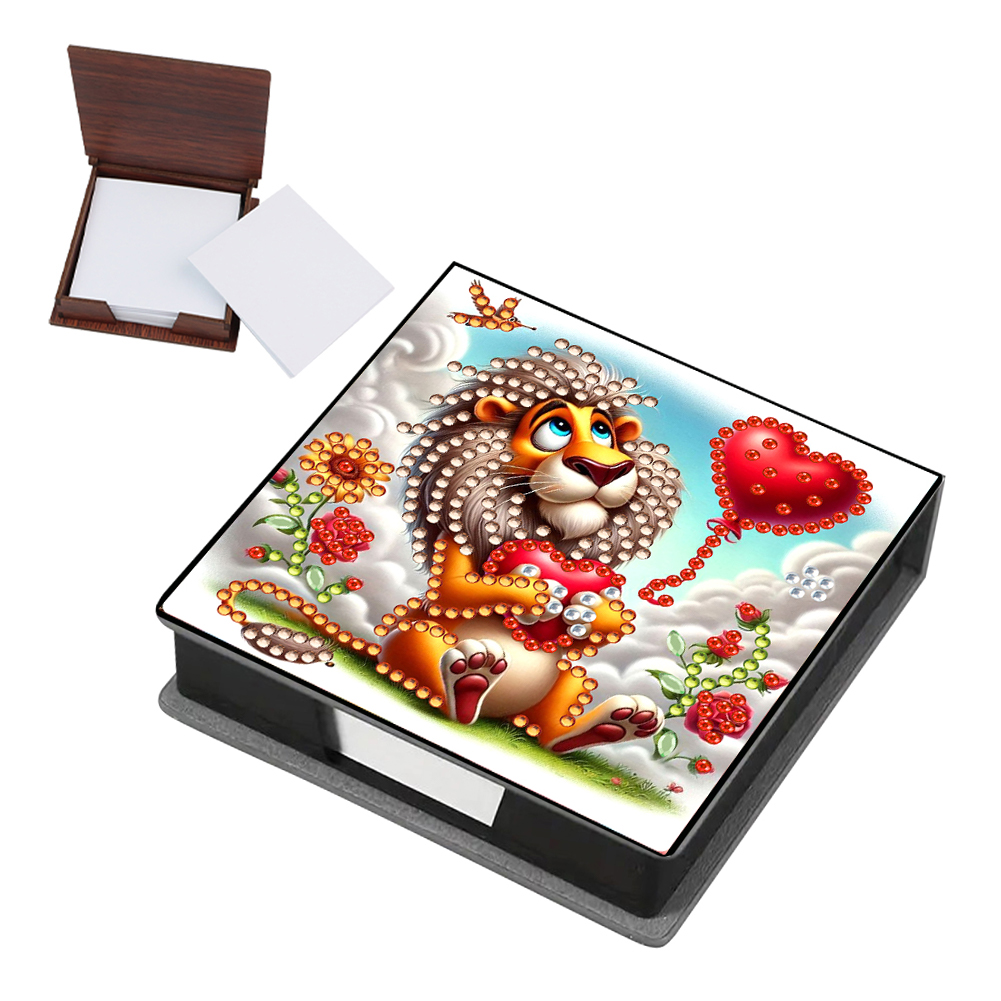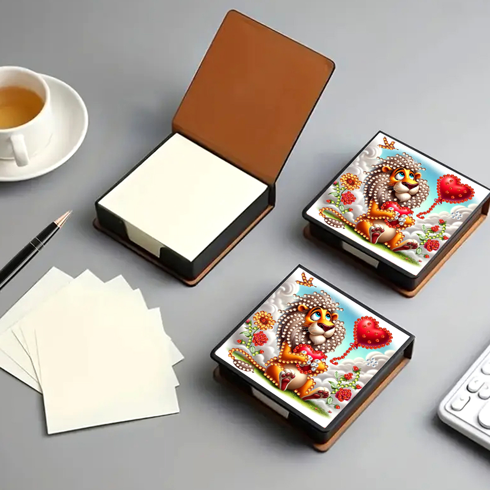 PU Lions Diamond Painting Notecard Box with Papers for DIY Art Craft