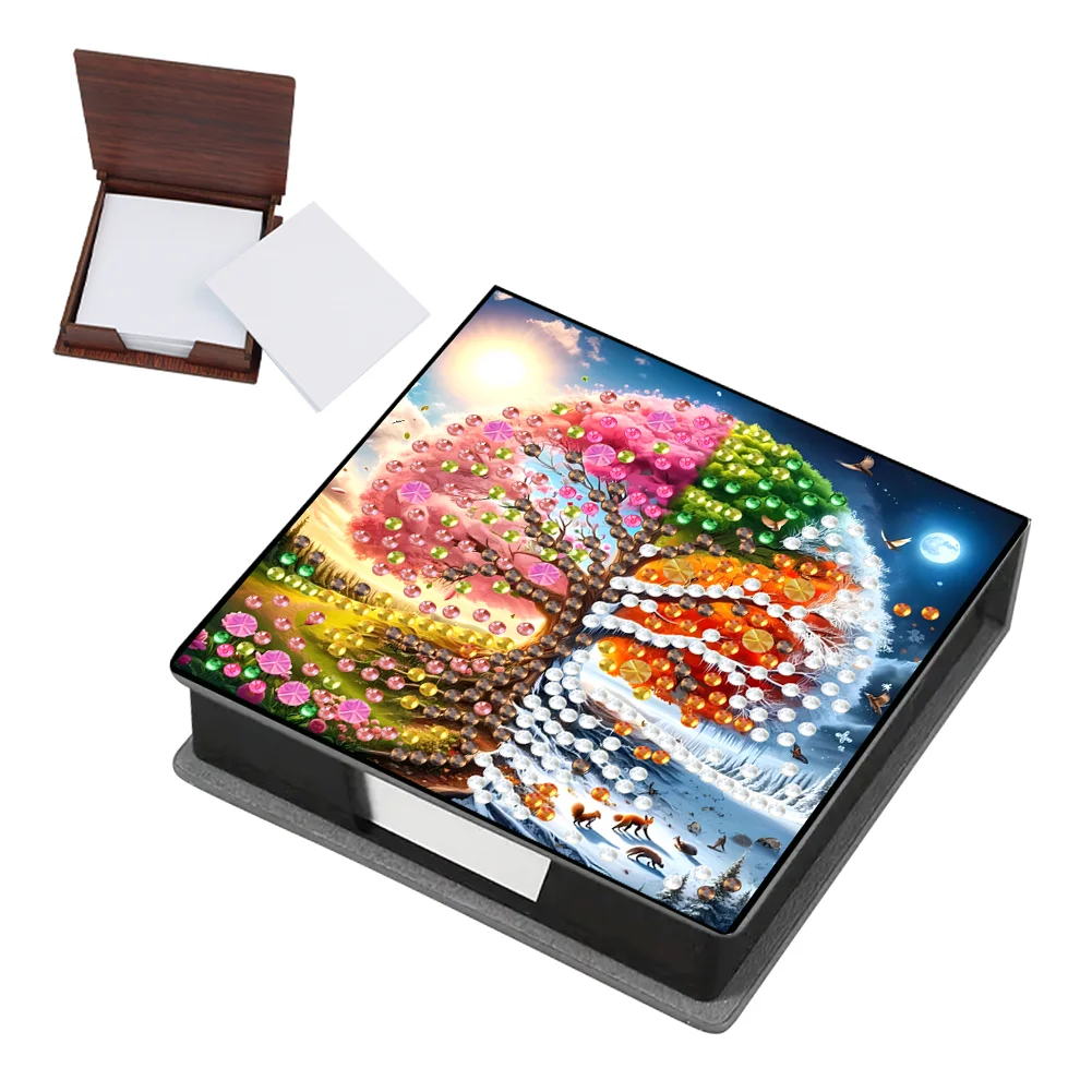 PU Tree Diamond Painting Notecard Box with Papers for DIY Art Craft