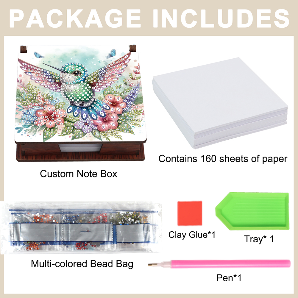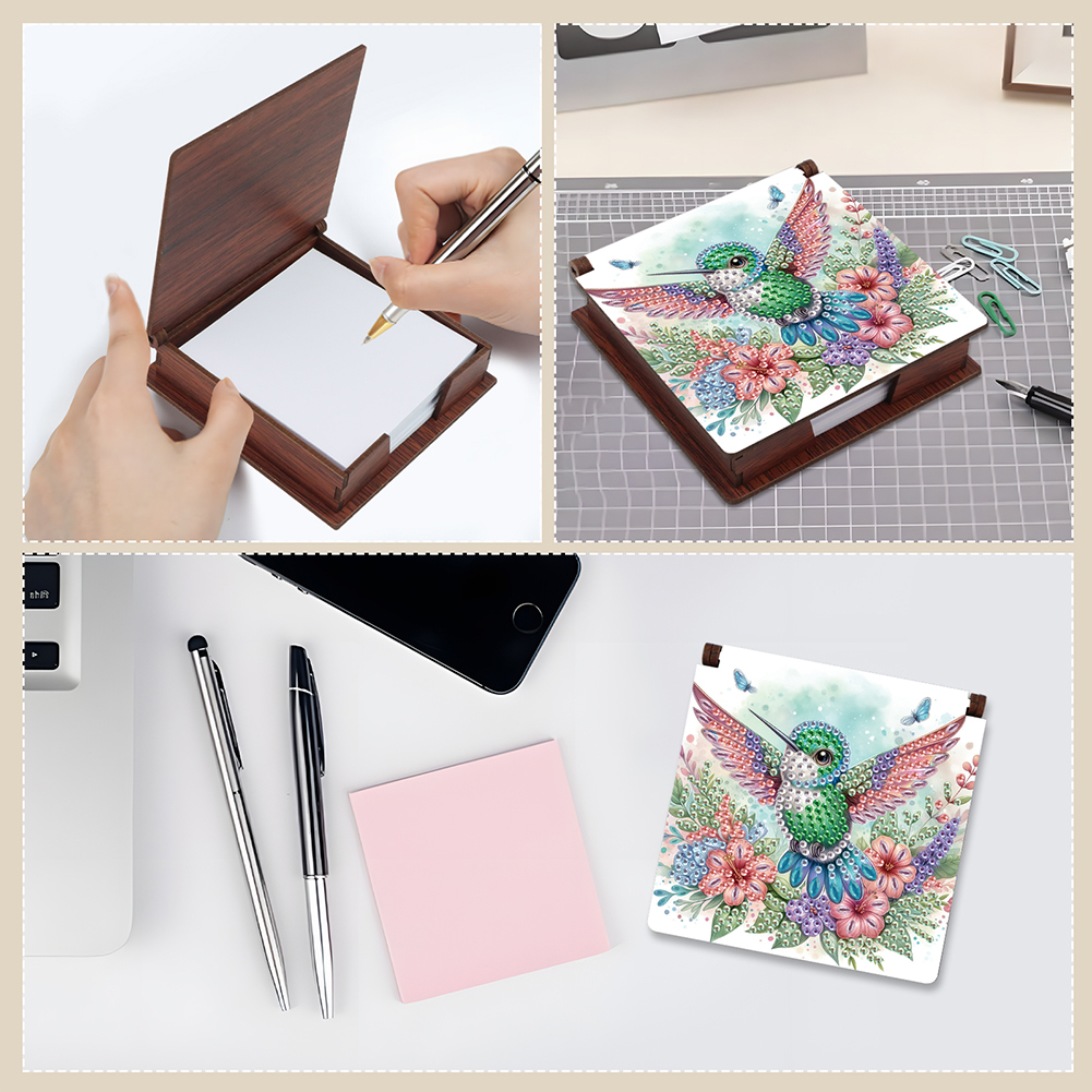 Wood Flower Hummingbird Diamond Painting Memo Pad Holder Mosaic Kit for Home