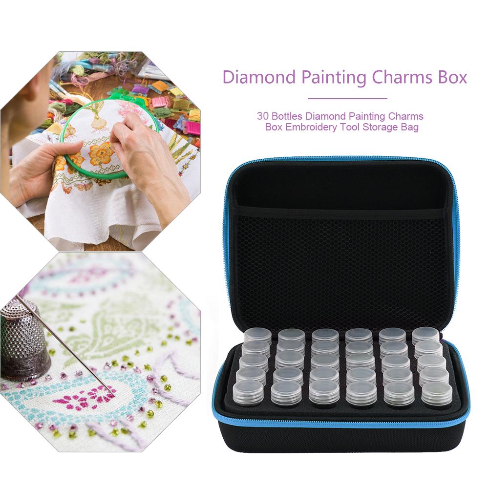 30 Bottles Diamond Painting Charms Box Embroidery Tool Storage Bag (Blue)