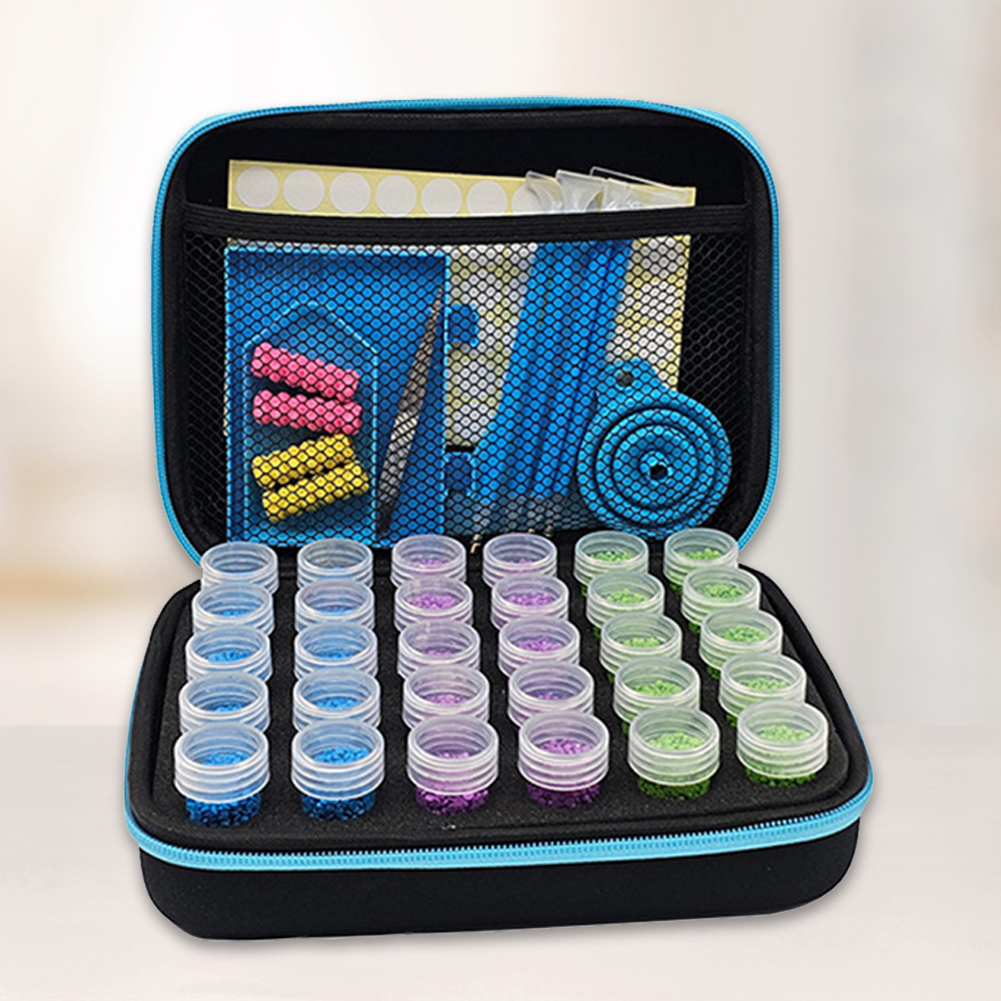77PCS Large Capacity Blue Round Bottle Diamond Painting Kits Organizer with 30 Bottles