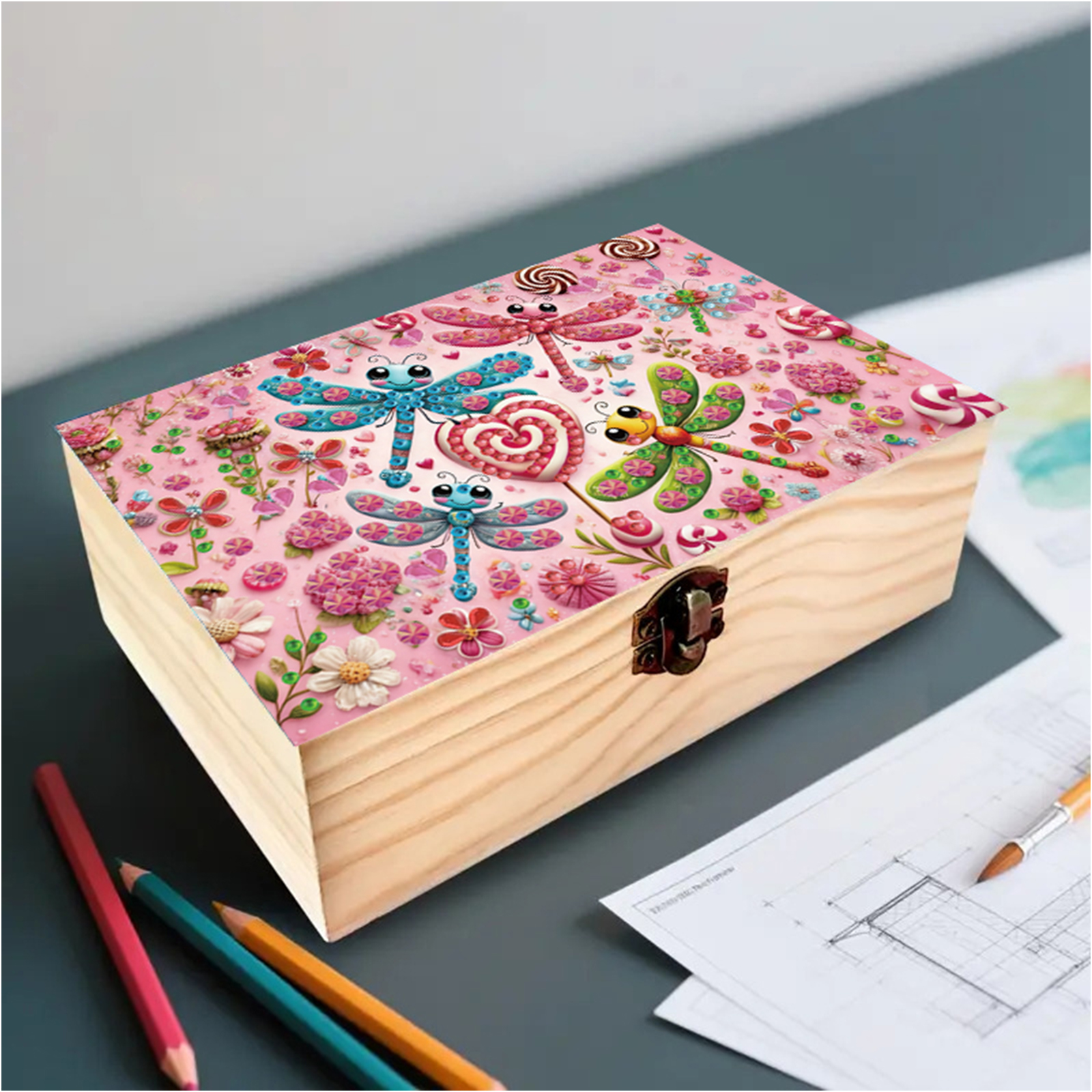 1Pc DIY Diamond Painting Wooden Storage Box Jewelry Box Kits (MZH033)