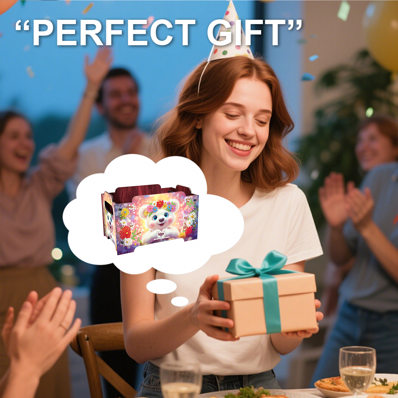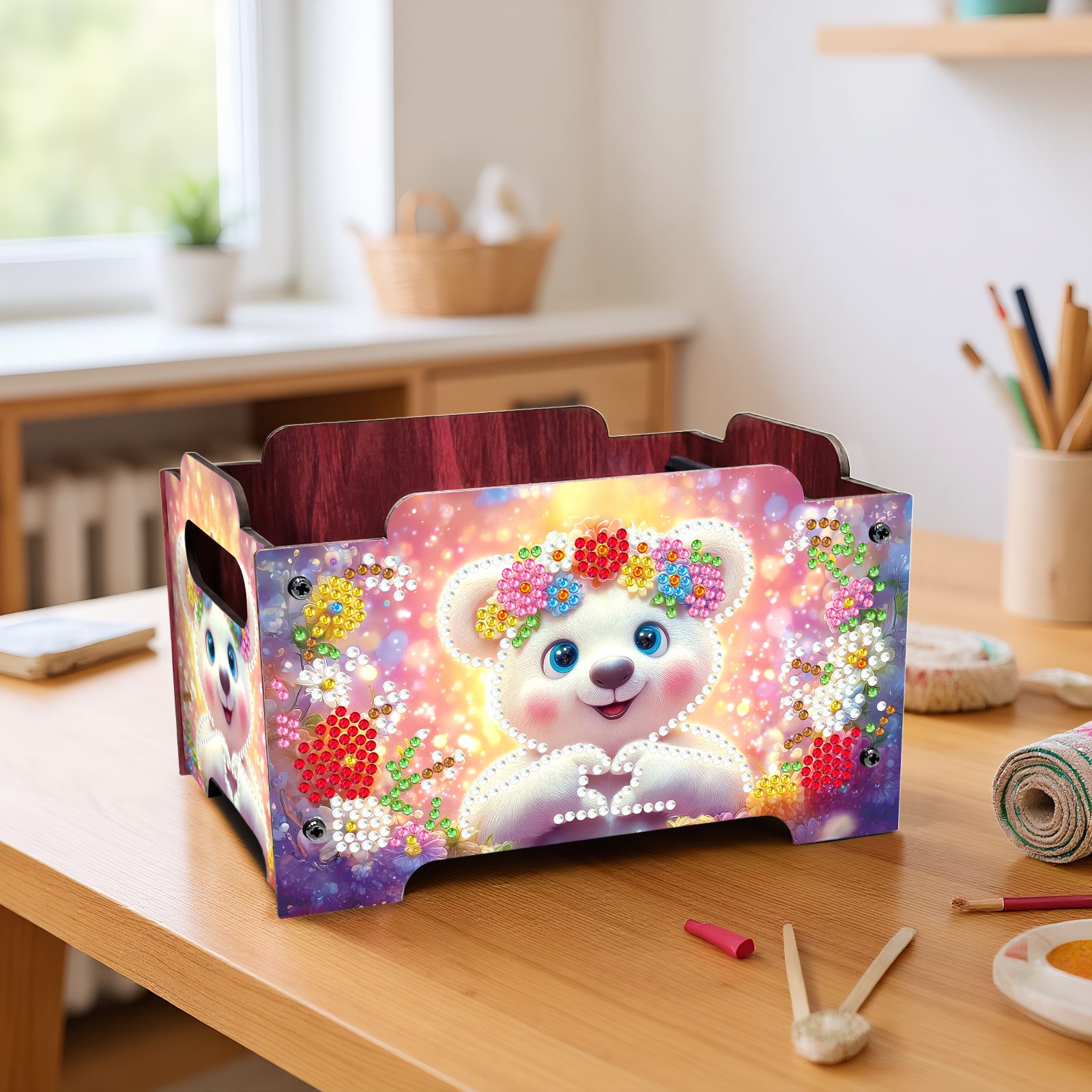5D DIY Diamond Painting Art Decorative Storage Box Wood Storage Clutch (Bear)