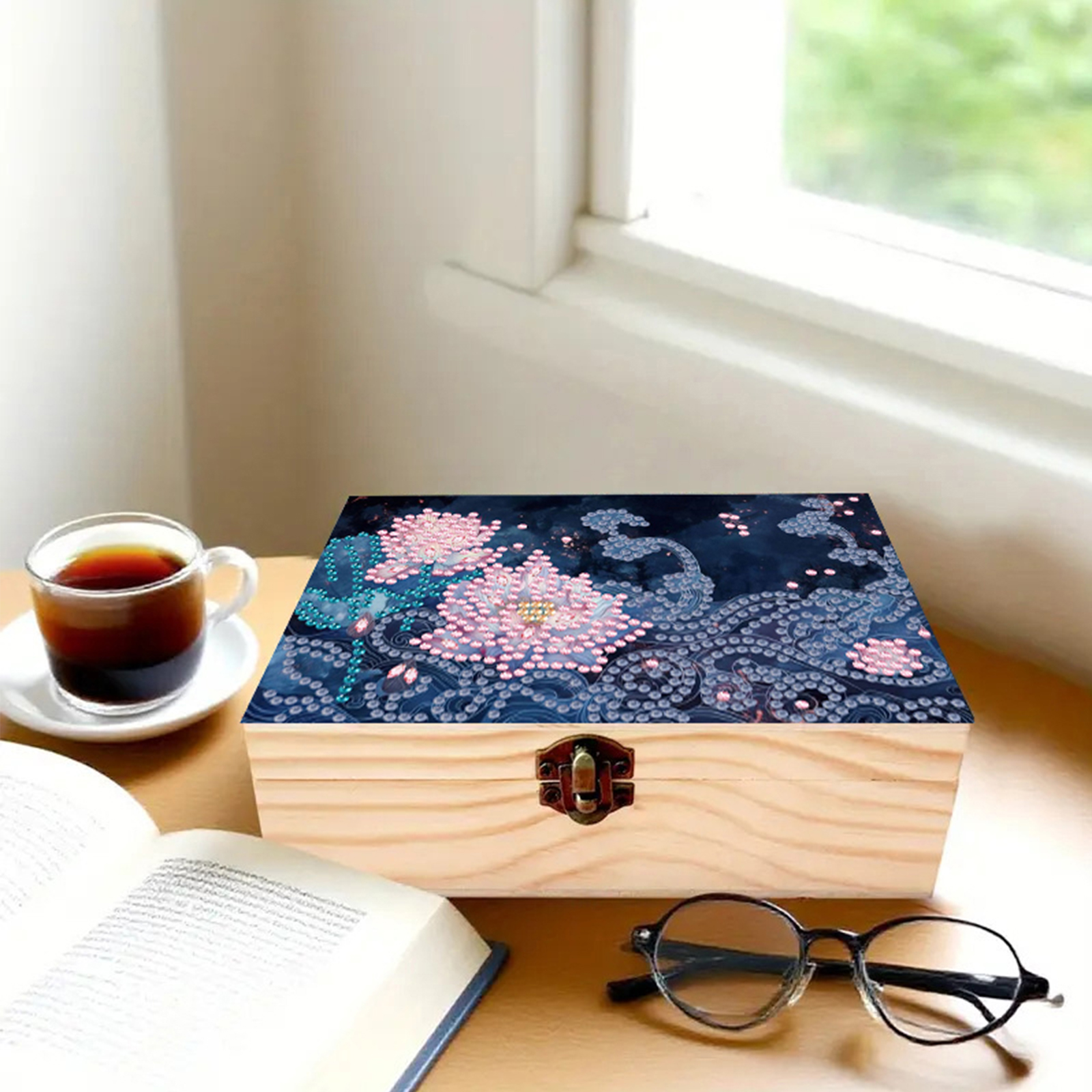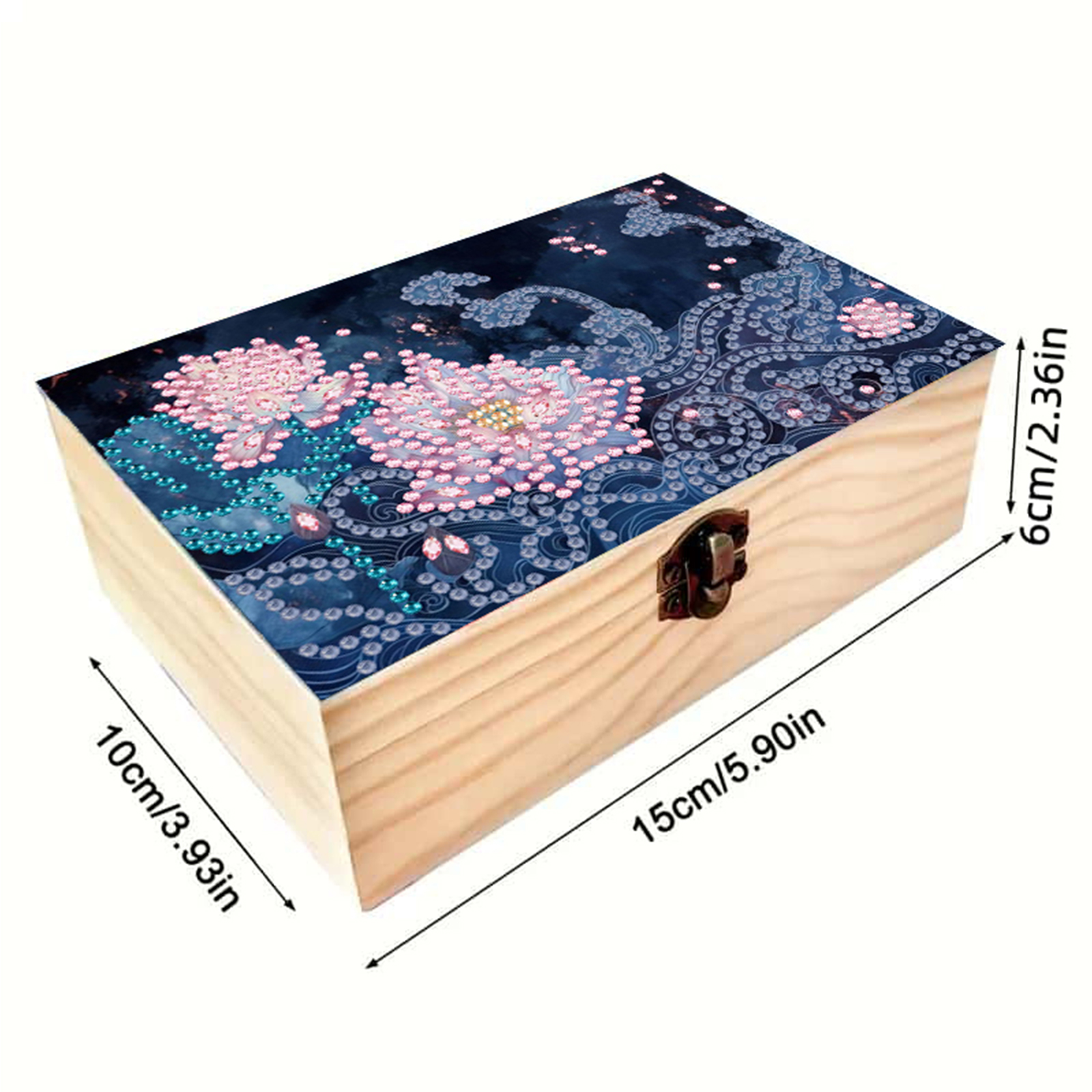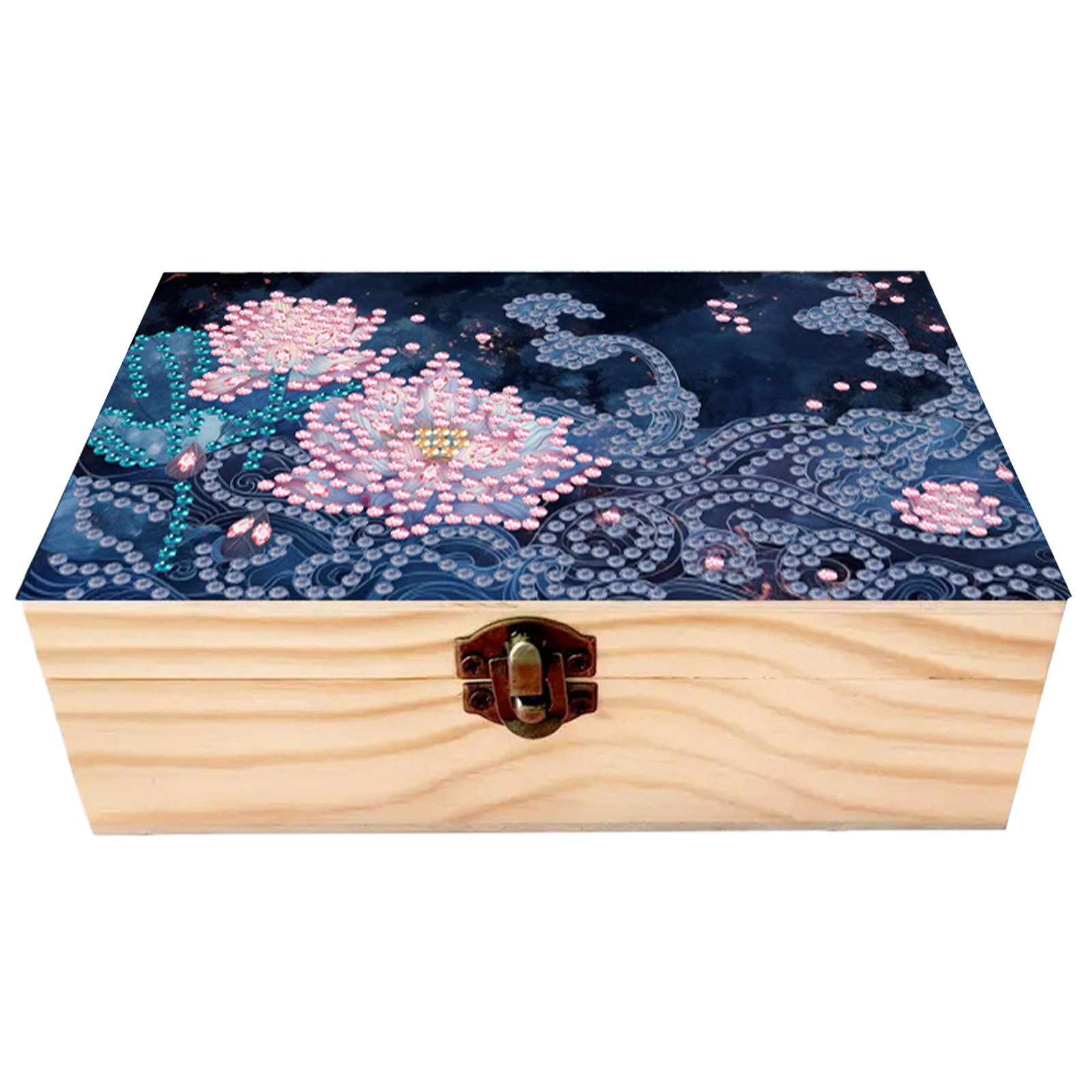 5D DIY Diamond Painting Handmade Wood Storage Box for Home Decor Craft (Lotus)