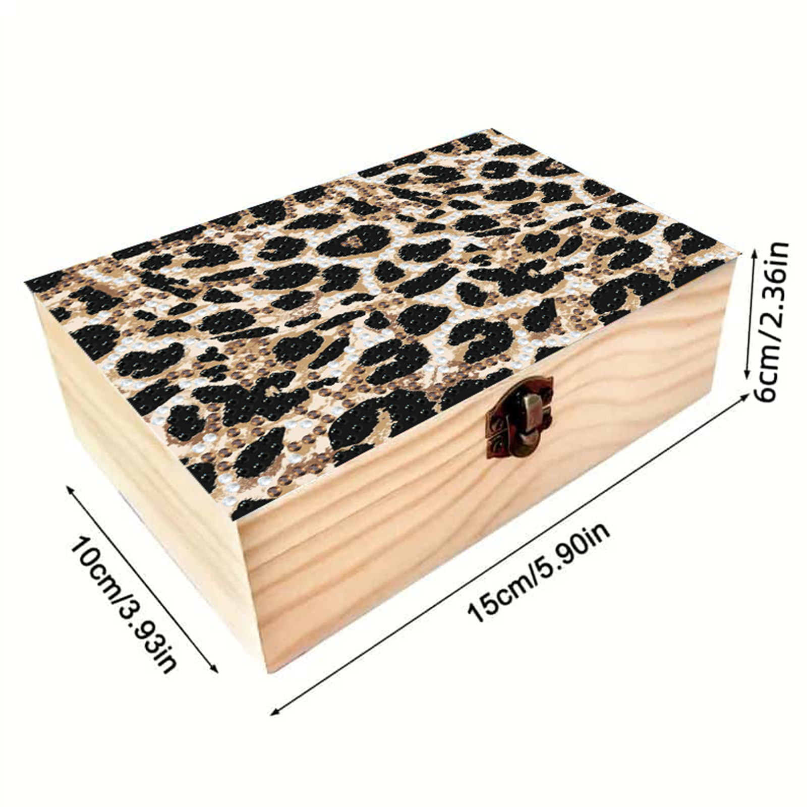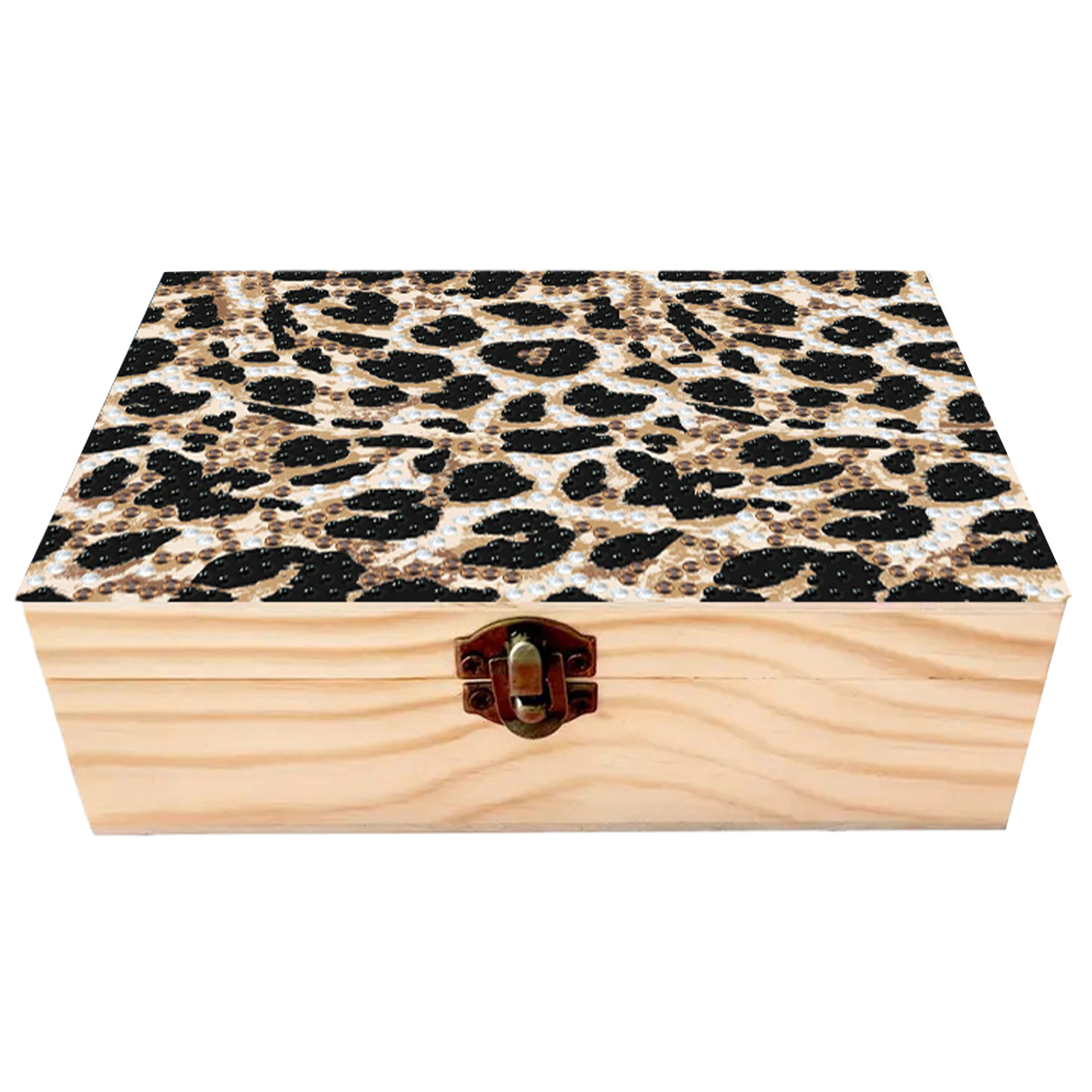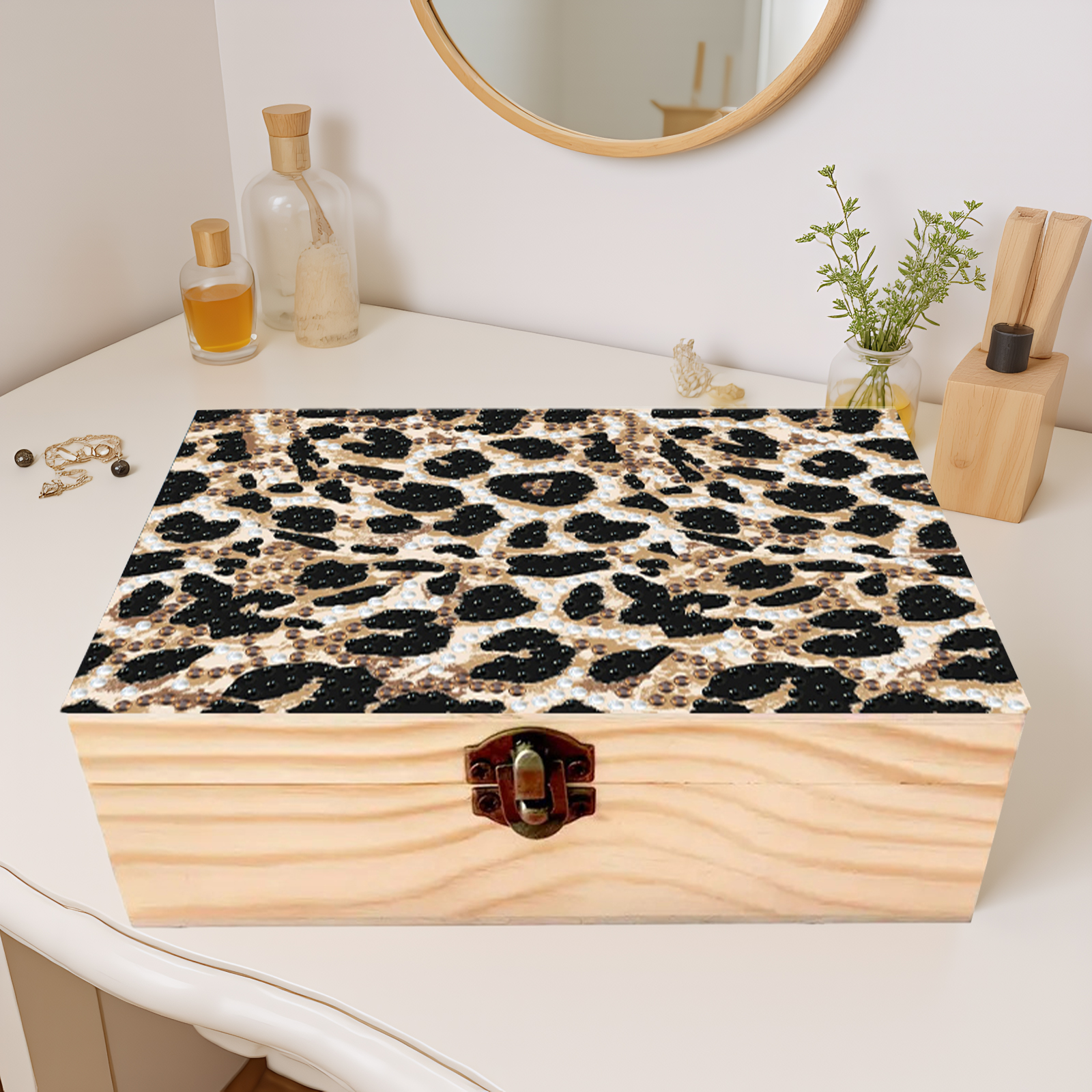 5D DIY Diamond Painting Handmade Wood Storage Box for Home Decor (Leopard Print)