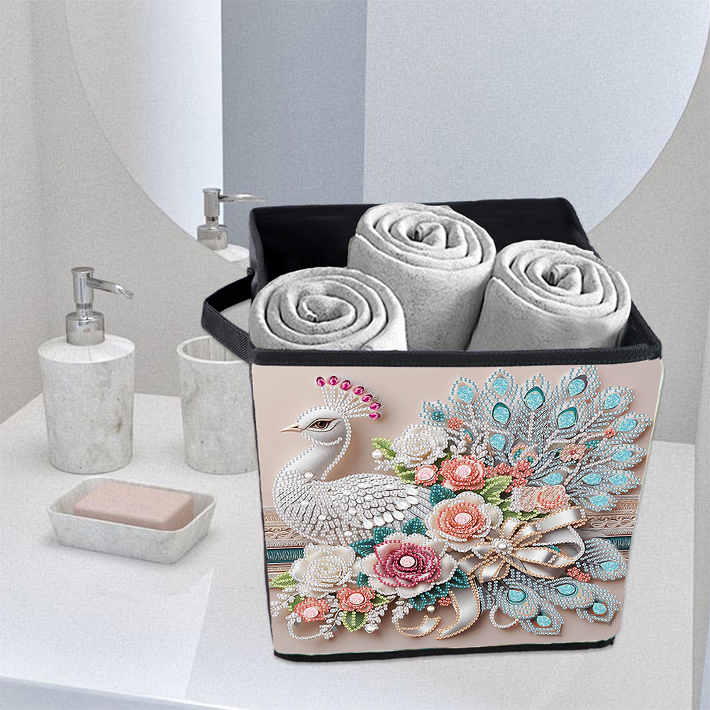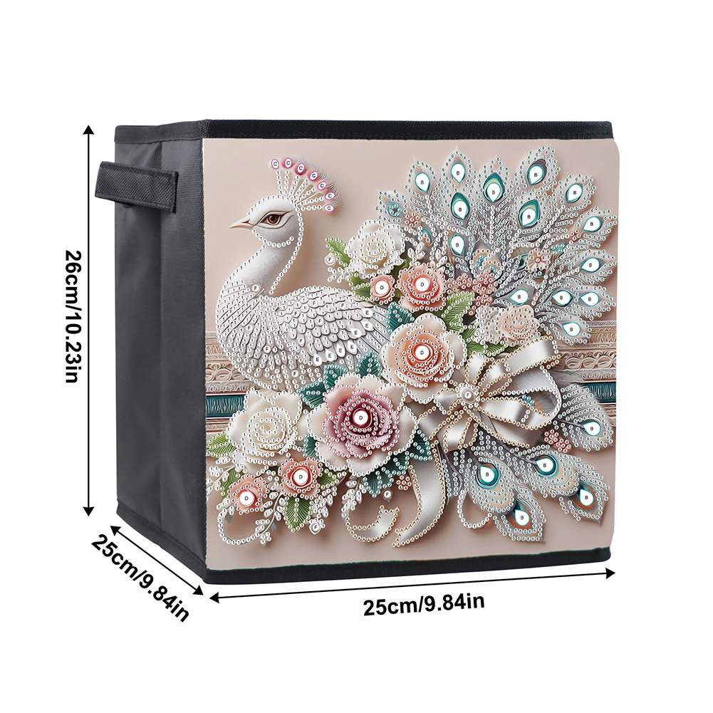 5D DIY Gorgeous Peacock Special Shape Diamond Painting Storage Box for Home Storage(25*26*25cm)