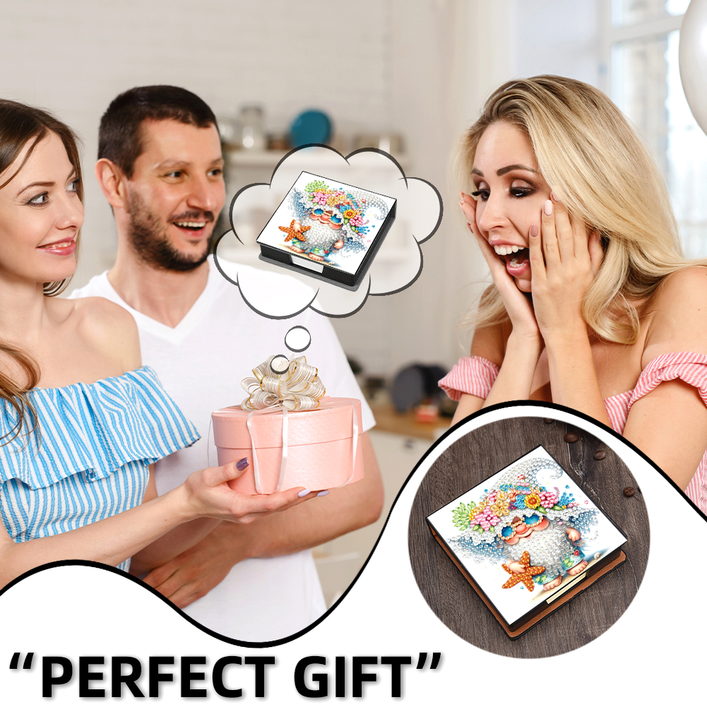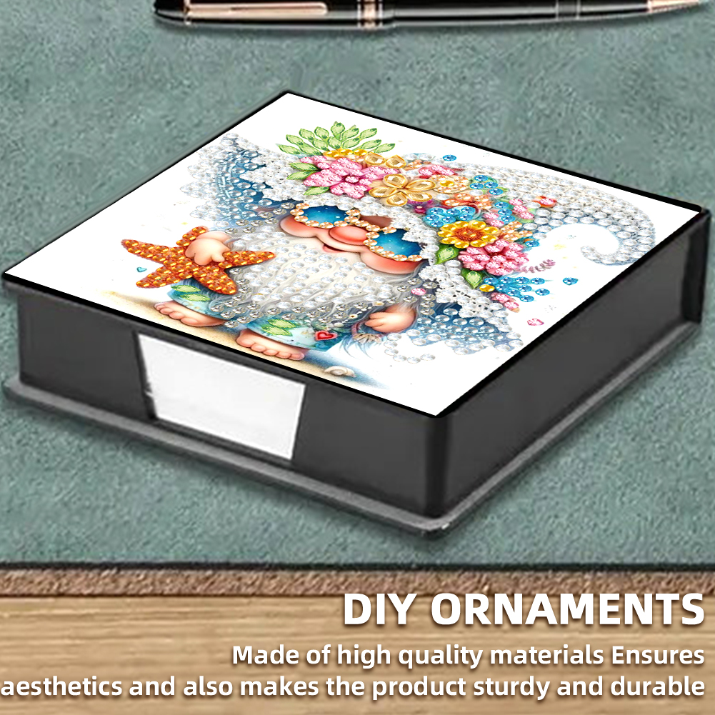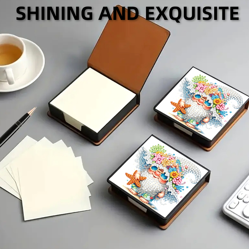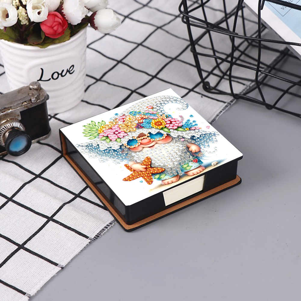 5D DIY PU Diamond Art Note Box with 160 Sheets Paper Memo Pad Holder (Gnome)
