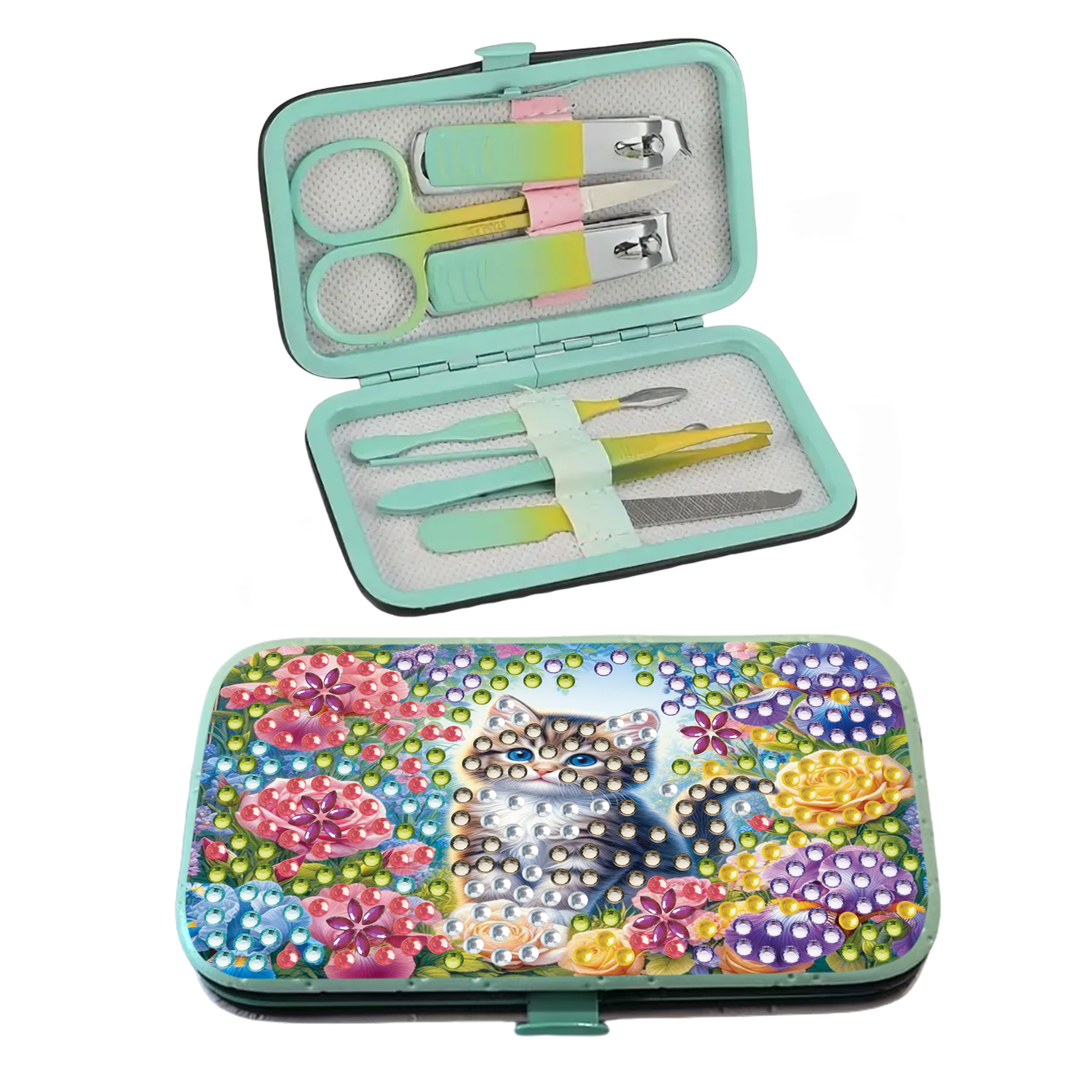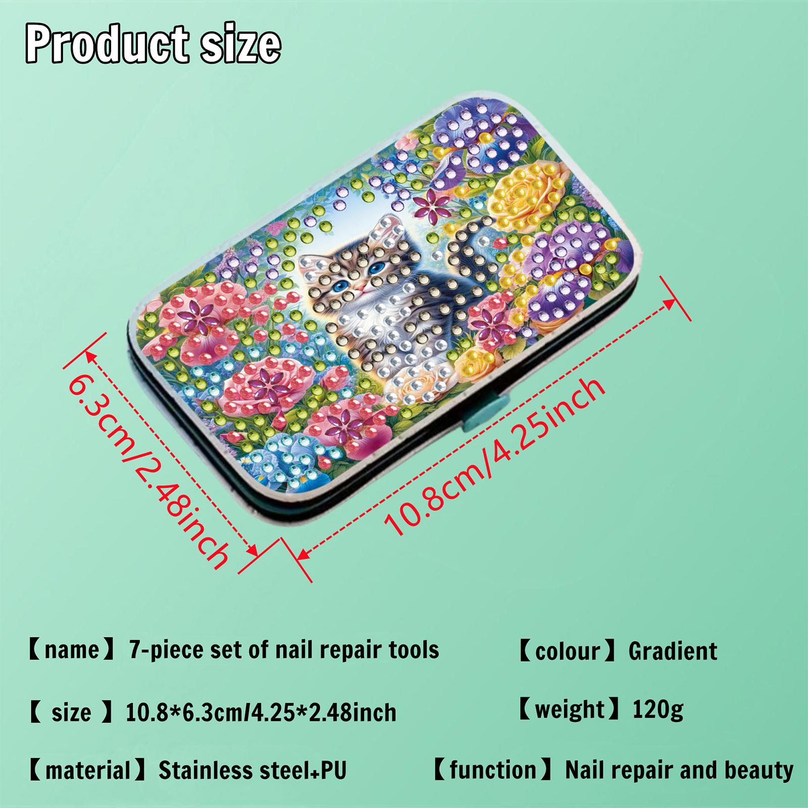 Cat Flower Diamond Painting Nail Art Bag Set Includes 7 Professional Tools