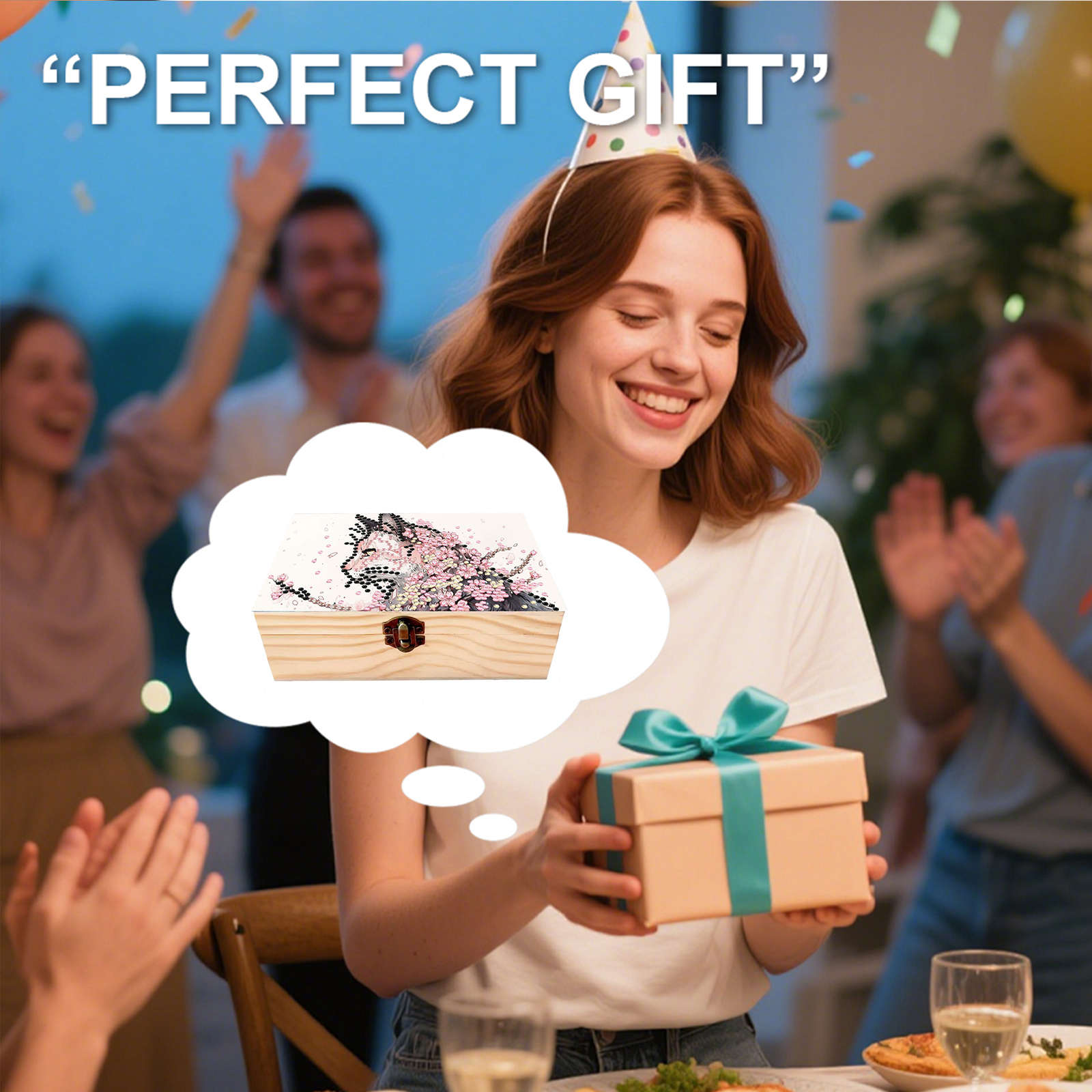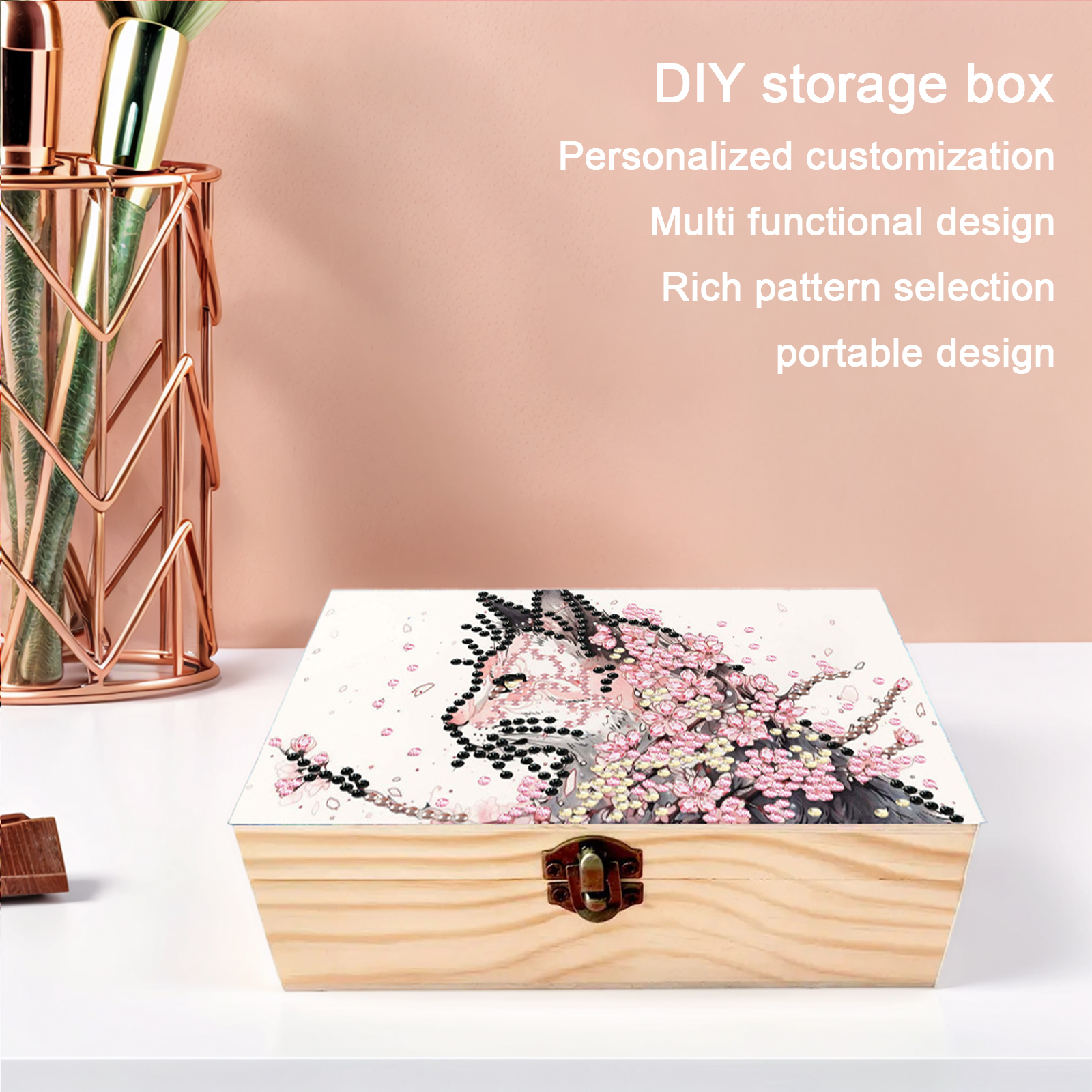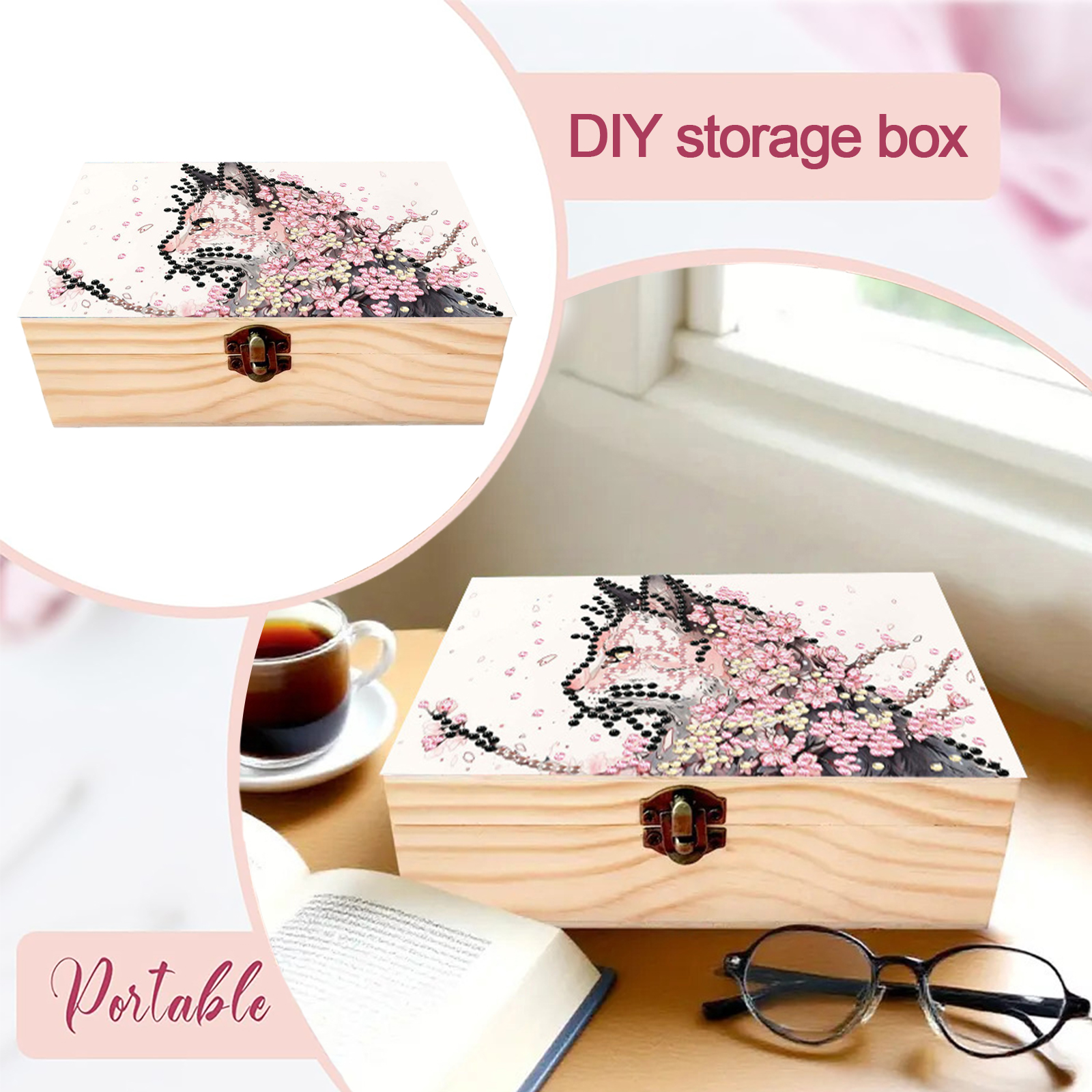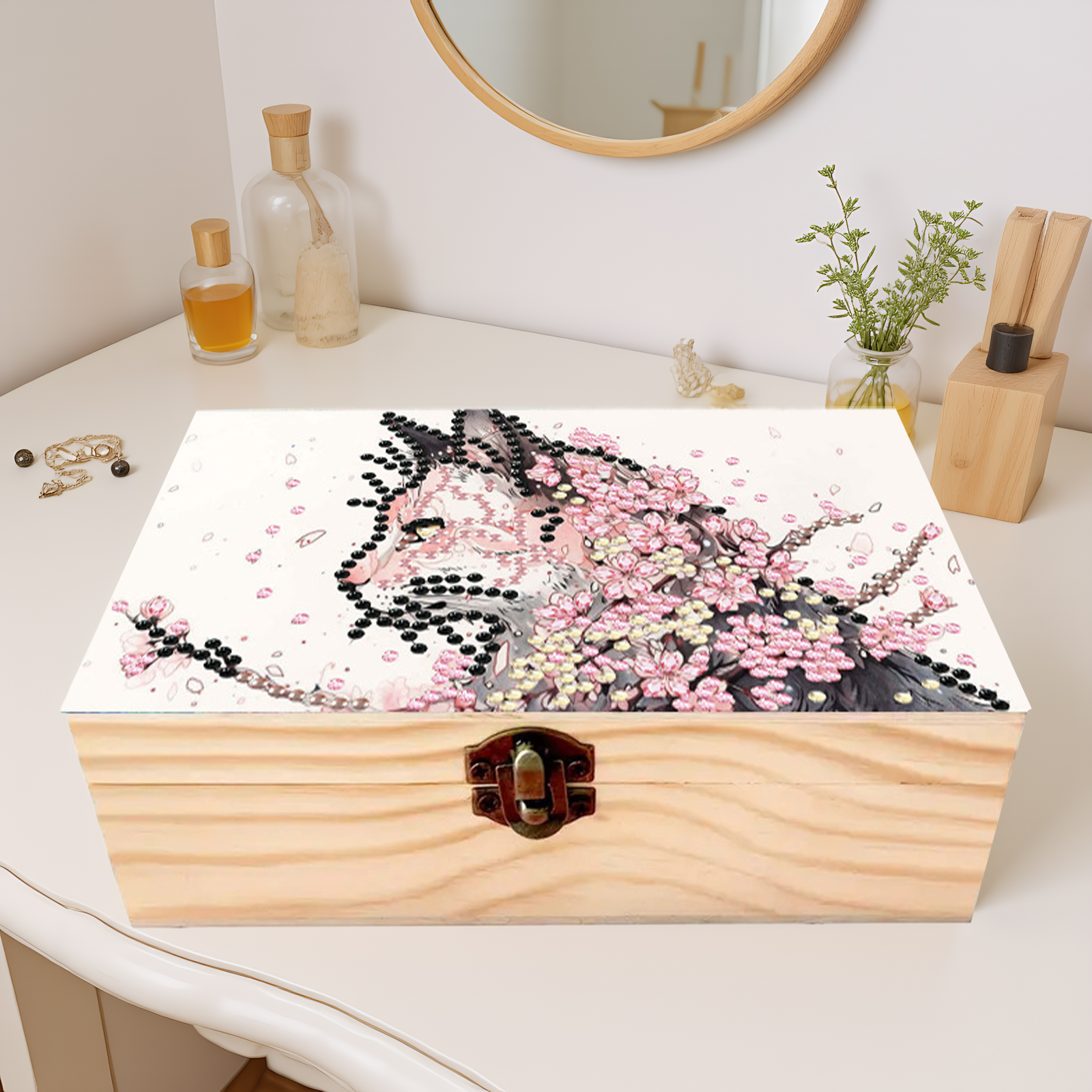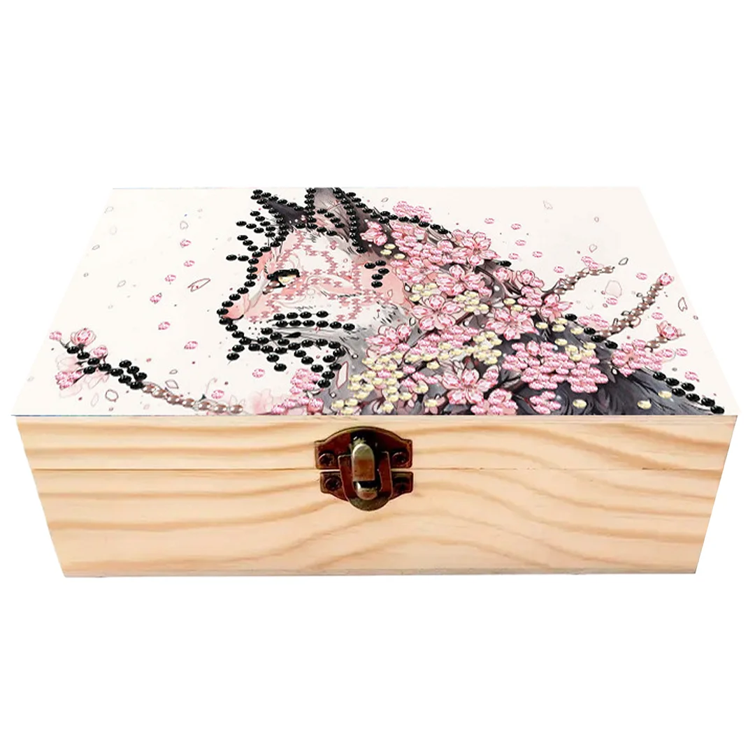 Cats Cherry Blossom DIY Wooden 5D Diamond Art Diamond Art Storage Box for Adults