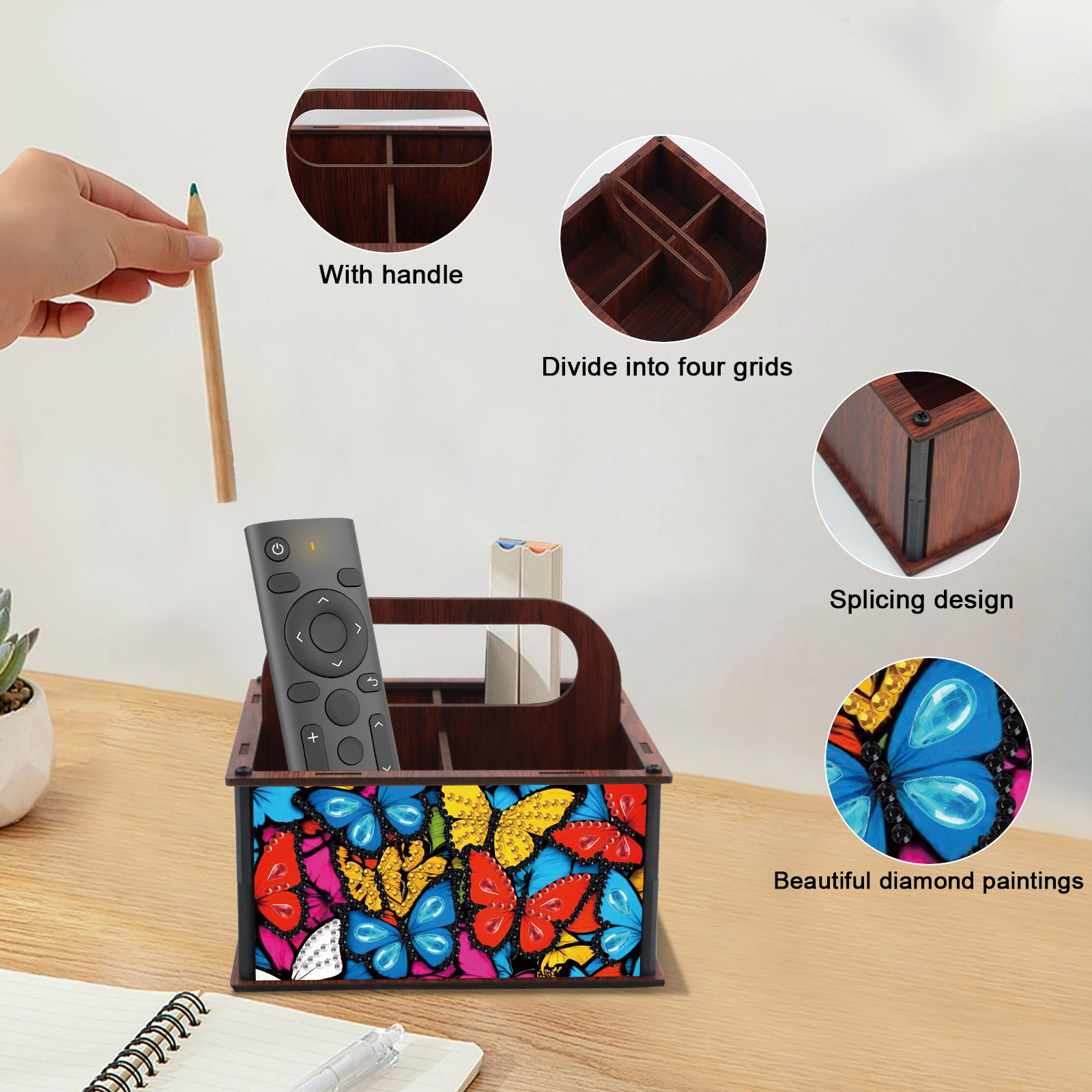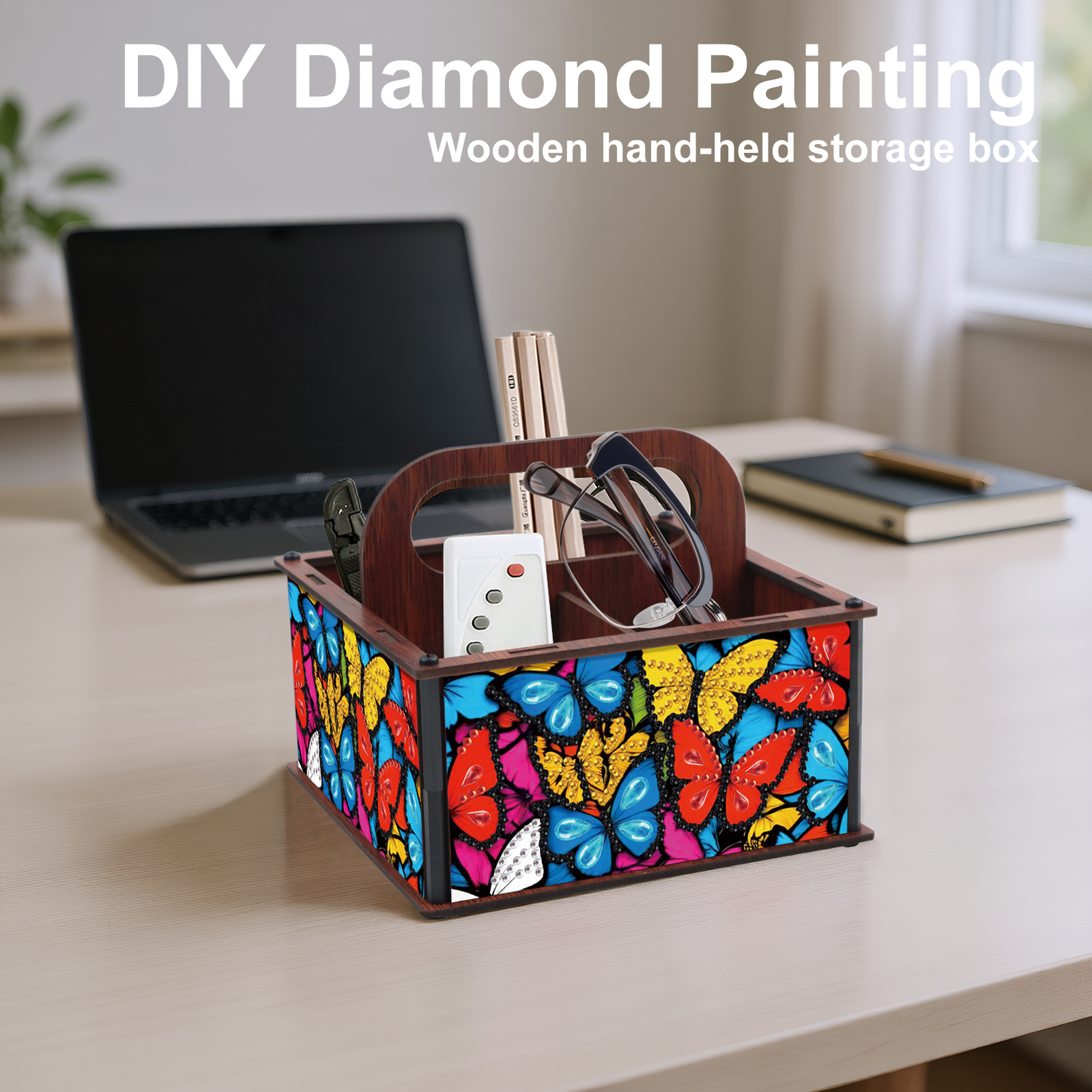 DIY Butterfly Wooden Diamond Painting Handheld Storage Box Kit Tabletop Decor