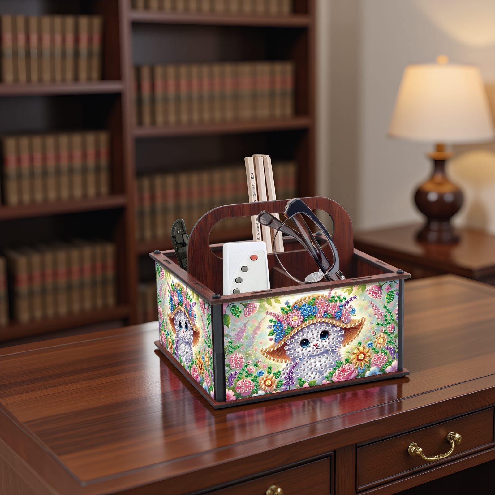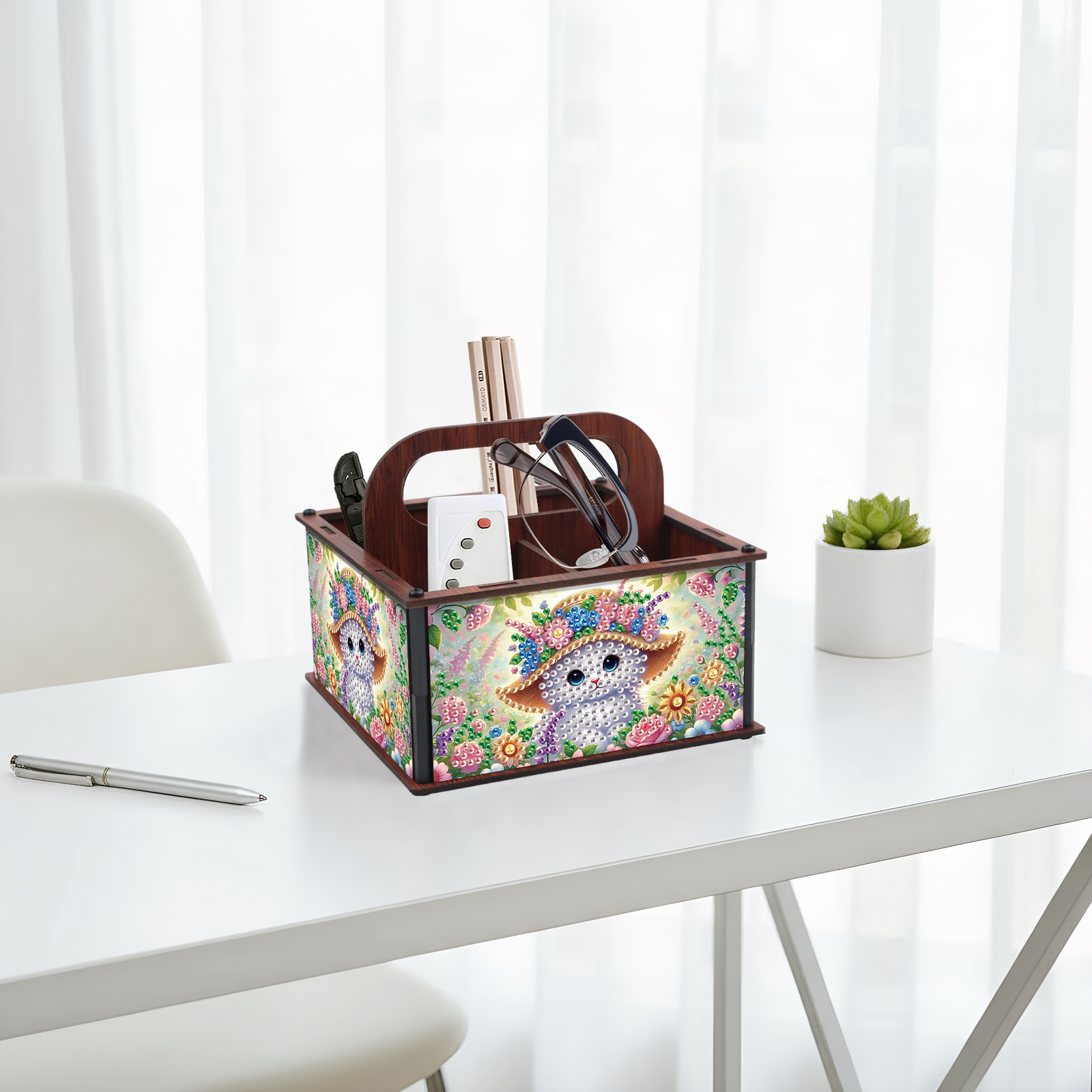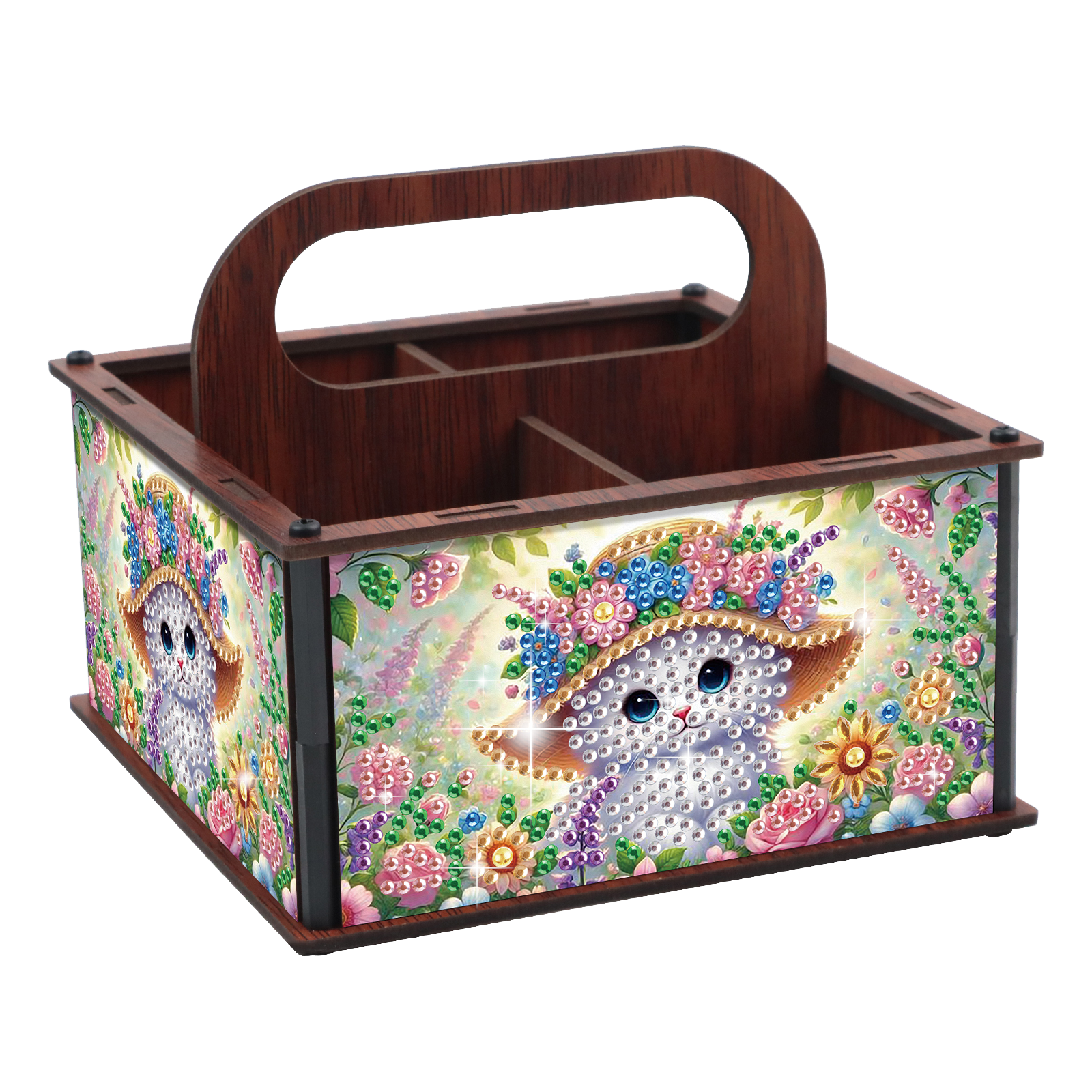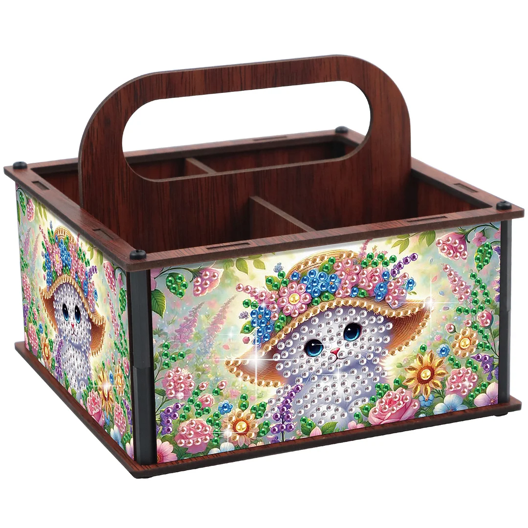 DIY Cat Wooden Diamond Painting Handheld Storage Box Kit Tabletop Art Decor