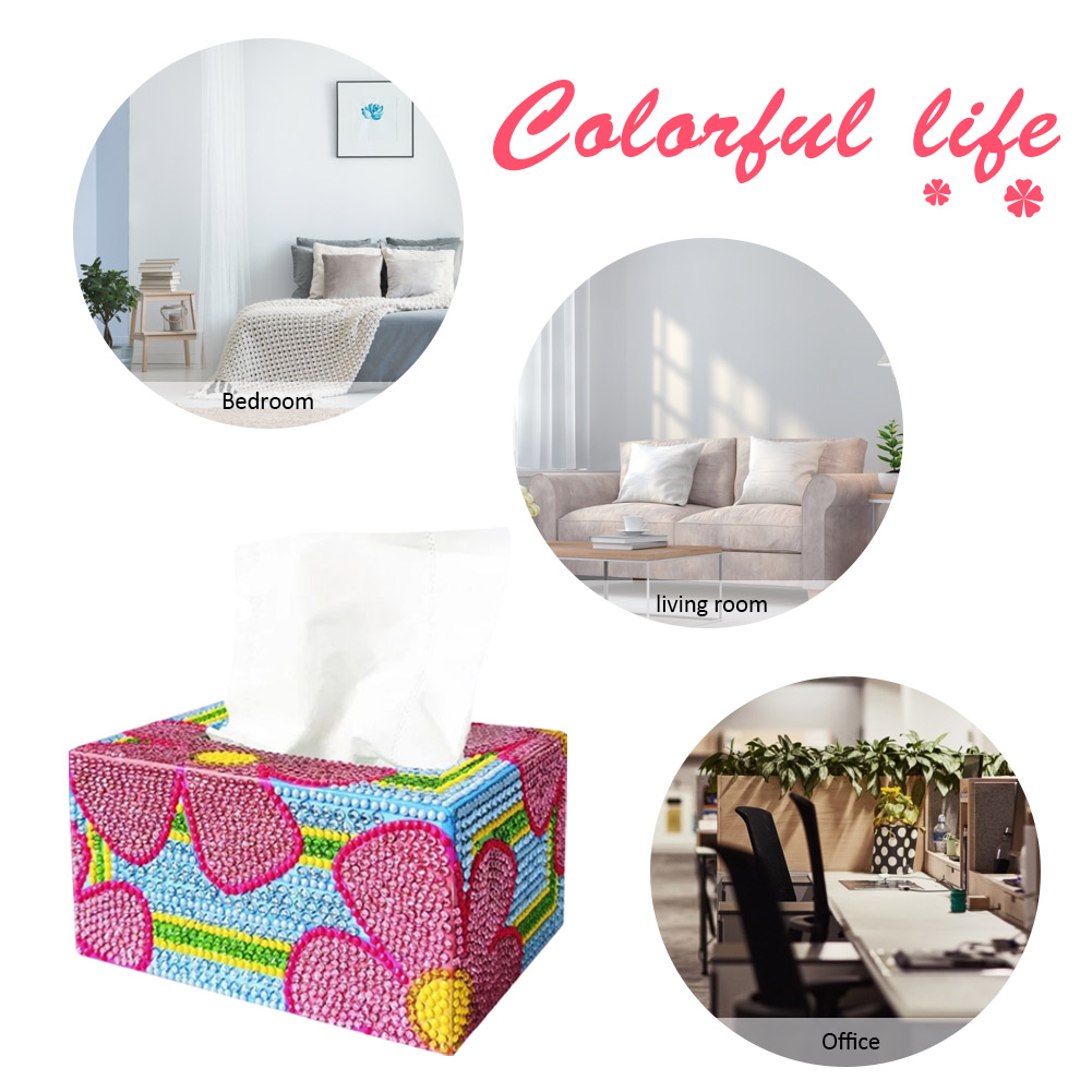 5D DIY Diamond Painting Square Tissue Box Rhinestone Drawing Handmade Art Tissue Dispenser Case Mosaic Kit Craft for Home Office Car Decor