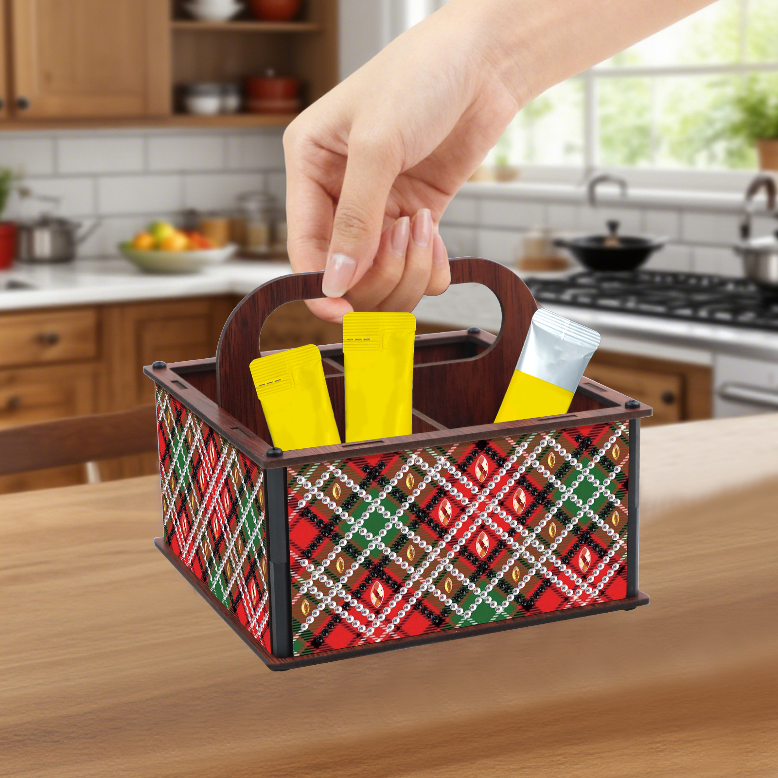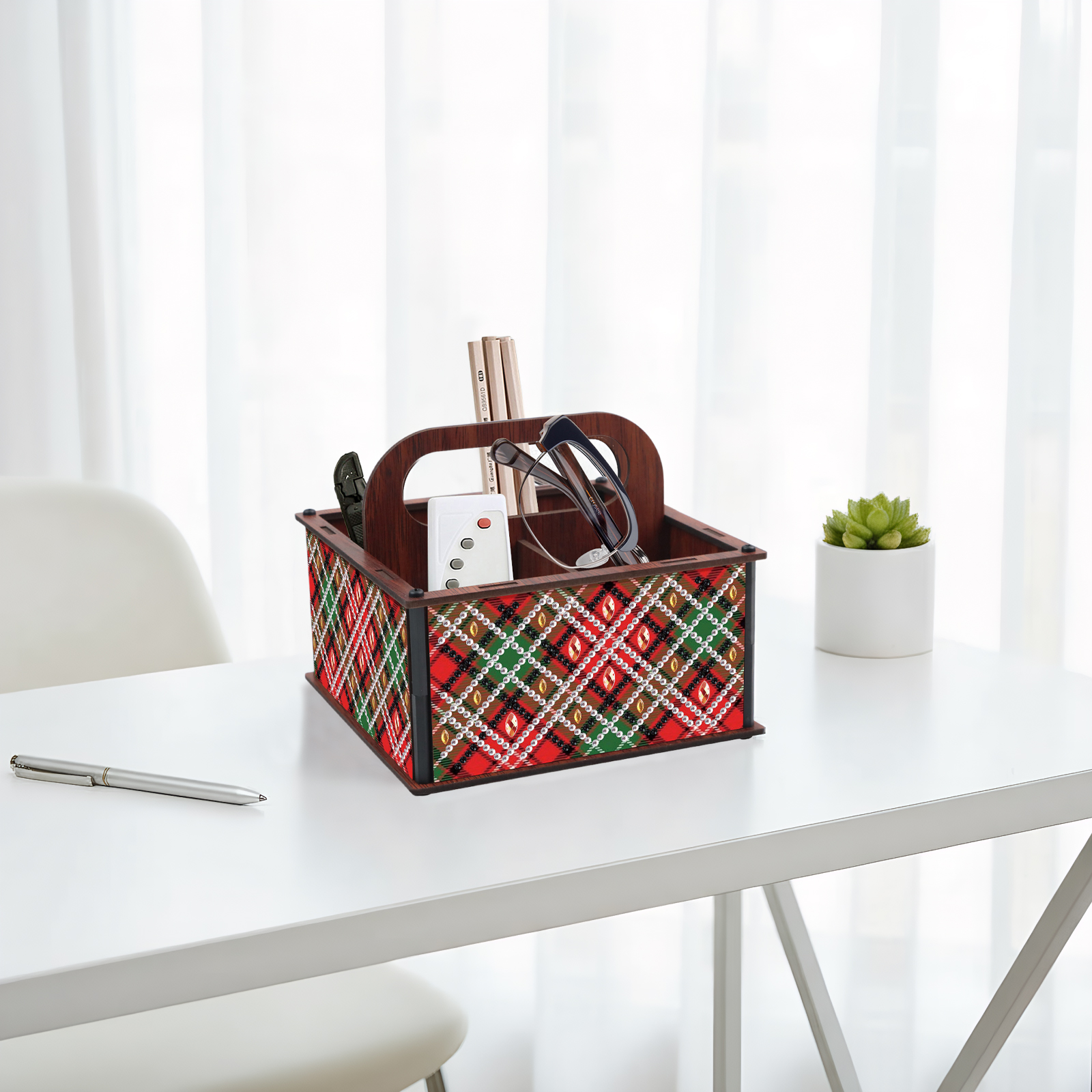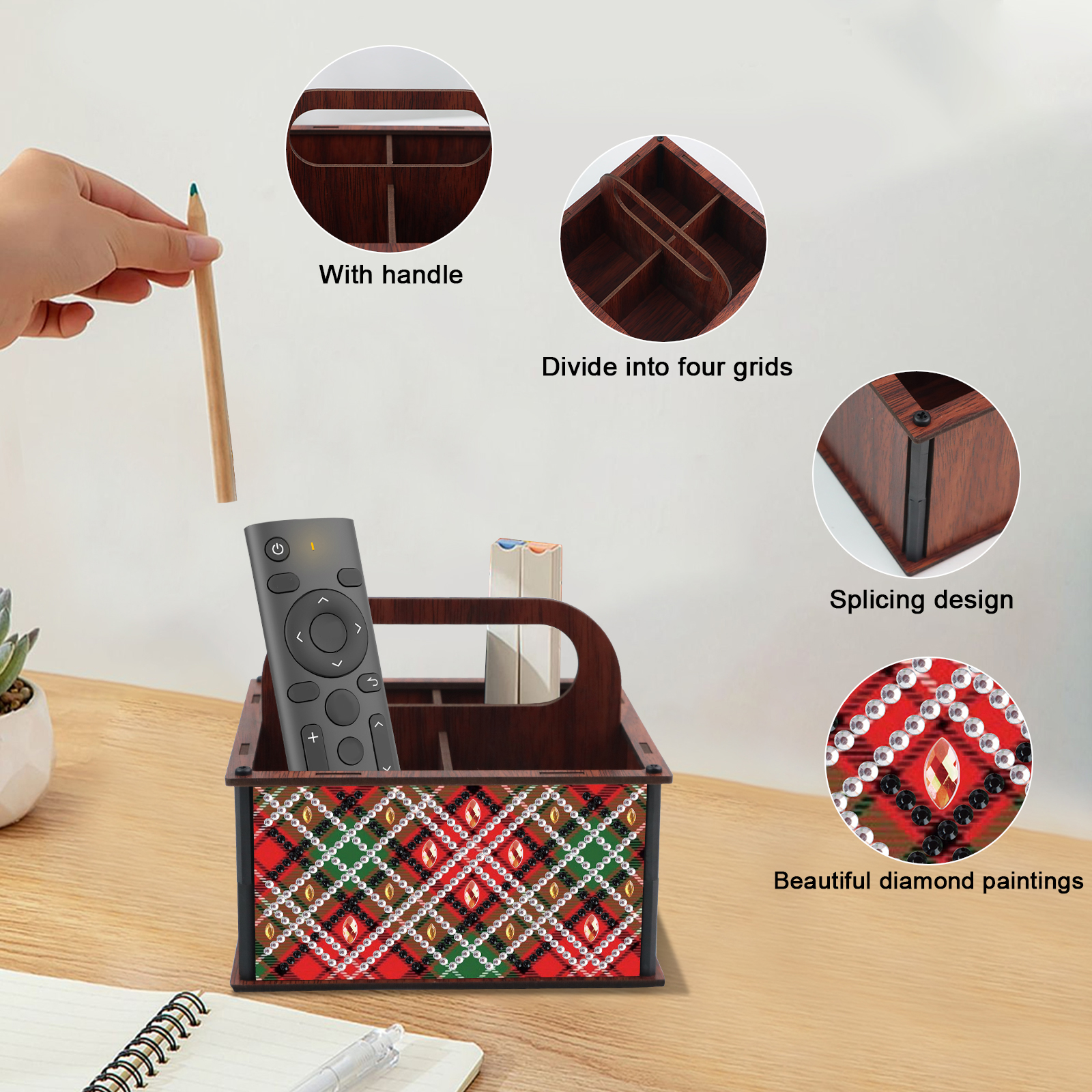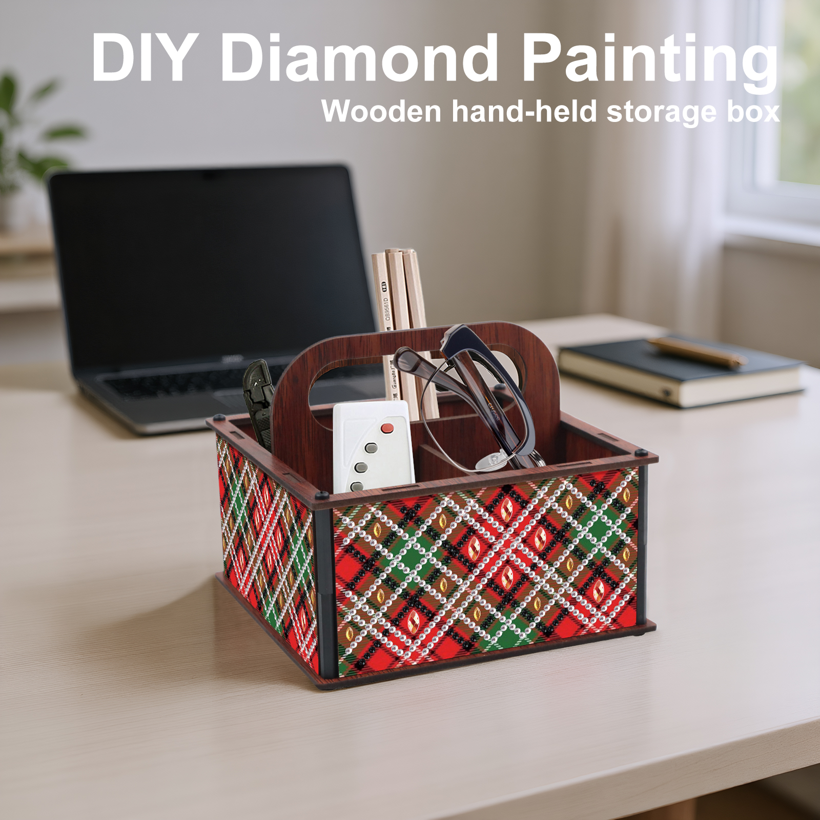 DIY Pattern Wooden Diamond Painting Handheld Storage Box Kit Tabletop Art Decor