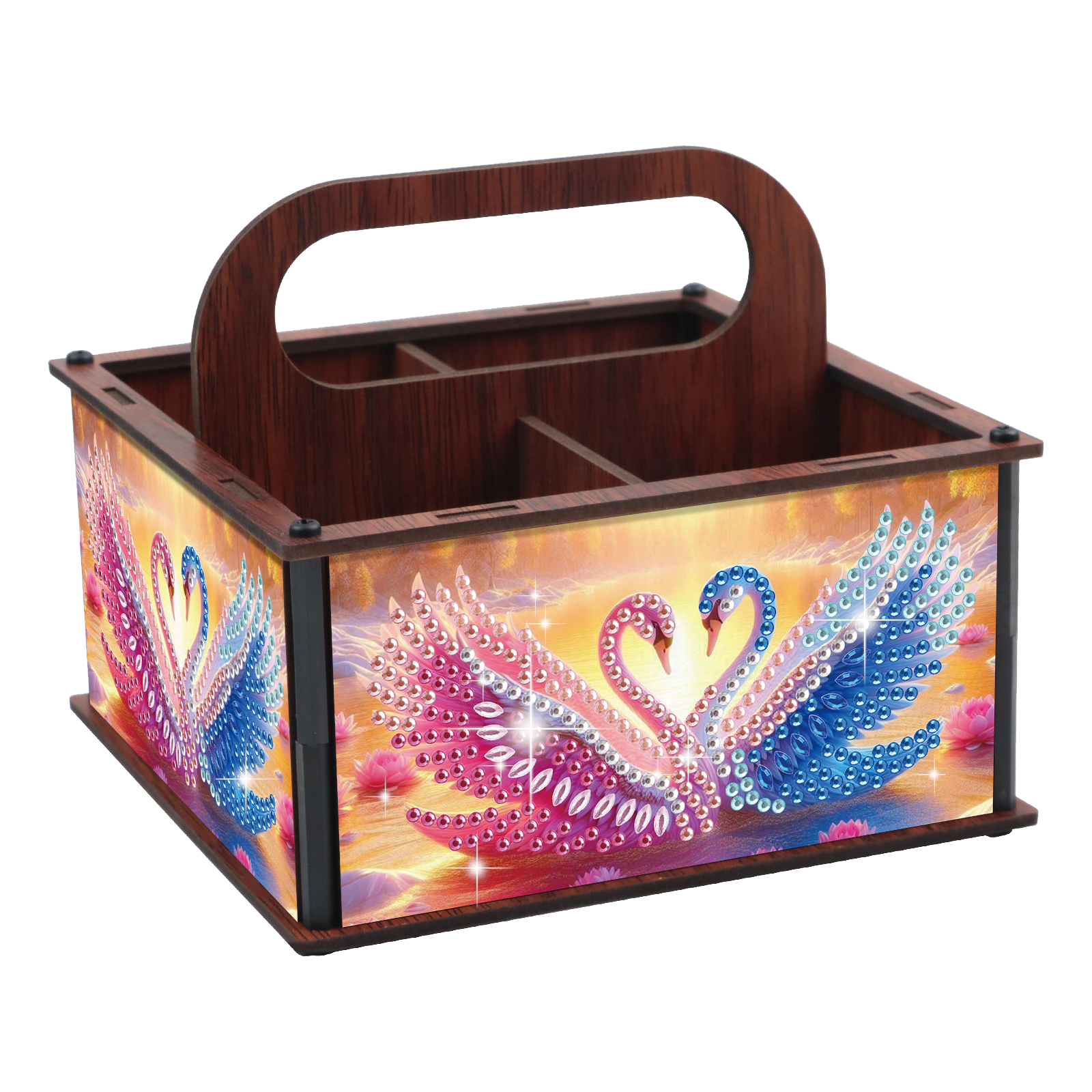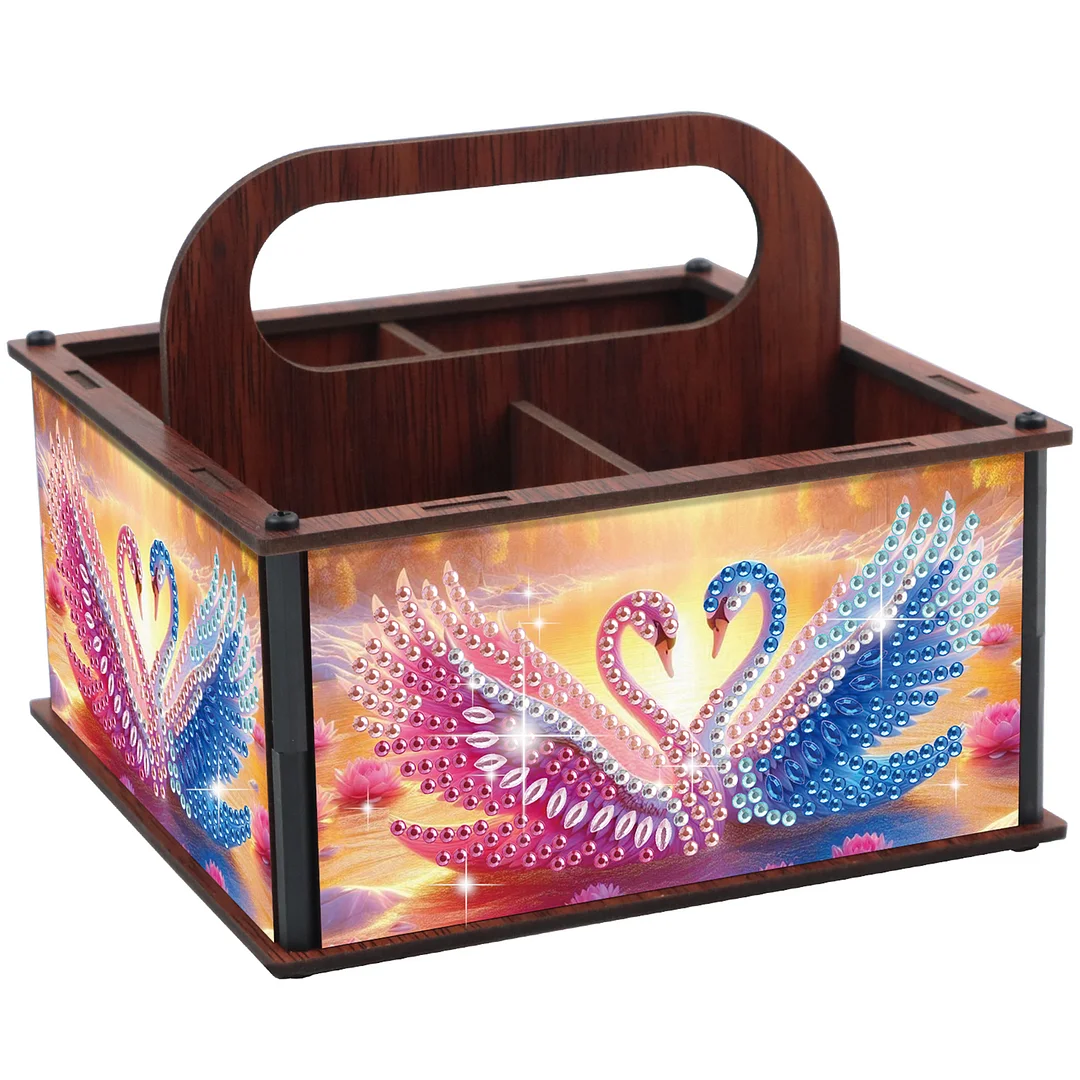 DIY Pink Blue Swan Wooden Diamond Painting Handheld Storage Box Kit Home Decor