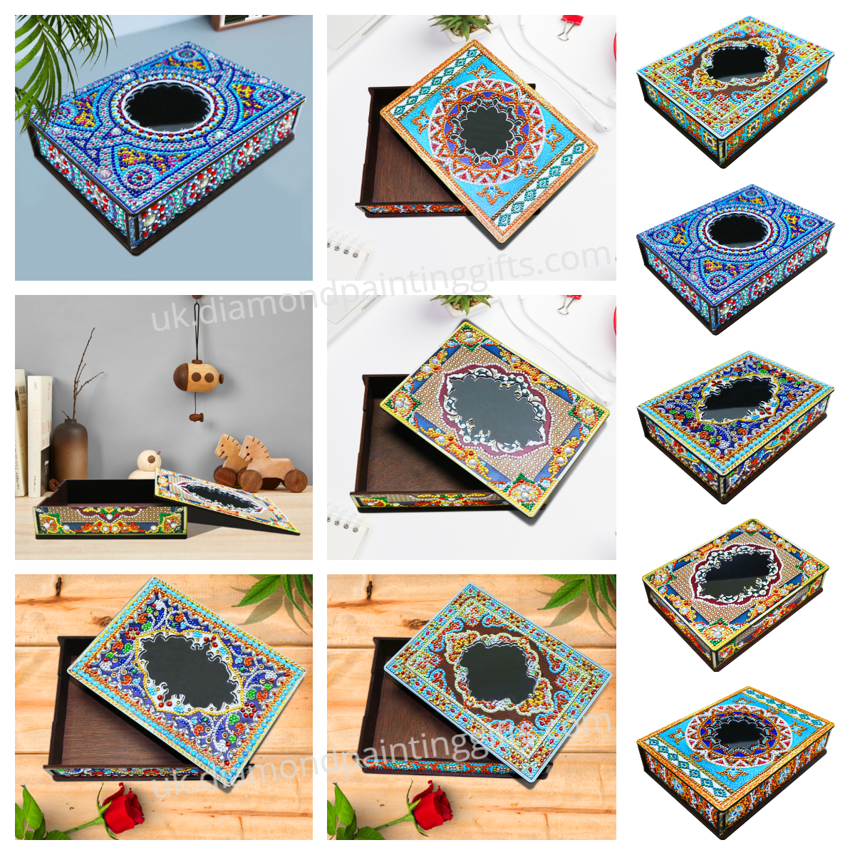 - This jewelry box will not conflict with your home or office decoration, the display effect is exquisite, the small acrylic mirror inlaid in the middle of the box and the diamond mandala pattern complement each other for a classic beauty