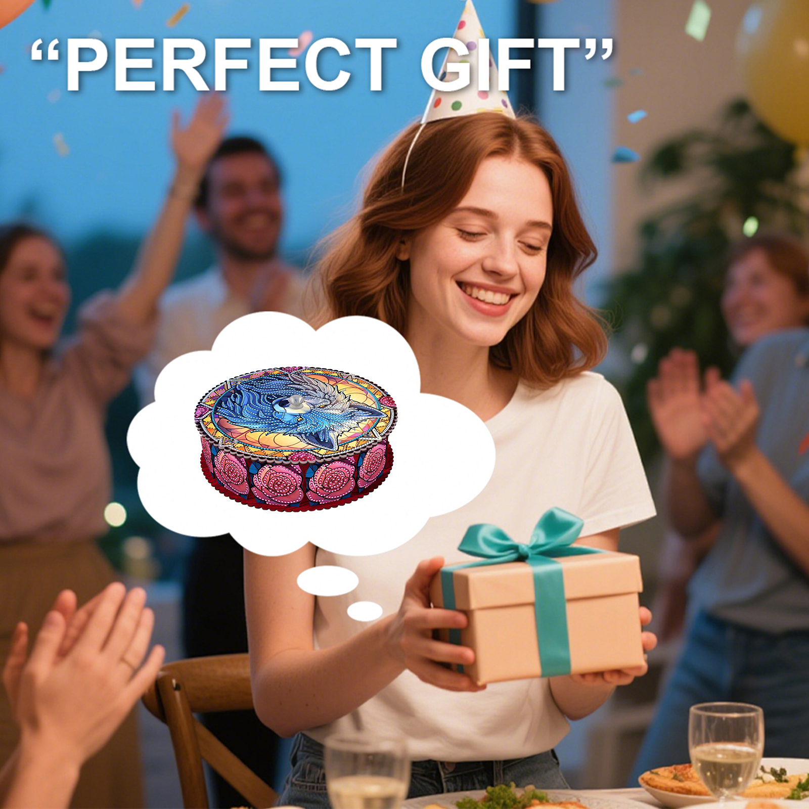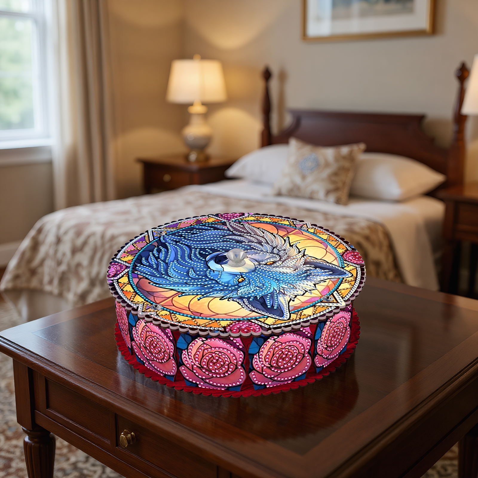 Wolf 5D DIY Diamond Art Painting Snack Box with Lid Home Wood Storage Organizer