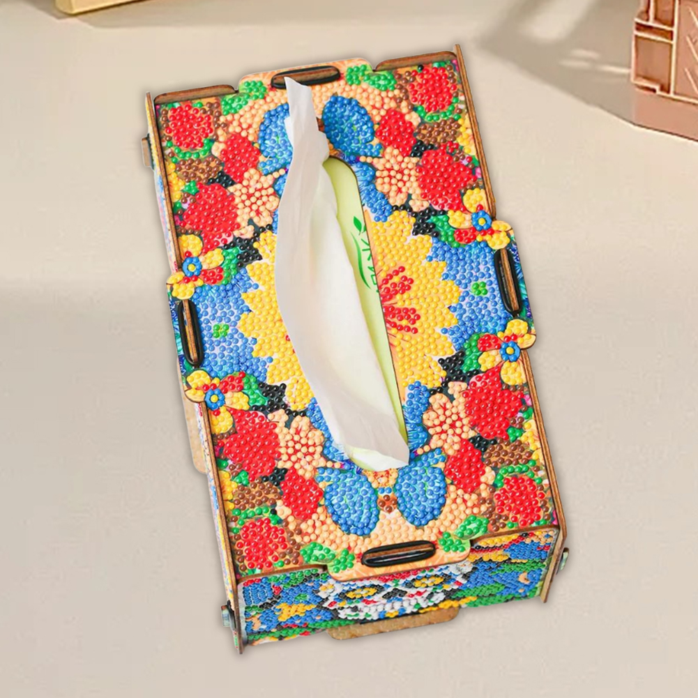 Wooden Colorful Pattern 5D DIY Diamond Handmade Tissue Holder Rhinestones Decorative Tissue Box for Living Room