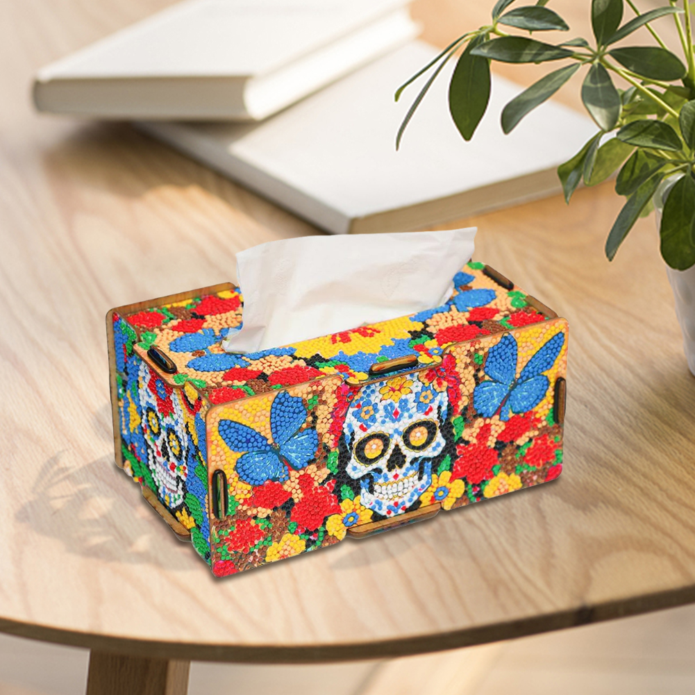 Wooden Skull 5D DIY Diamond Painting Tissue Holder Home Diamond Art Tissue Box