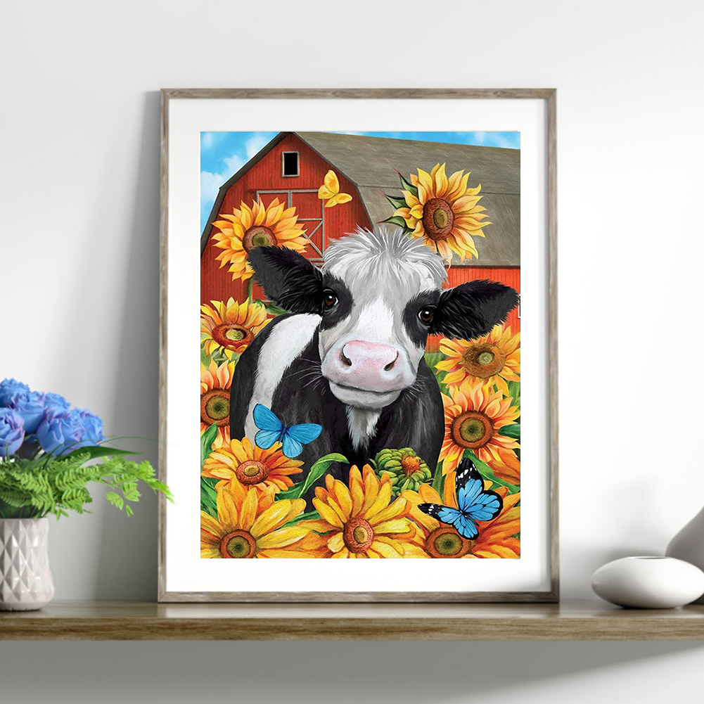 Full Round Diamond Painting 30*40cm - Sunflower Cow