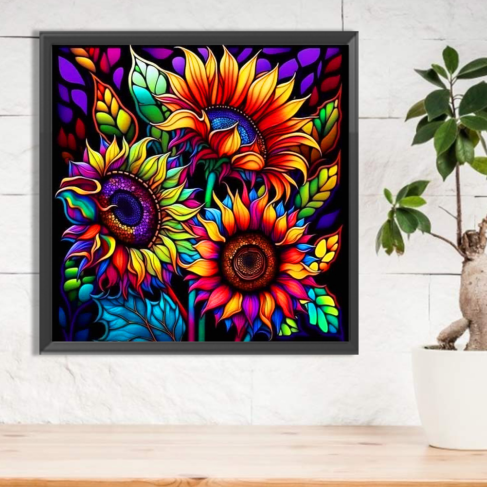 Diamond Painting - Full Round Drill - Stained Glass Sunflower(30*30cm)