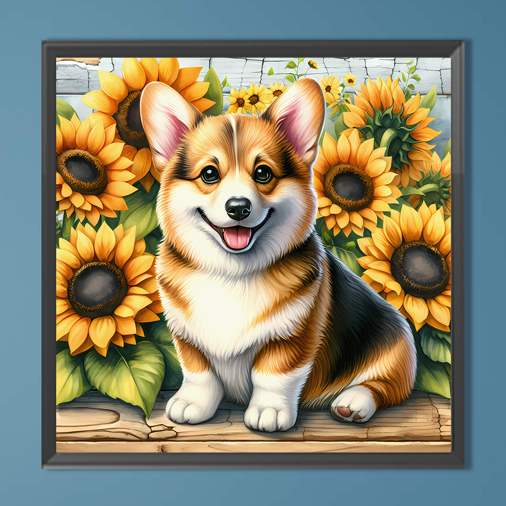 Diamond Painting - Full Round Drill - Sunflower Corgi(Canvas|40*40cm)