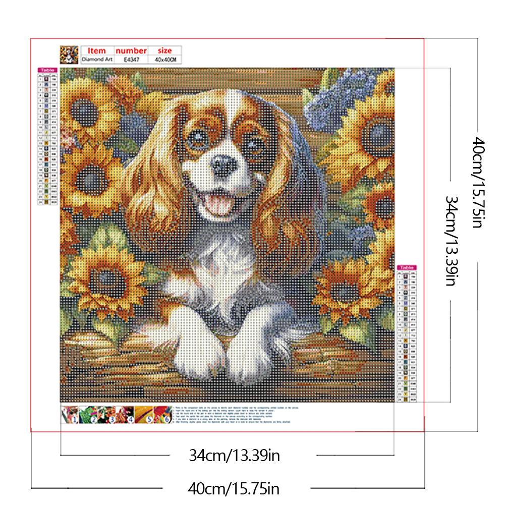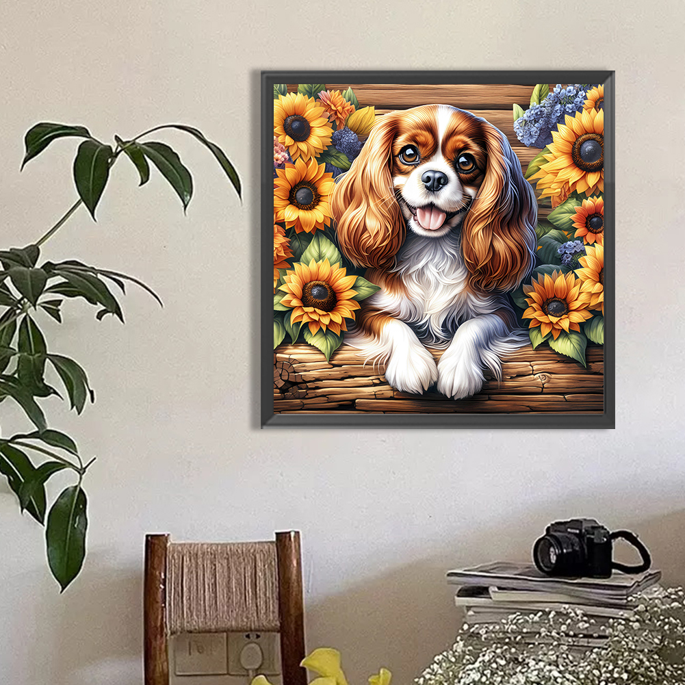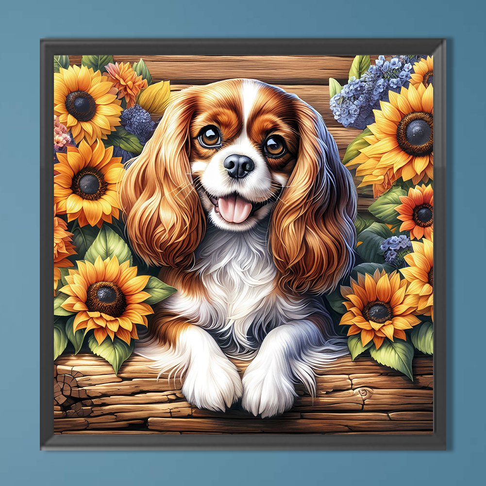 Diamond Painting - Full Round Drill - Sunflower King Charles Spaniel(Canvas|40*40cm)