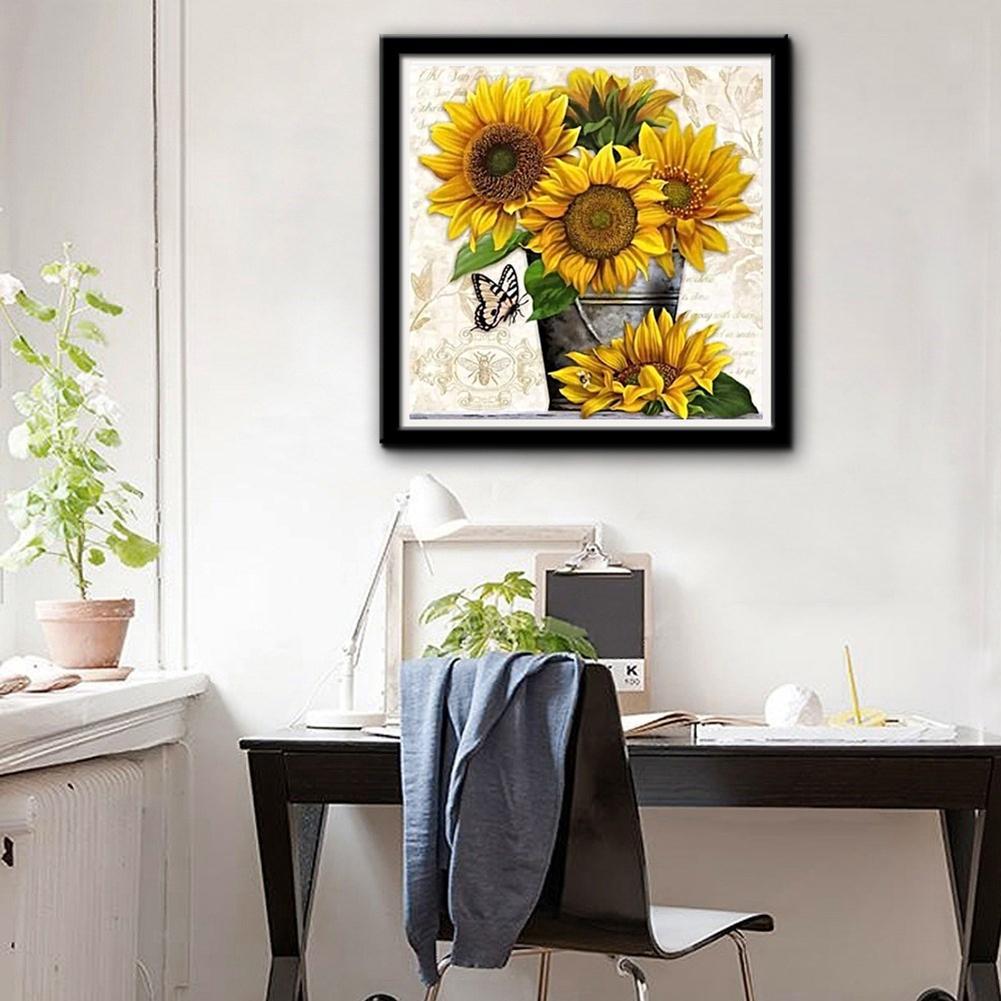 Sunflower 5D DIY Full Drill Round Diamond Painting Embroidery Kits Needlework Set Cross Stitch Mosaic Art Craft Home Decor Gift