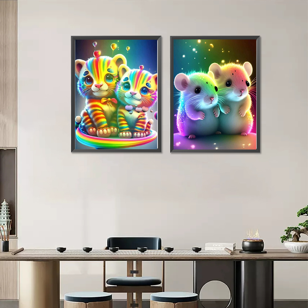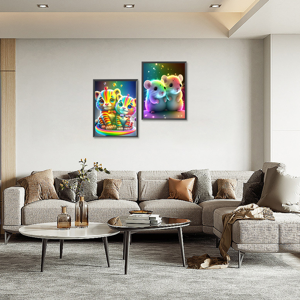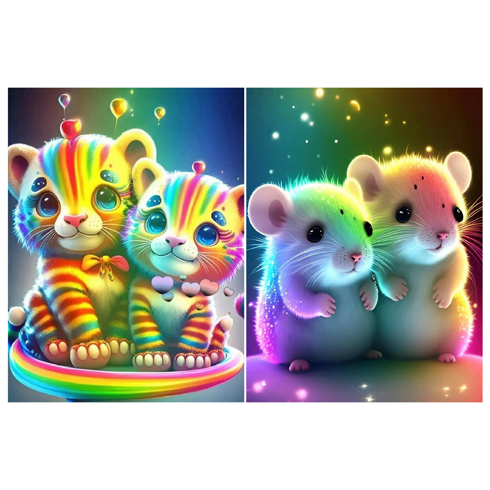 2pcs/Set Diamond Painting - Full Round Drill - Tiger Mouse(Canvas|30*40cm)