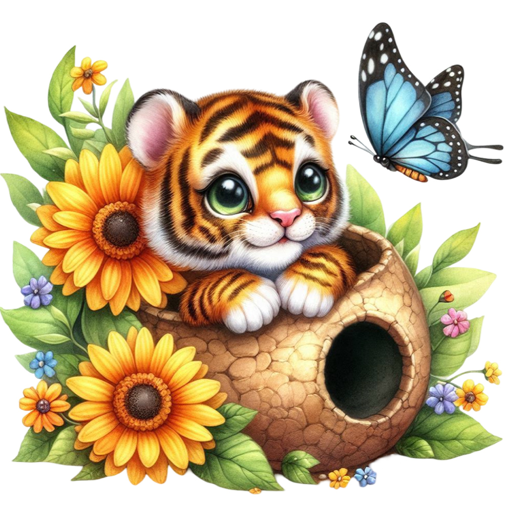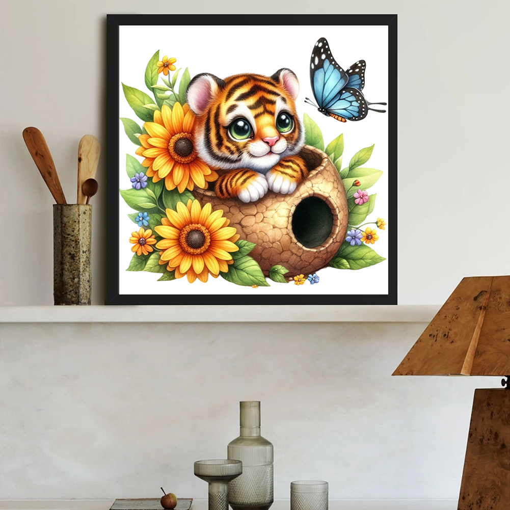 Diamond Painting - Full Round Drill - Flower Tiger(Canvas|30*30cm)