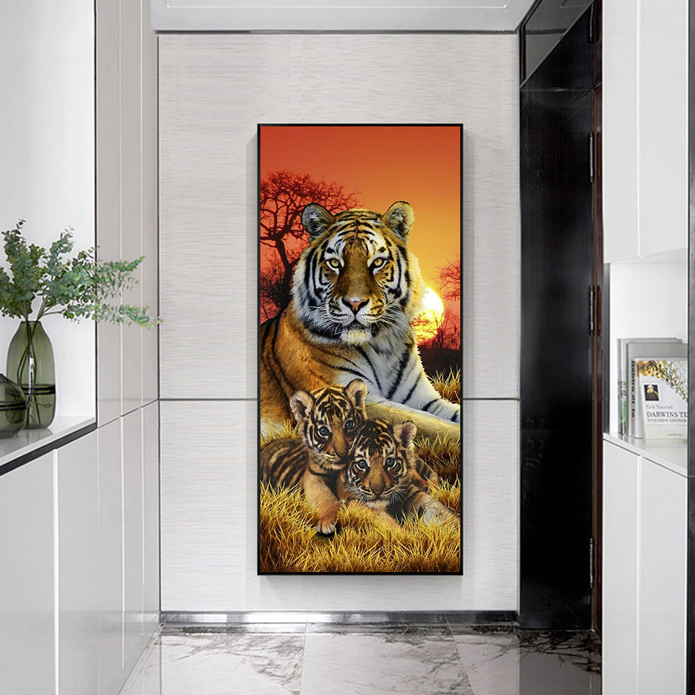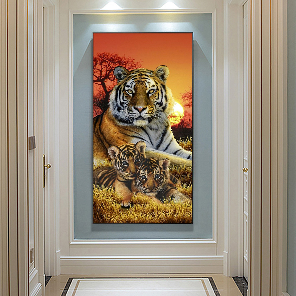 50x110cm 5D DIY Full Drill Round Diamond Painting Animal Tiger Diamond Embroidery Mosaic Kit Home Decor Bead Art Wall Gift