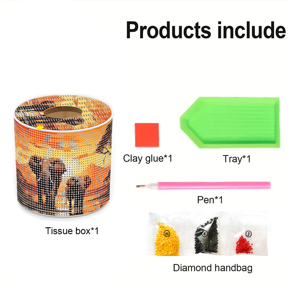 African Elephant DIY Diamond Painting Handmade Tissue Holder Crystal Tissue Box