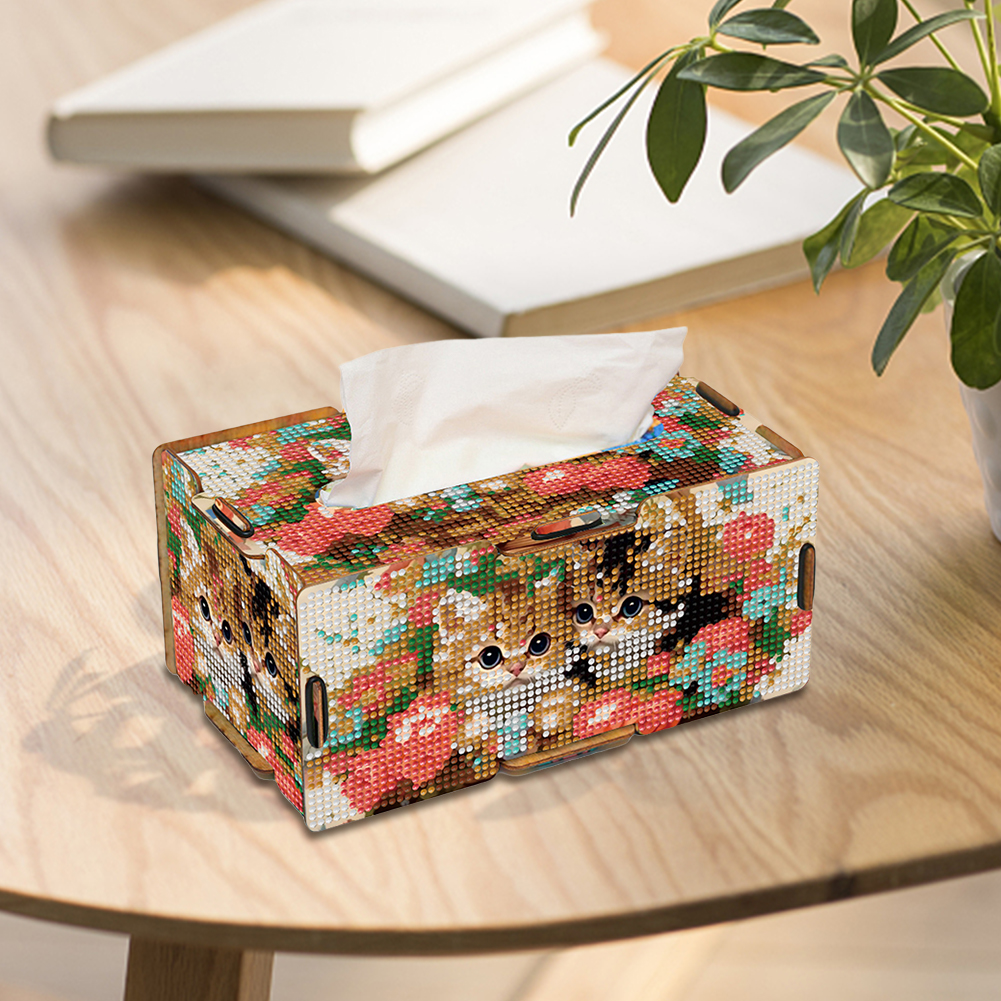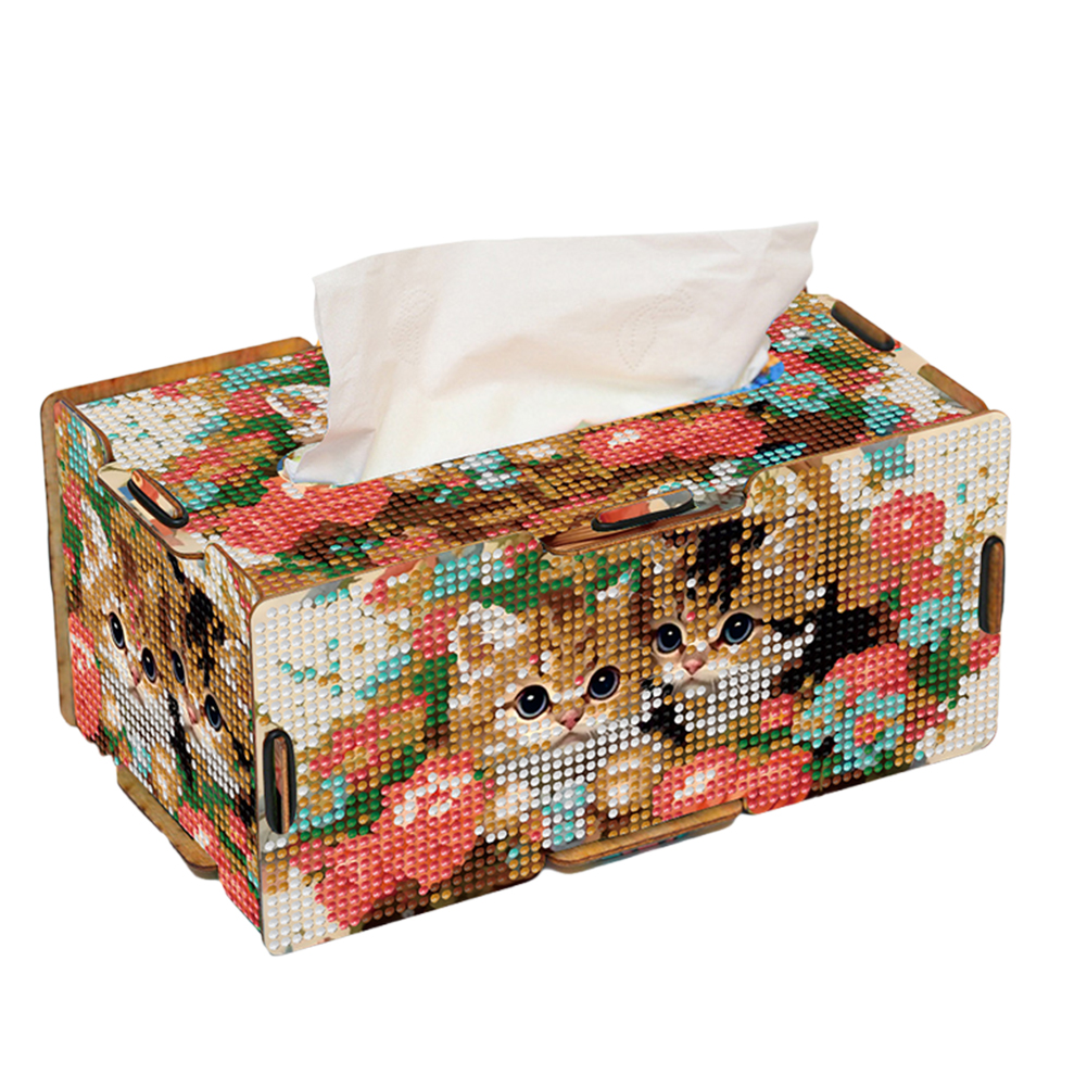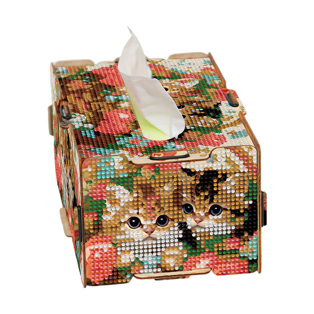 Diamond Painting Tissue Box Kits Rhinestone Craft Kit (Kitten Flower Basket)