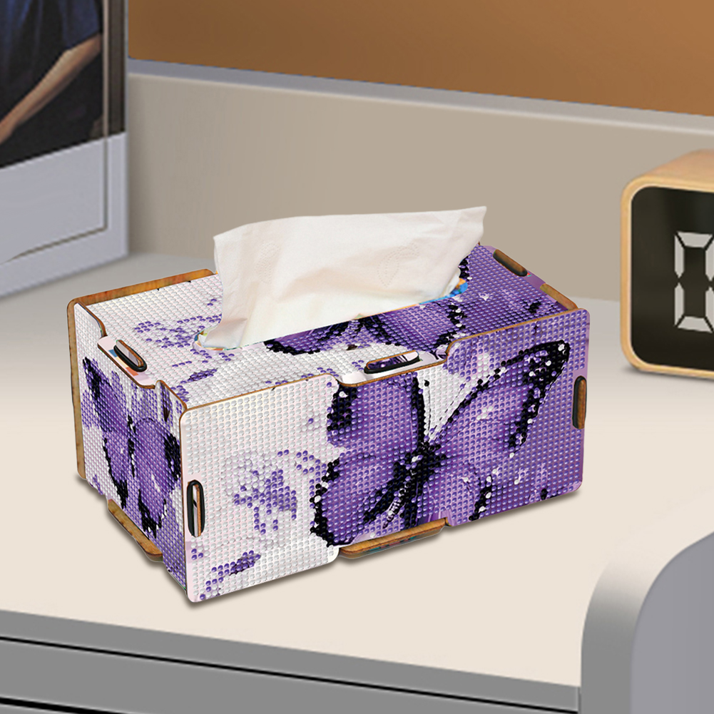 Diamond Painting Tissue Box Kits Rhinestone Craft Kit (Purple Butterfly)