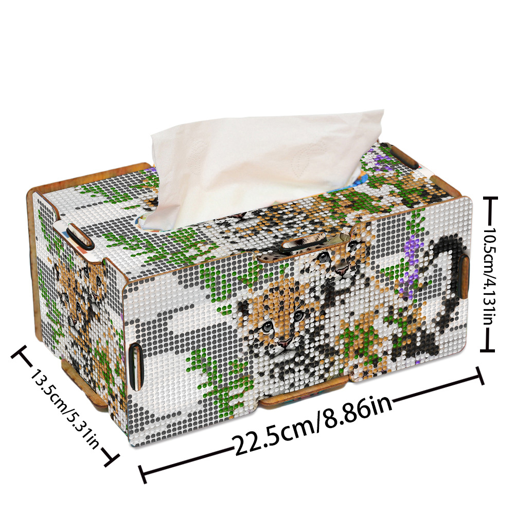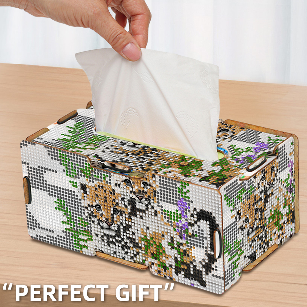 Leopard 5D DIY Diamond Painting Handmade Tissue Holder Wooden Tissue Box Craft