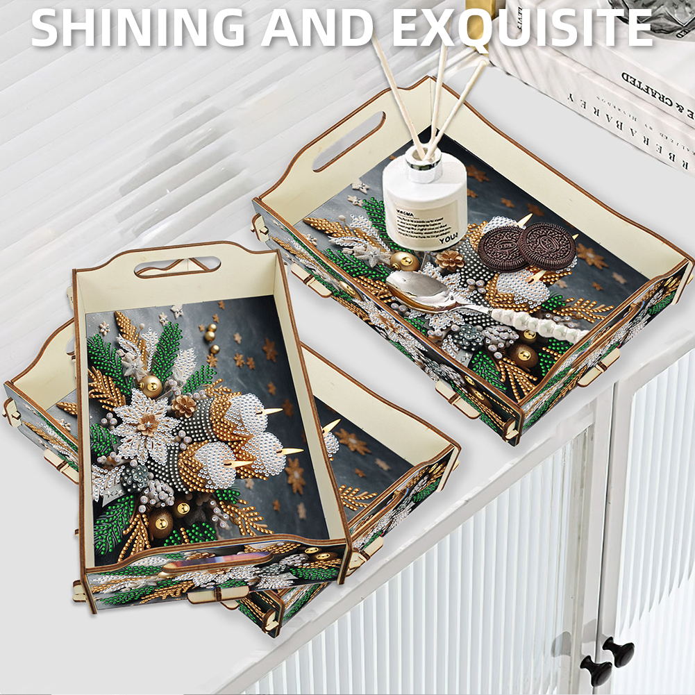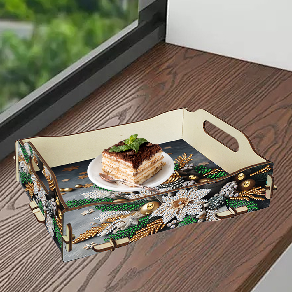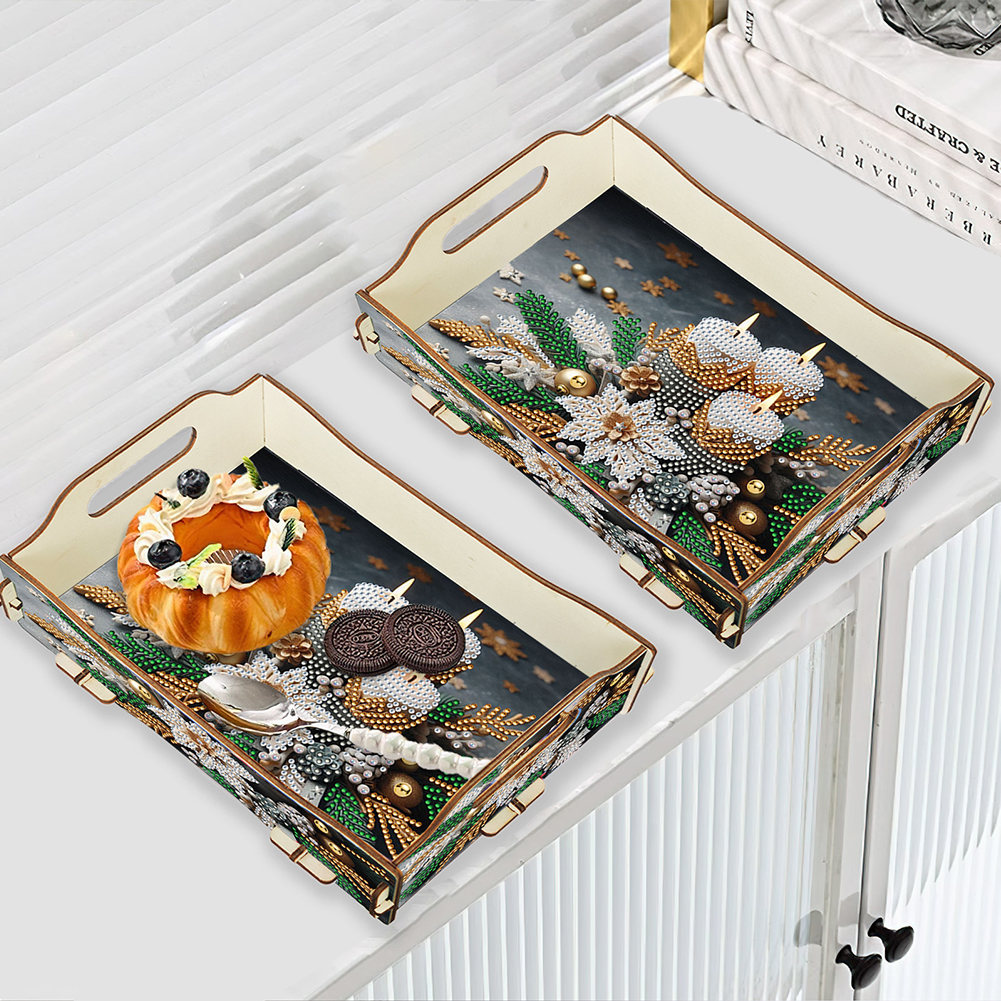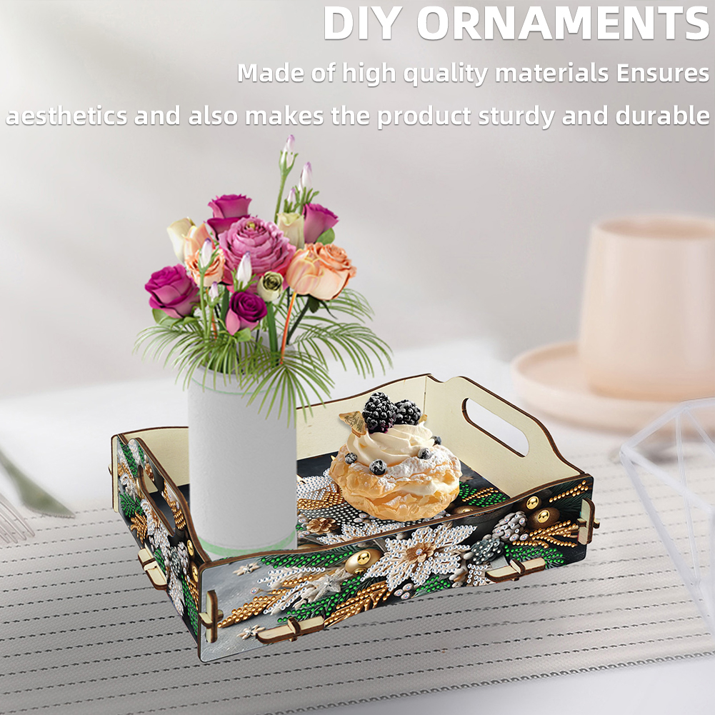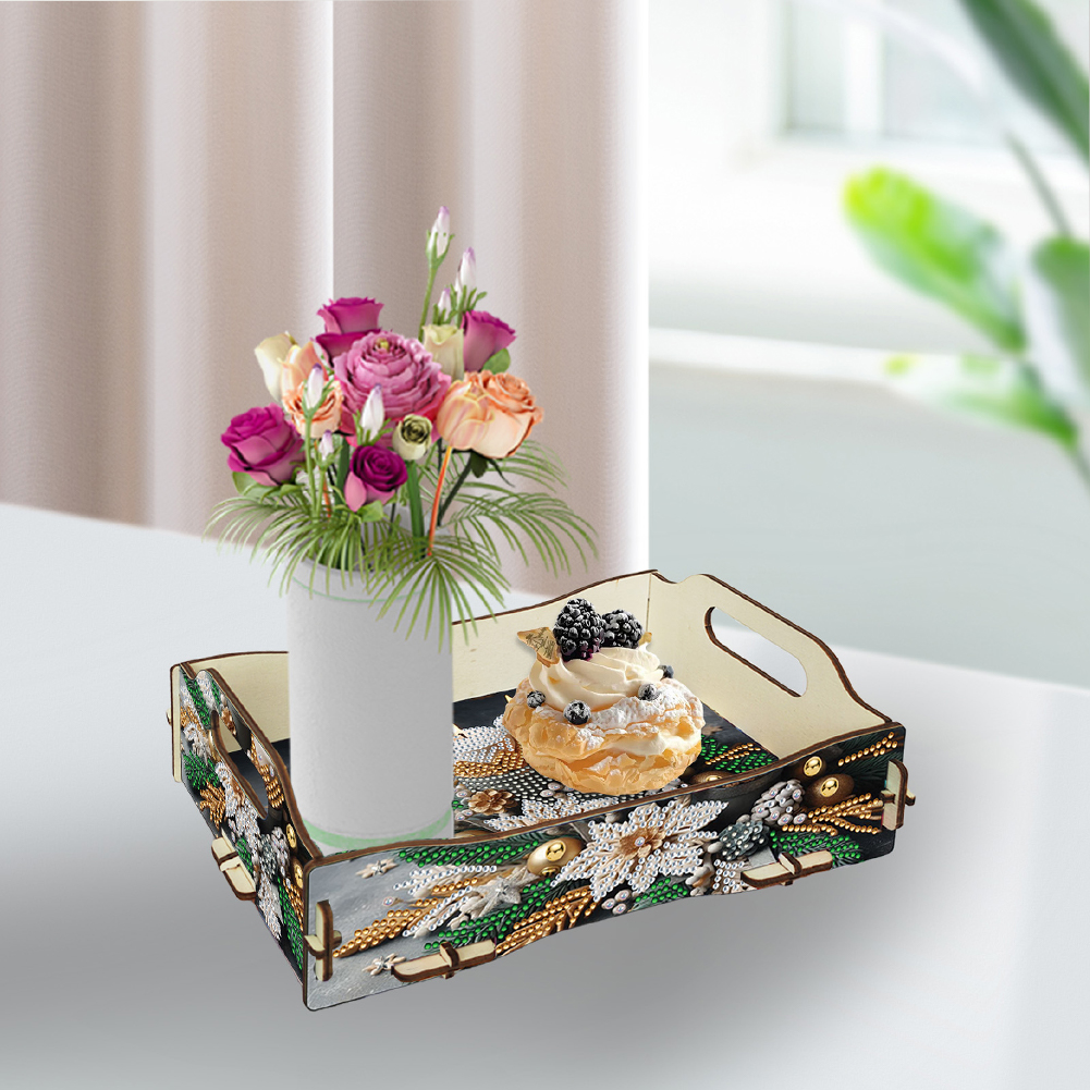 5D DIY Candle Diamond Painting Wooden Serving Tray with Handle for Coffee Table