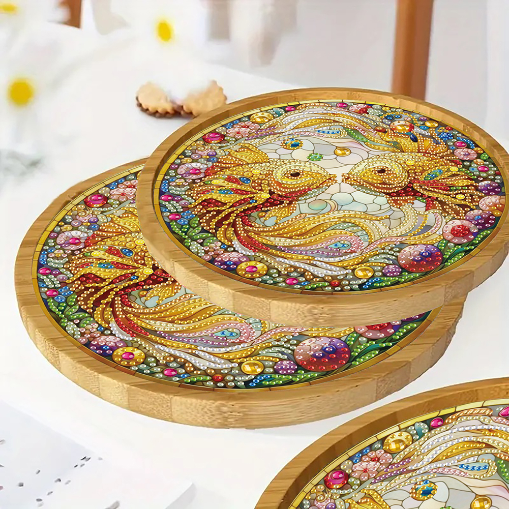 DIY Diamond Painting Kit Round Wooden Tray Diamond Painting Tray for Home (Fish)