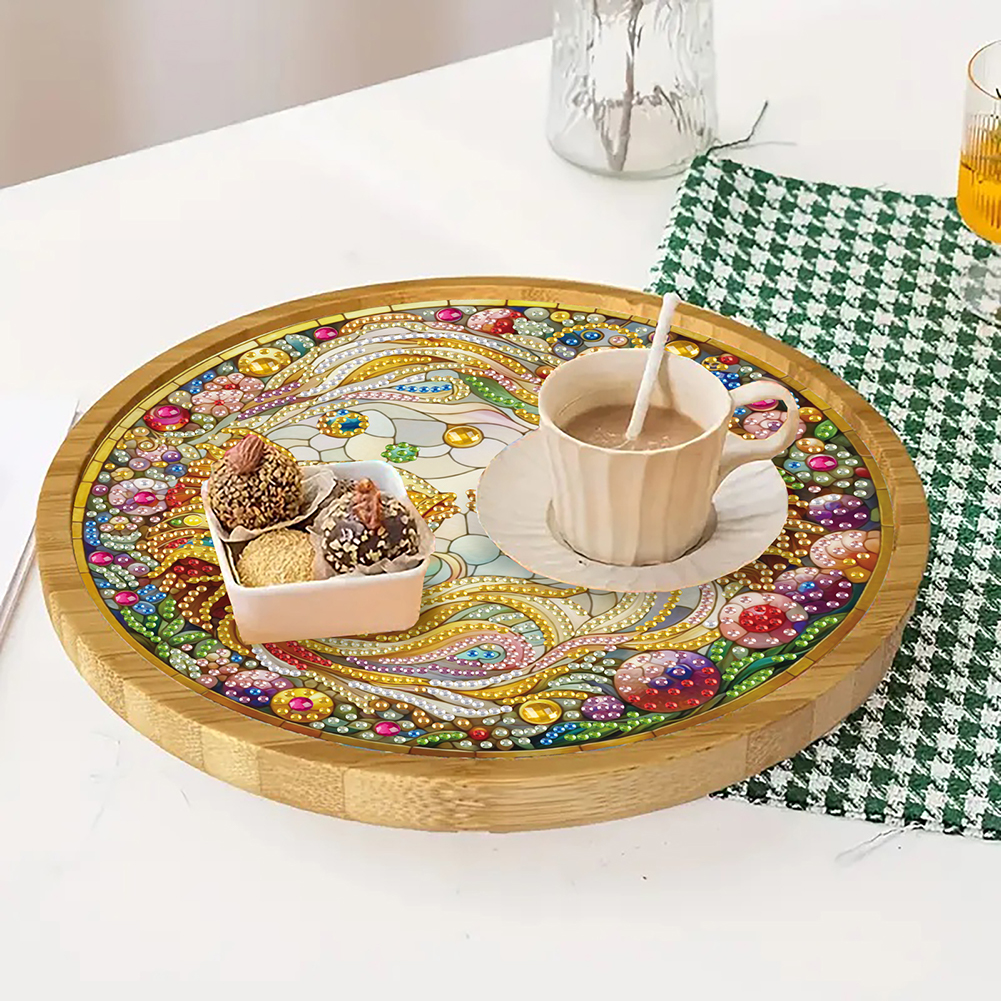 DIY Diamond Painting Kit Round Wooden Tray Diamond Painting Round Wood Tray for Coffee Living Room Home Organizer