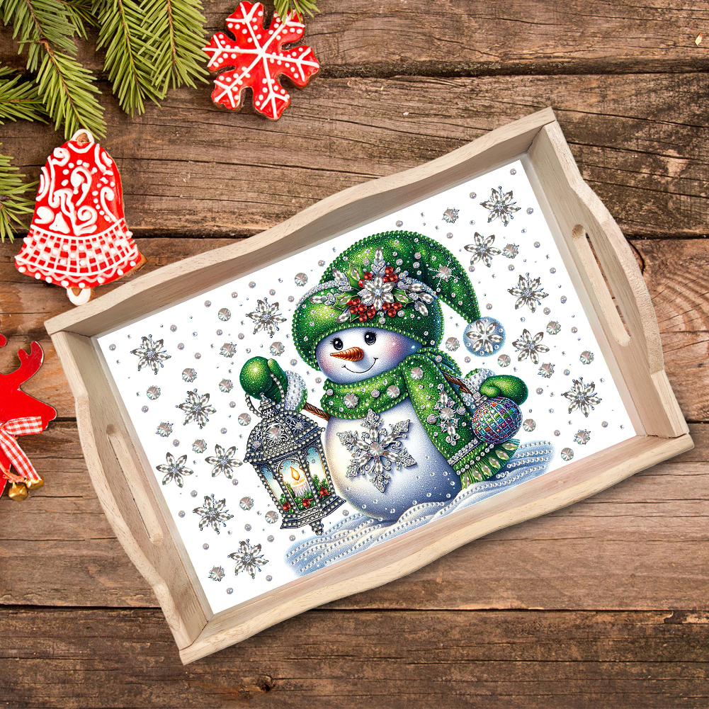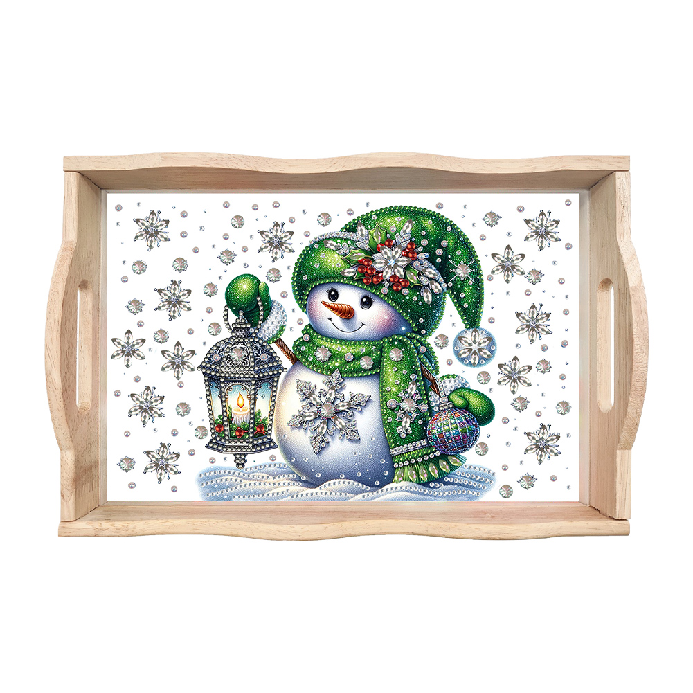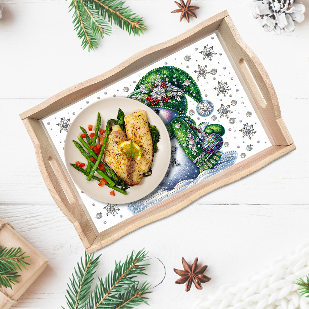 DIY Green Elk Christmas Diamond Painting Wooden Serving Tray Home Decoration