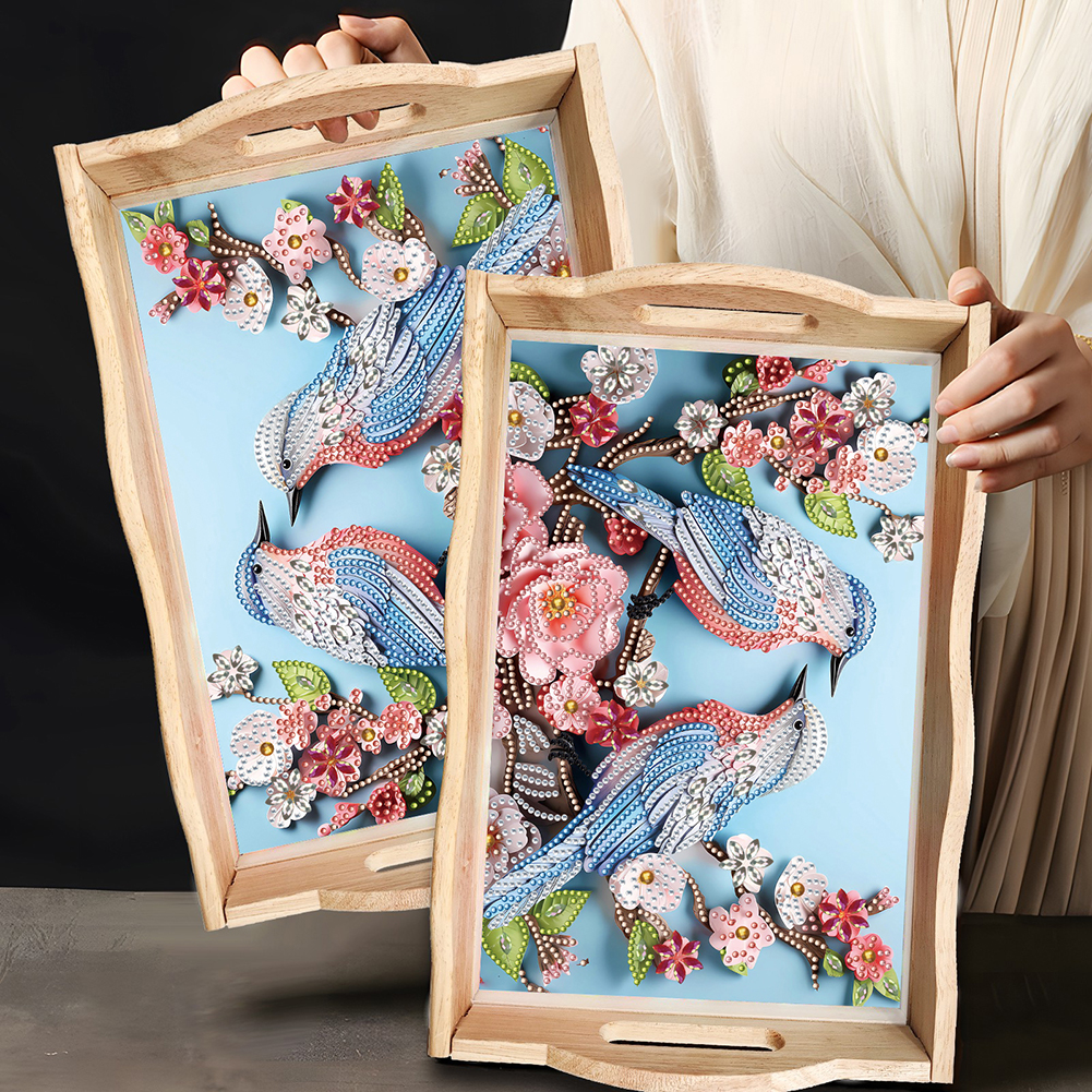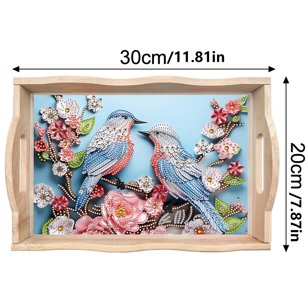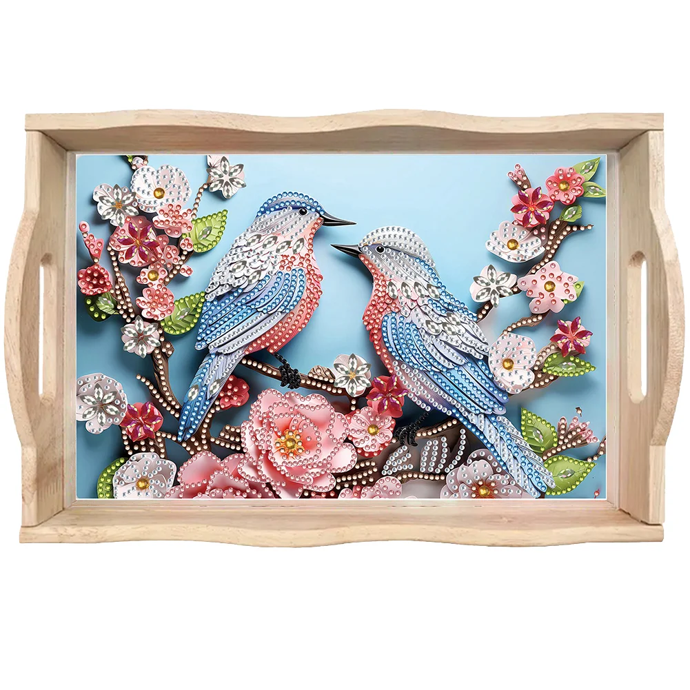 Wooden Flowers Birds 5D DIY Diamond Painting Serving Tray for Home Decor