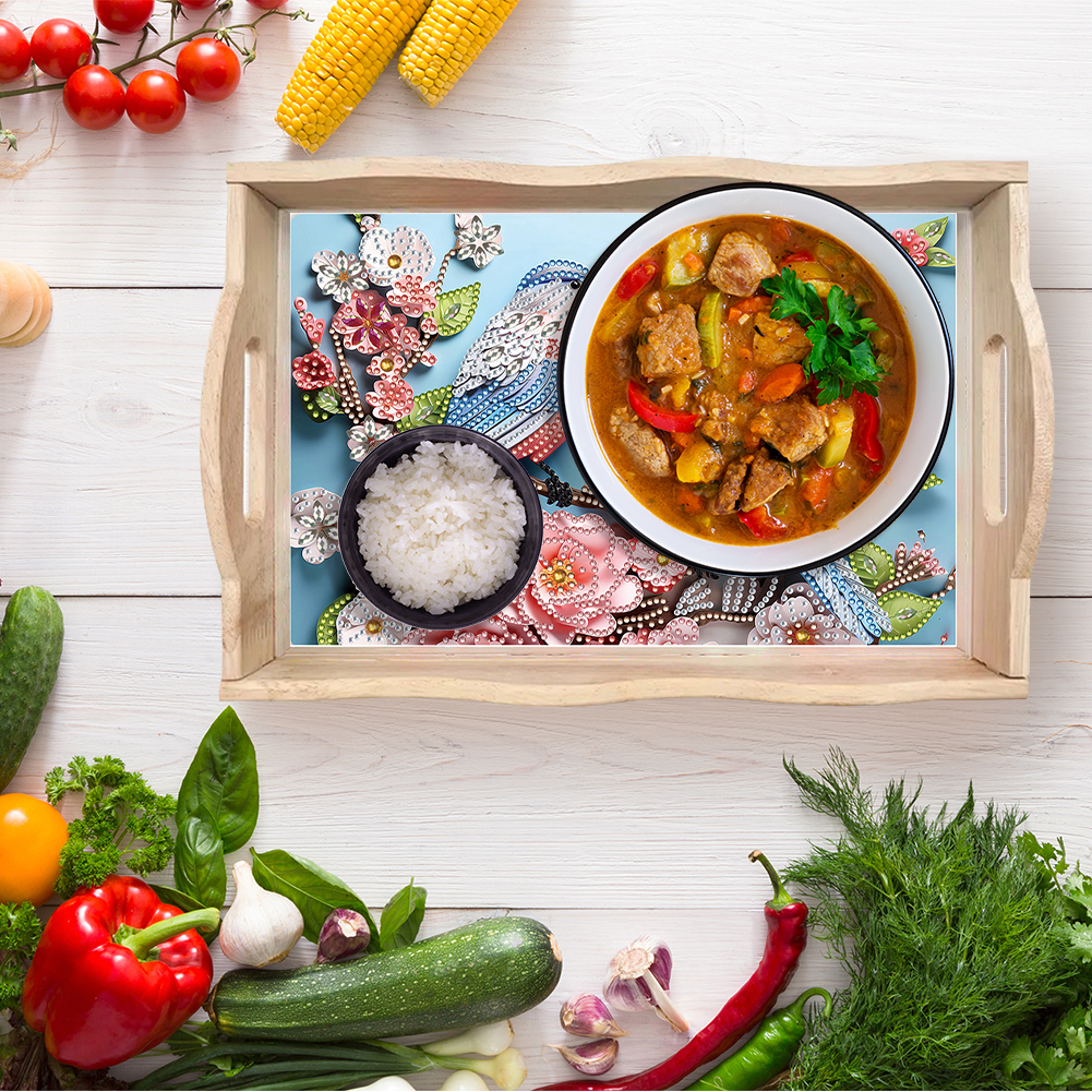 1. Multifunctional Elegance: From presenting delectable meals on your dining table to serving lazy Sunday breakfasts in bed, this 5D DIY diamond painting serving tray offers versatile usage for any occasion, ensuring both functionality and sophistication in your living space.