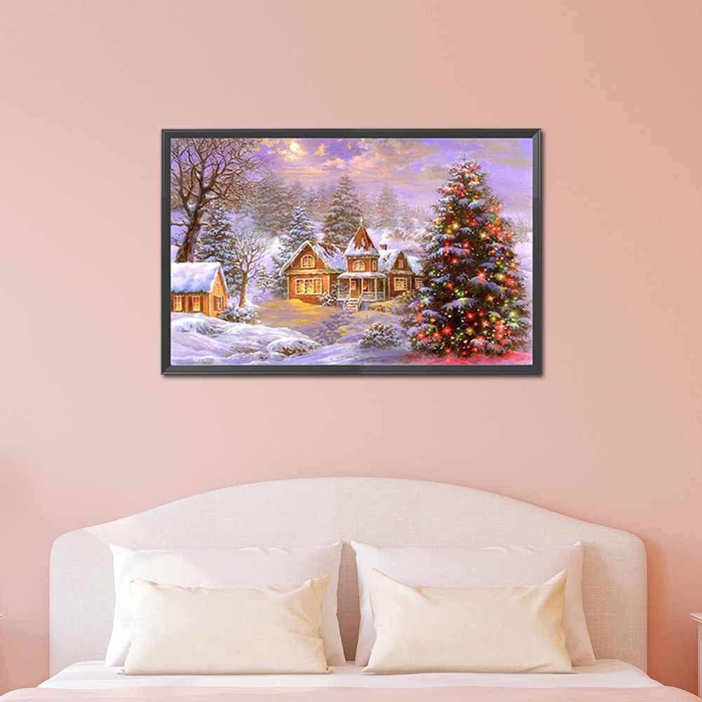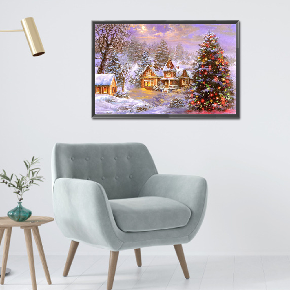 DIY 5D Mosaic Full Drill Round Shape Diamond Christmas Tree Snow Town Resin Painting Kit Rhinestone Drawing Home Art Craft Bedroom Decoration