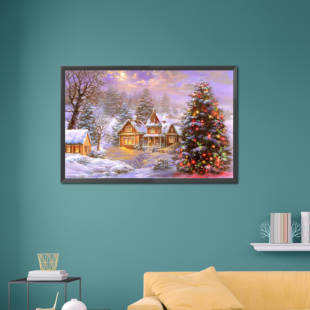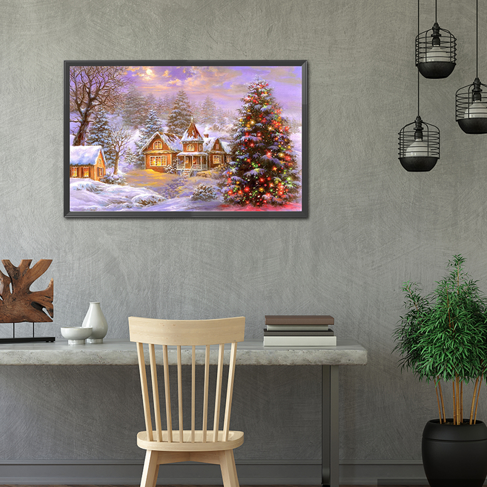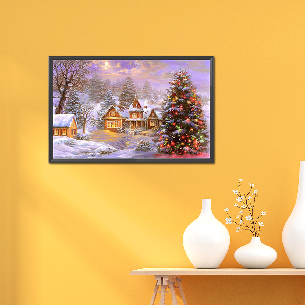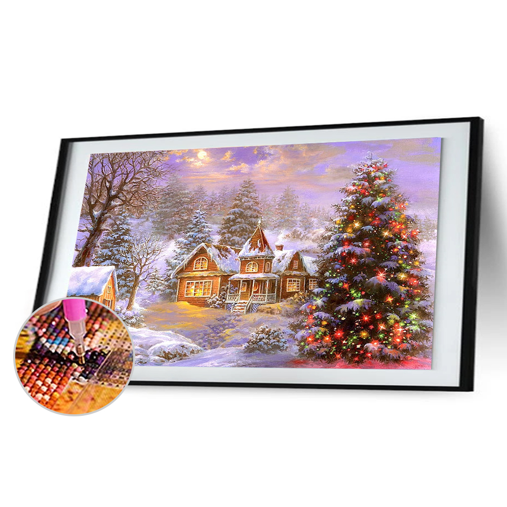 Diamond Painting - Full Round Drill - Christmas Tree Snow Town(70*45cm)
